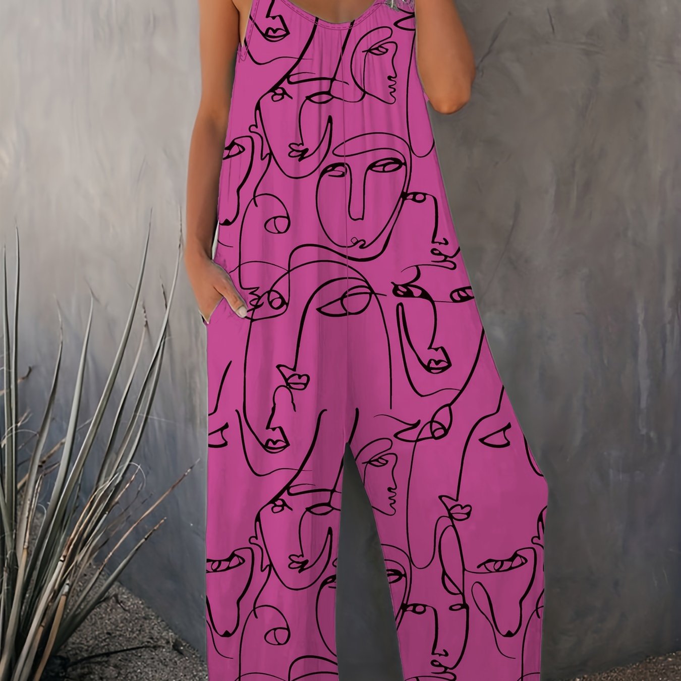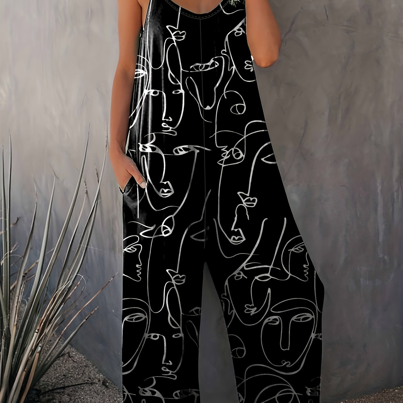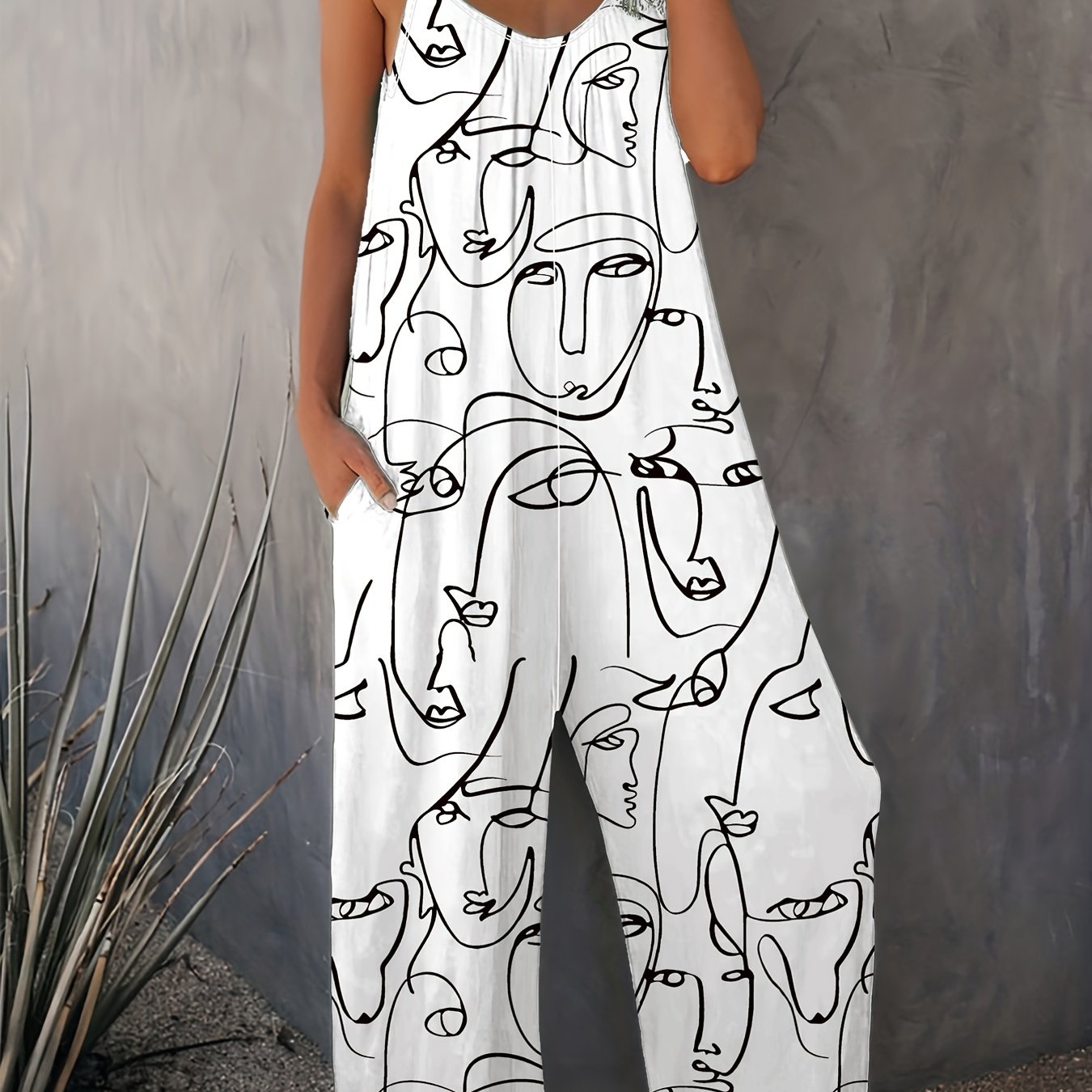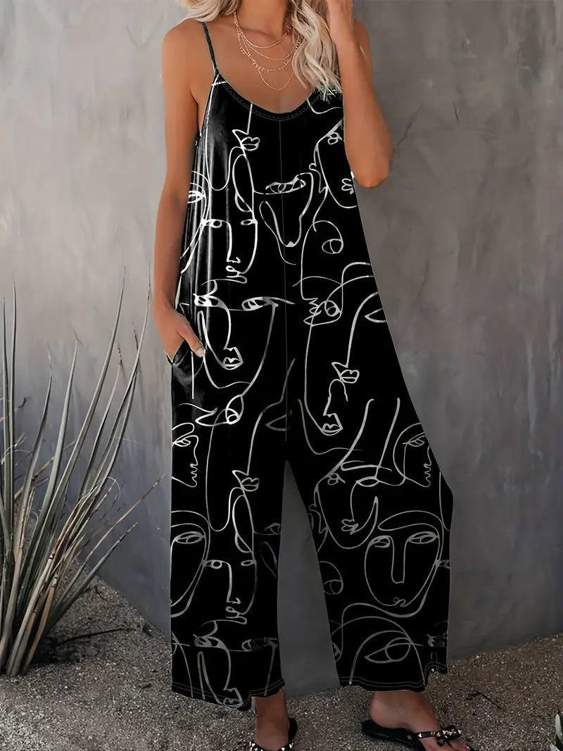 Plus Size Abstract Print Wide Leg Sleeveless Jumpsuit Casual Women's Clothing