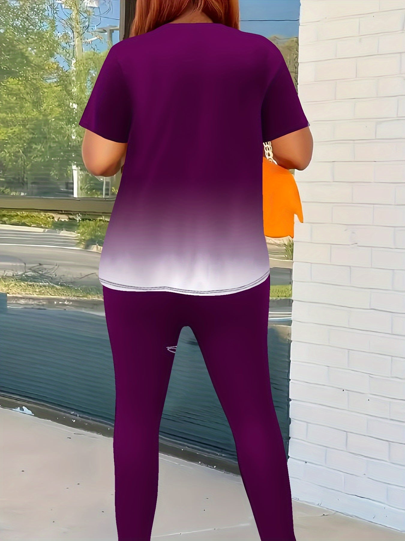 Katta o'lchamdagi Blessed print ikki qismli to'plam: Ayollar uchun crew neck qisqa yengli ko'ylak va shimlar.
