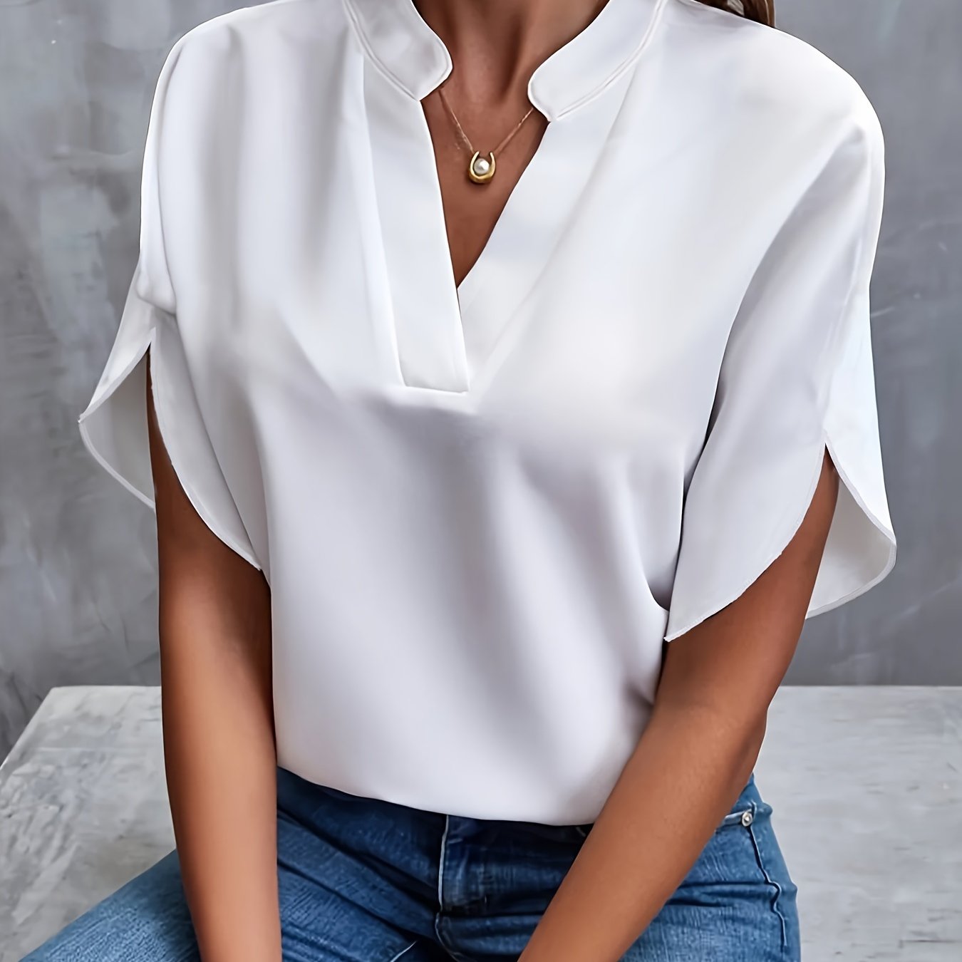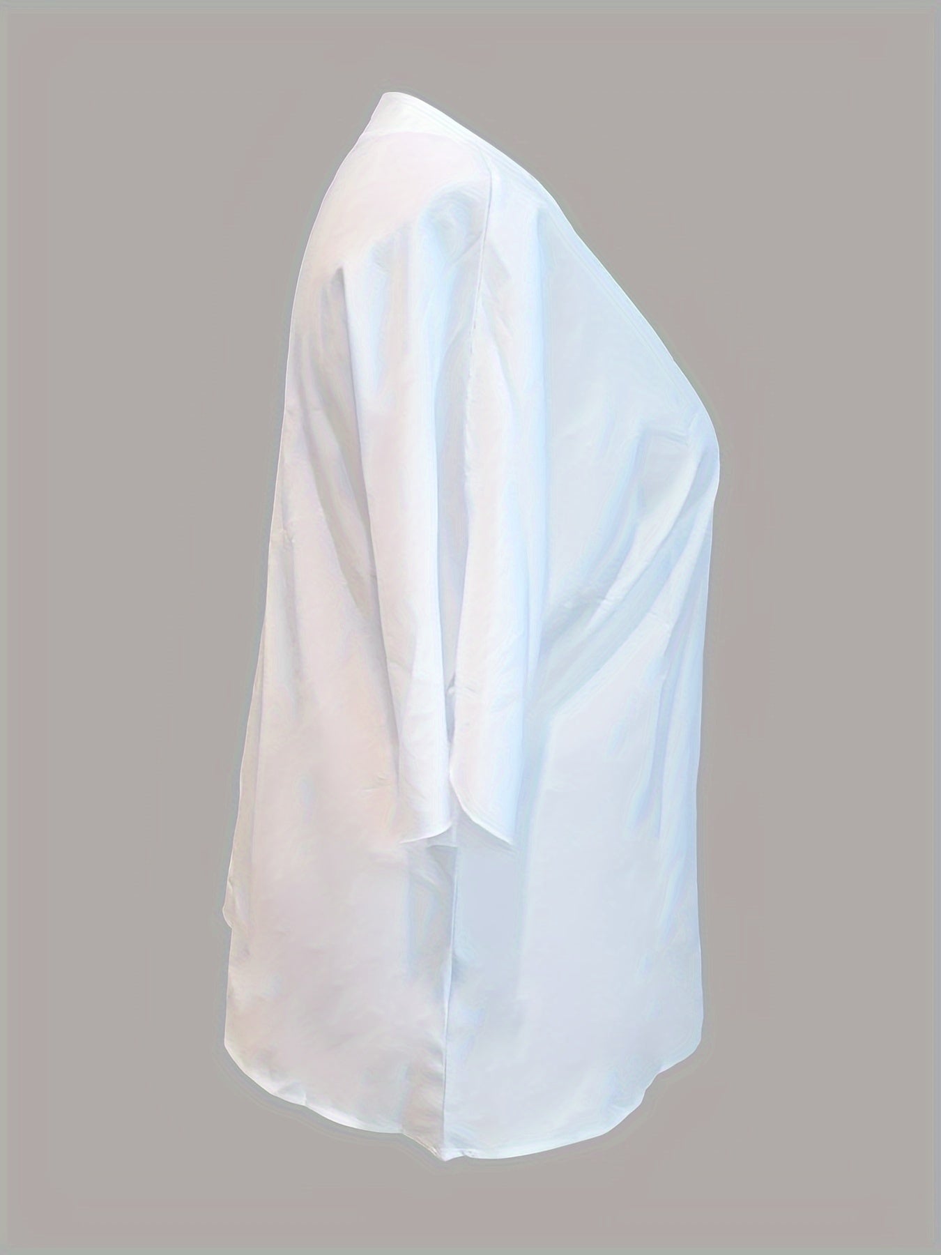Plus o'lchamli bluz V-shakli bo'yinli, bir rangli yozgi ayollar kiyimlari
