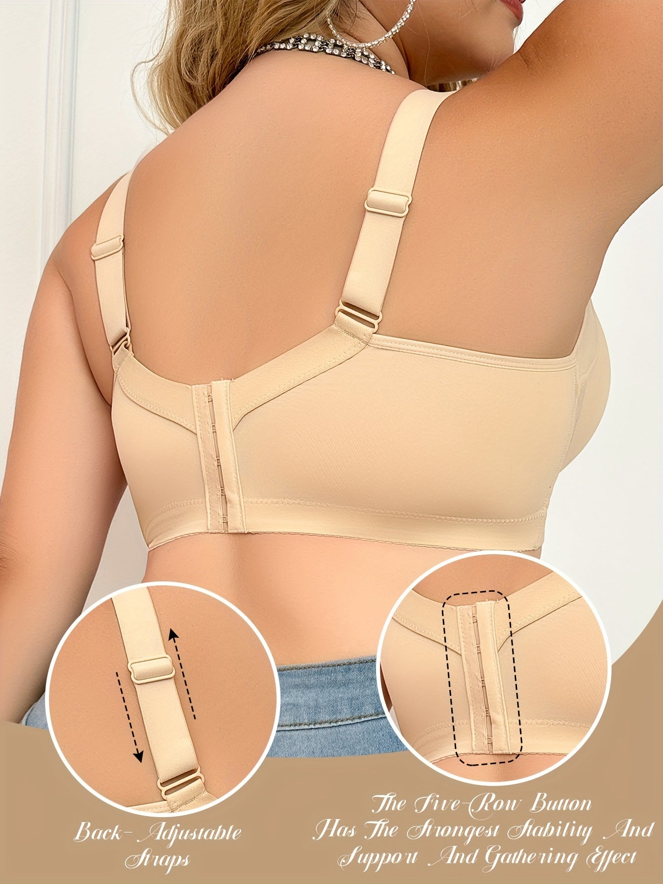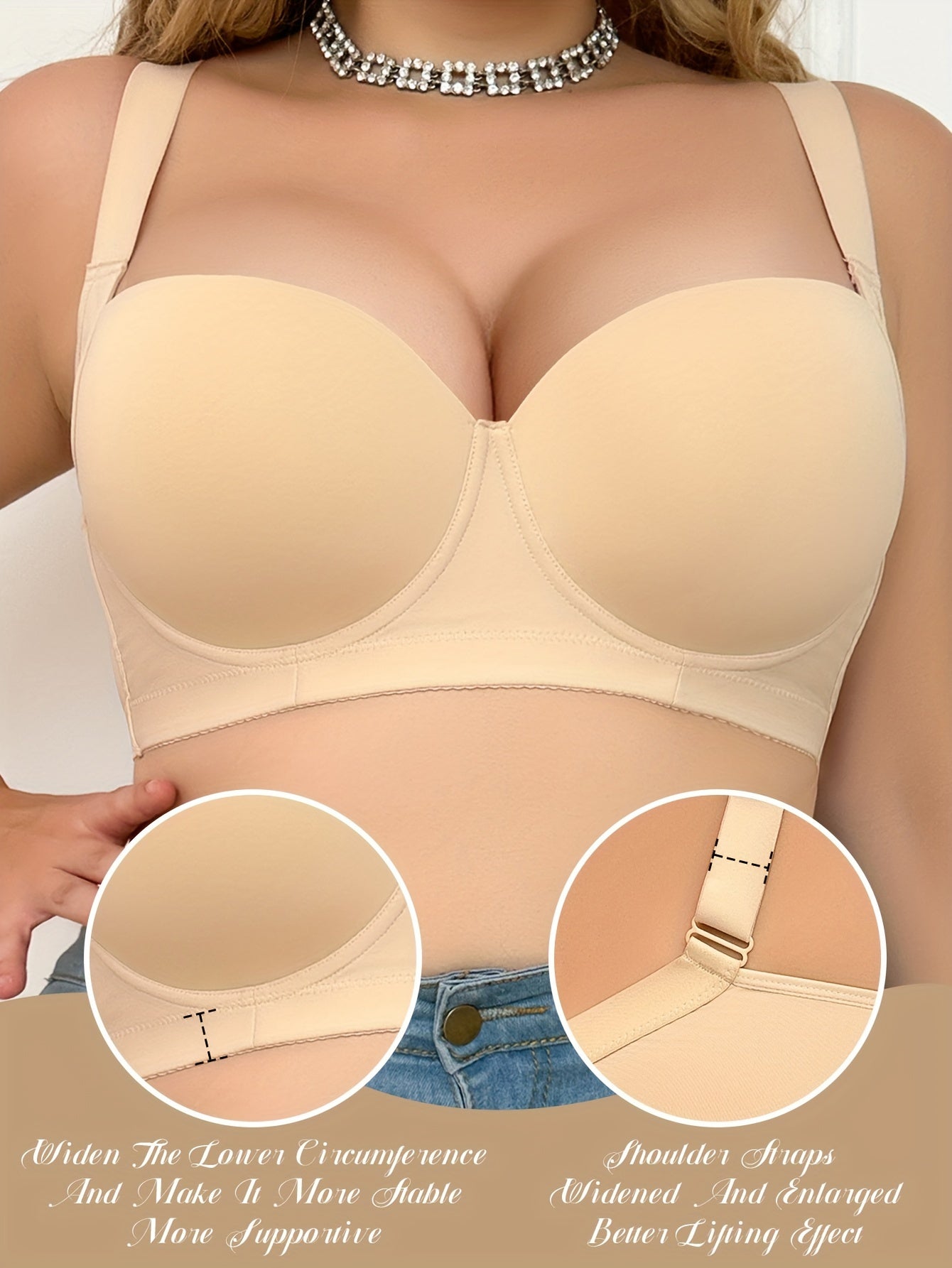 Katta o'lchamdagi braletlar, olib tashlanmaydigan to'ldiruvchi, oddiy uslub, simli qo'llab-quvvatlash va sozlanadigan xususiyatlar bilan. Poliamid va elastandan tayyorlangan, o'rtacha cho'ziluvchan mato, bir rangda.