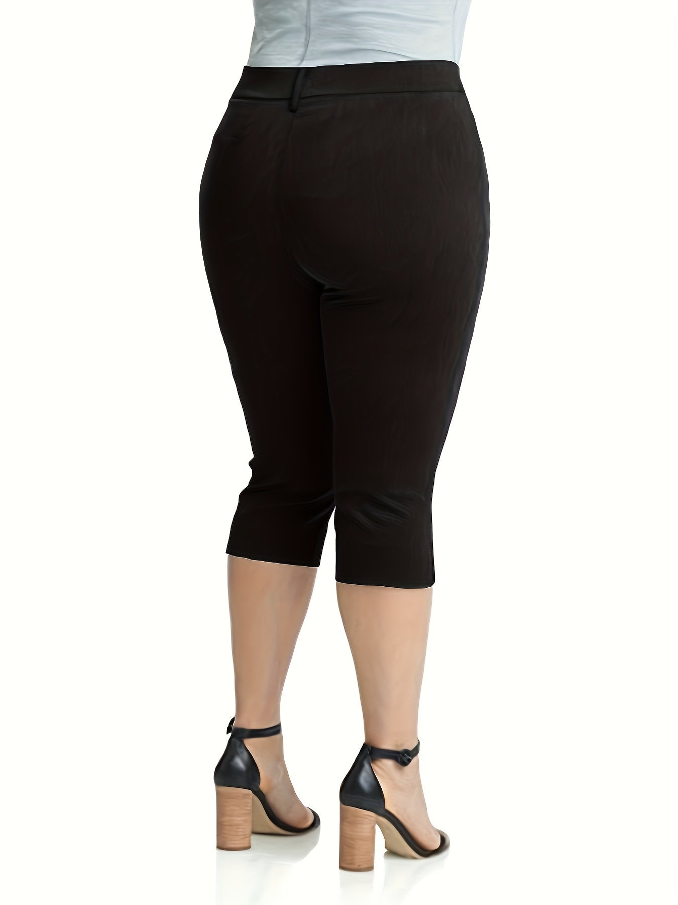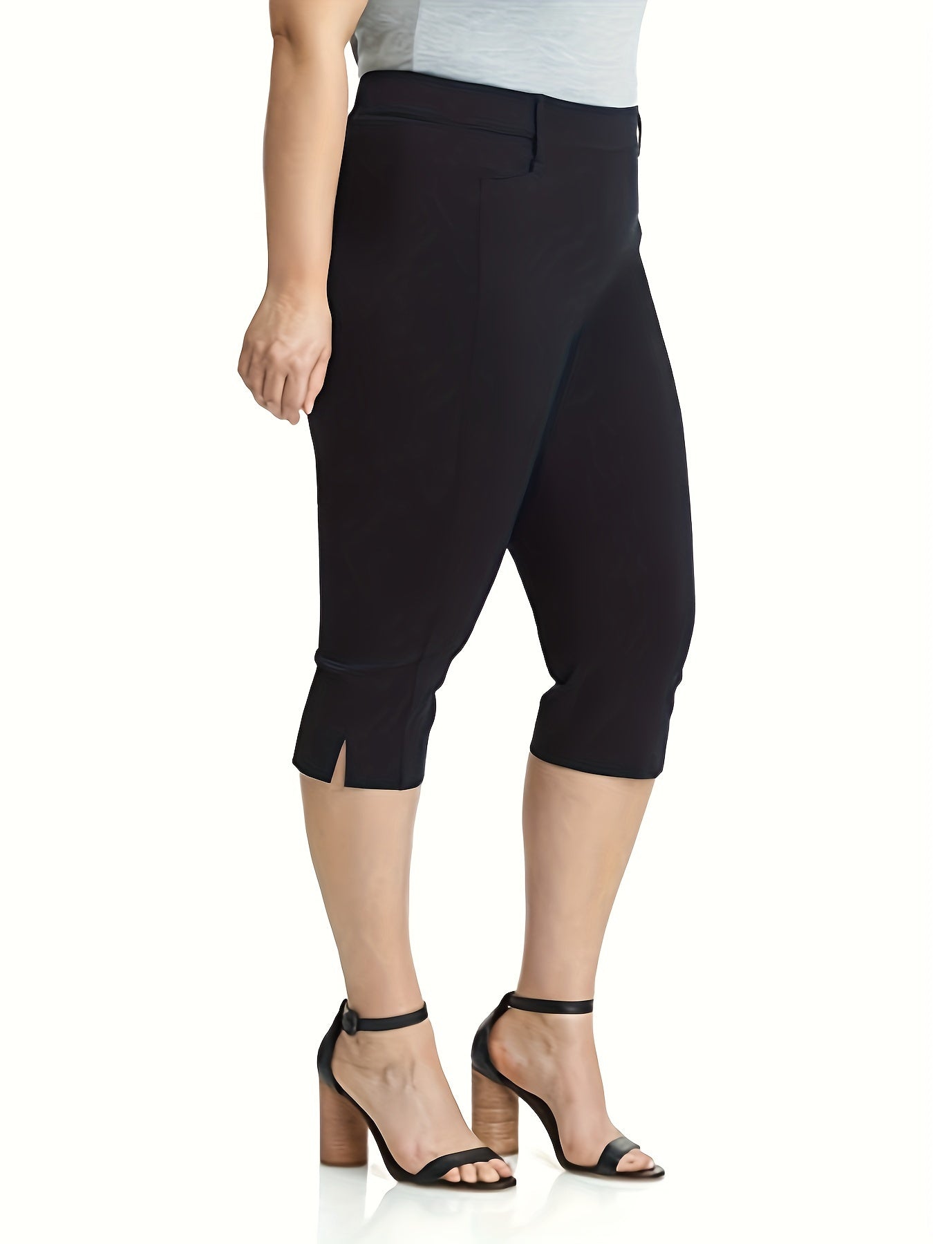 Plus o'lchamli Capri shimlar ayollar uchun elastik polyester to'liq rangli cho'ntaklar