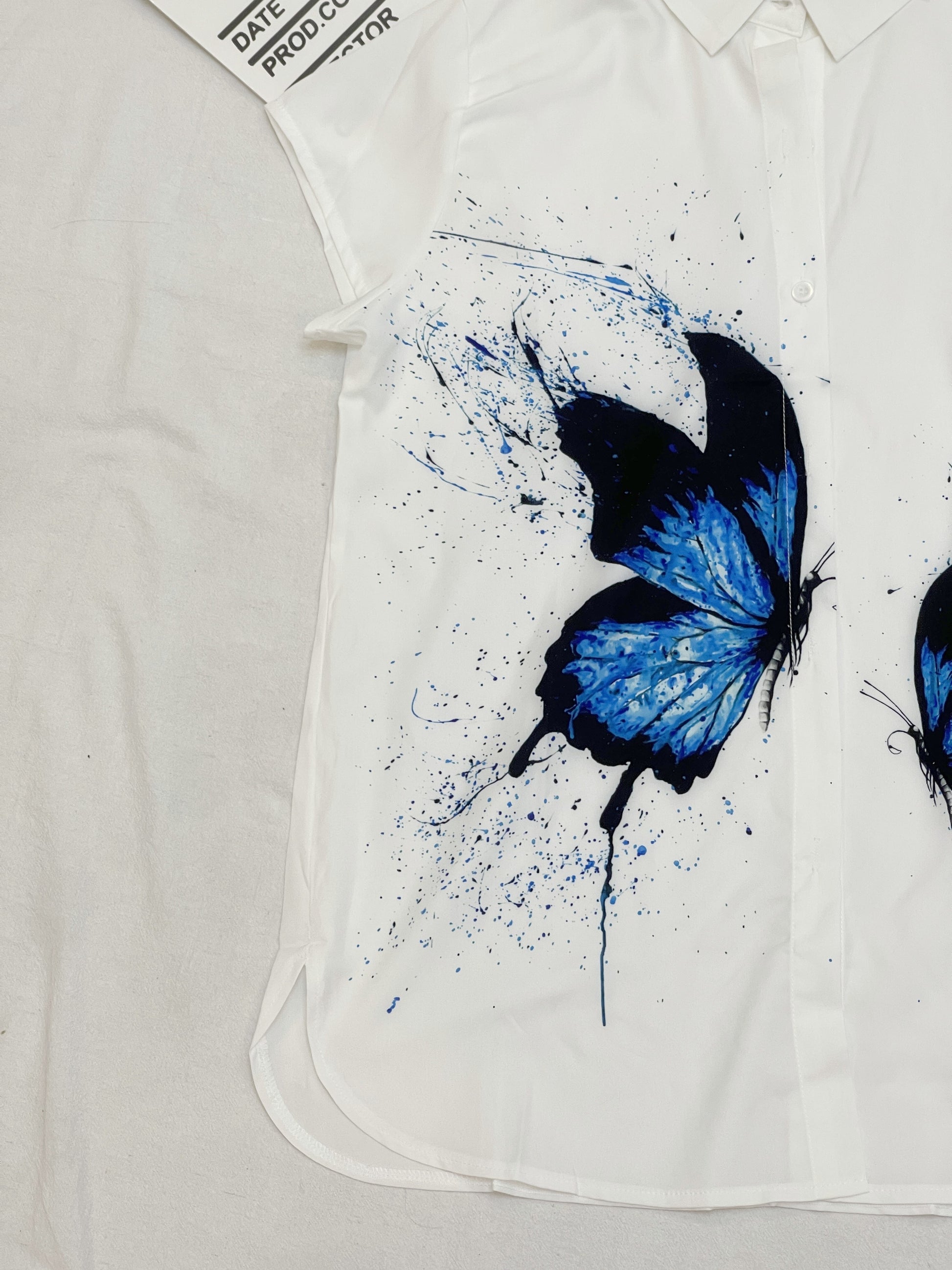 Plus Size Casual Blouse Women's Butterfly Print Button Up Cap Sleeve