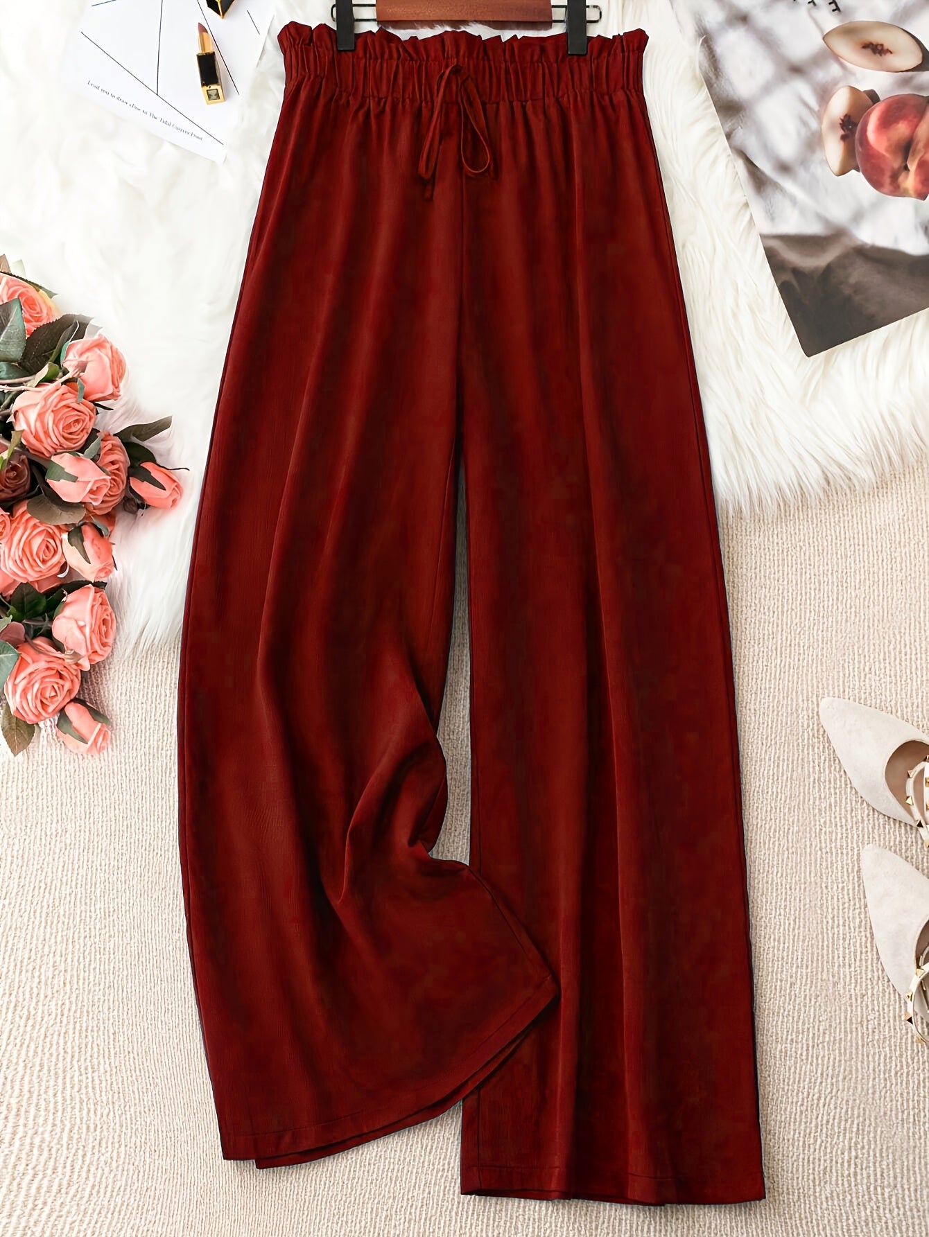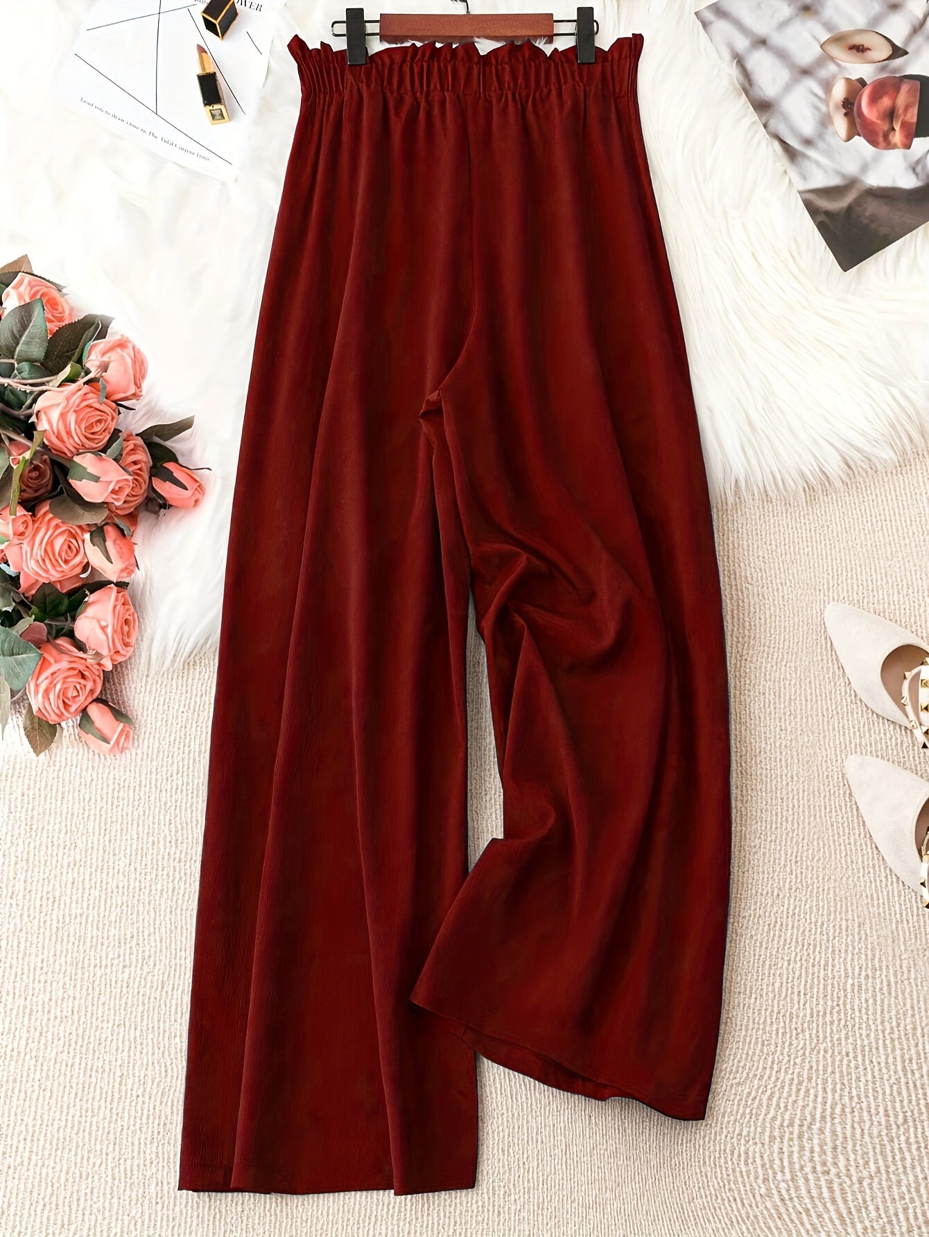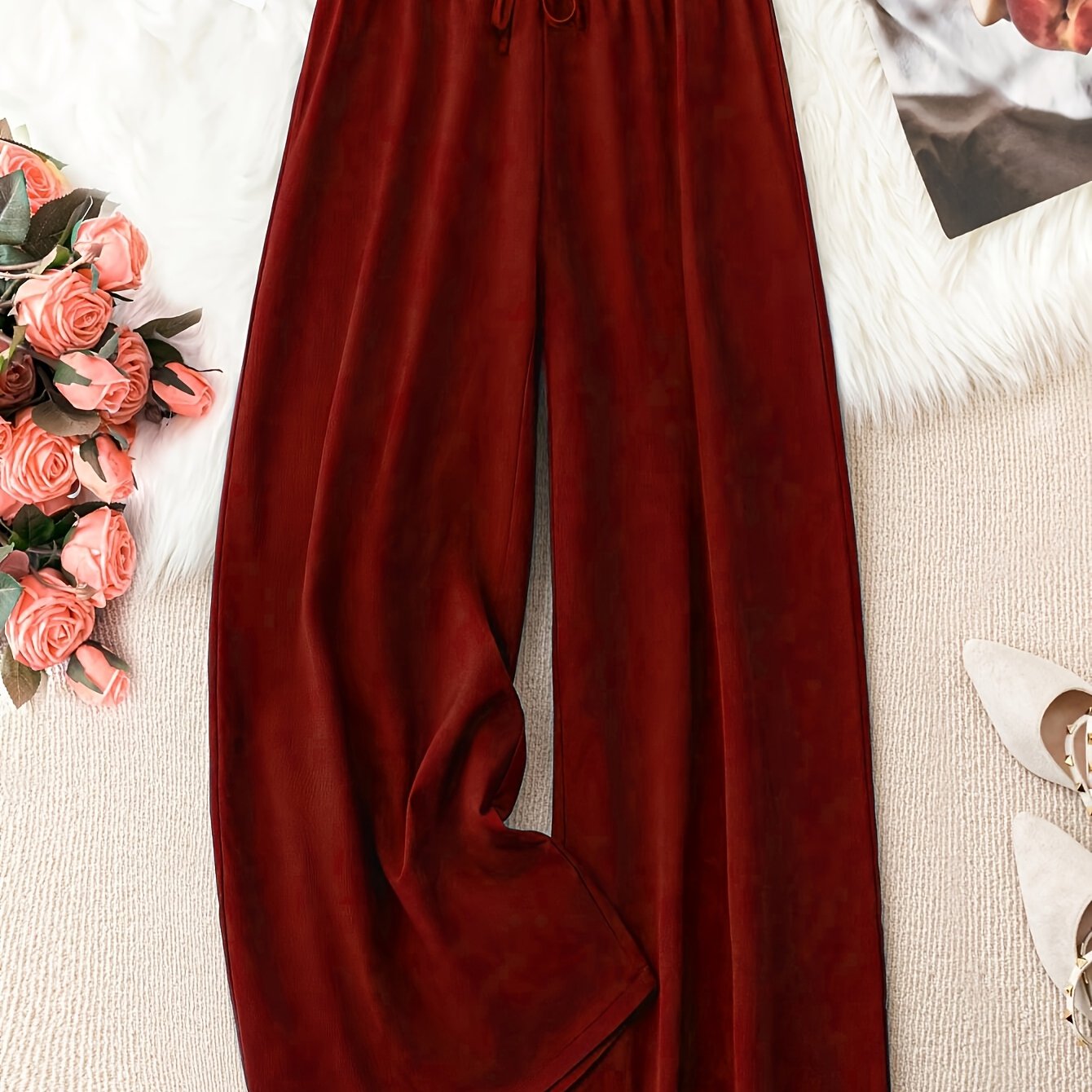 100% polyesterdan tayyorlangan, bir rangli, katta o'lchamdagi tasodifiy keng oyoq shimlar. To'g'ri kesim, cho'zilmaydigan mato, barcha fasllar uchun mos.