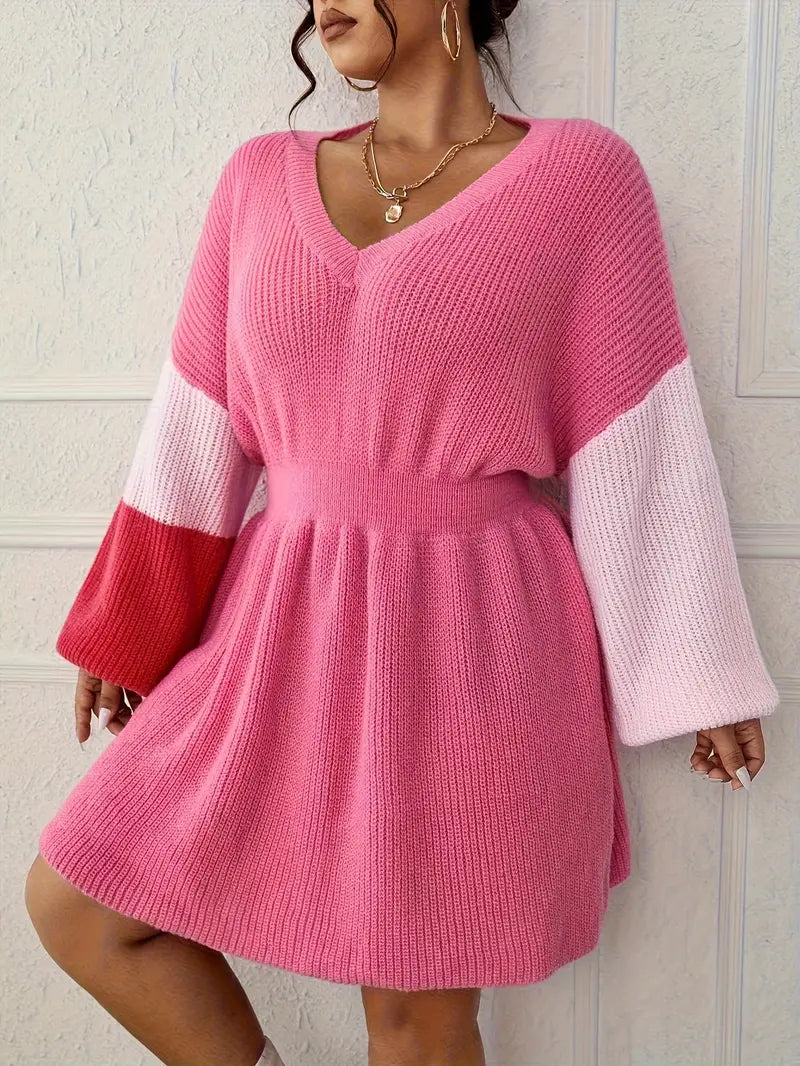 Plus Size Color-Block Long-Sleeve Dress for Women Casual Everyday