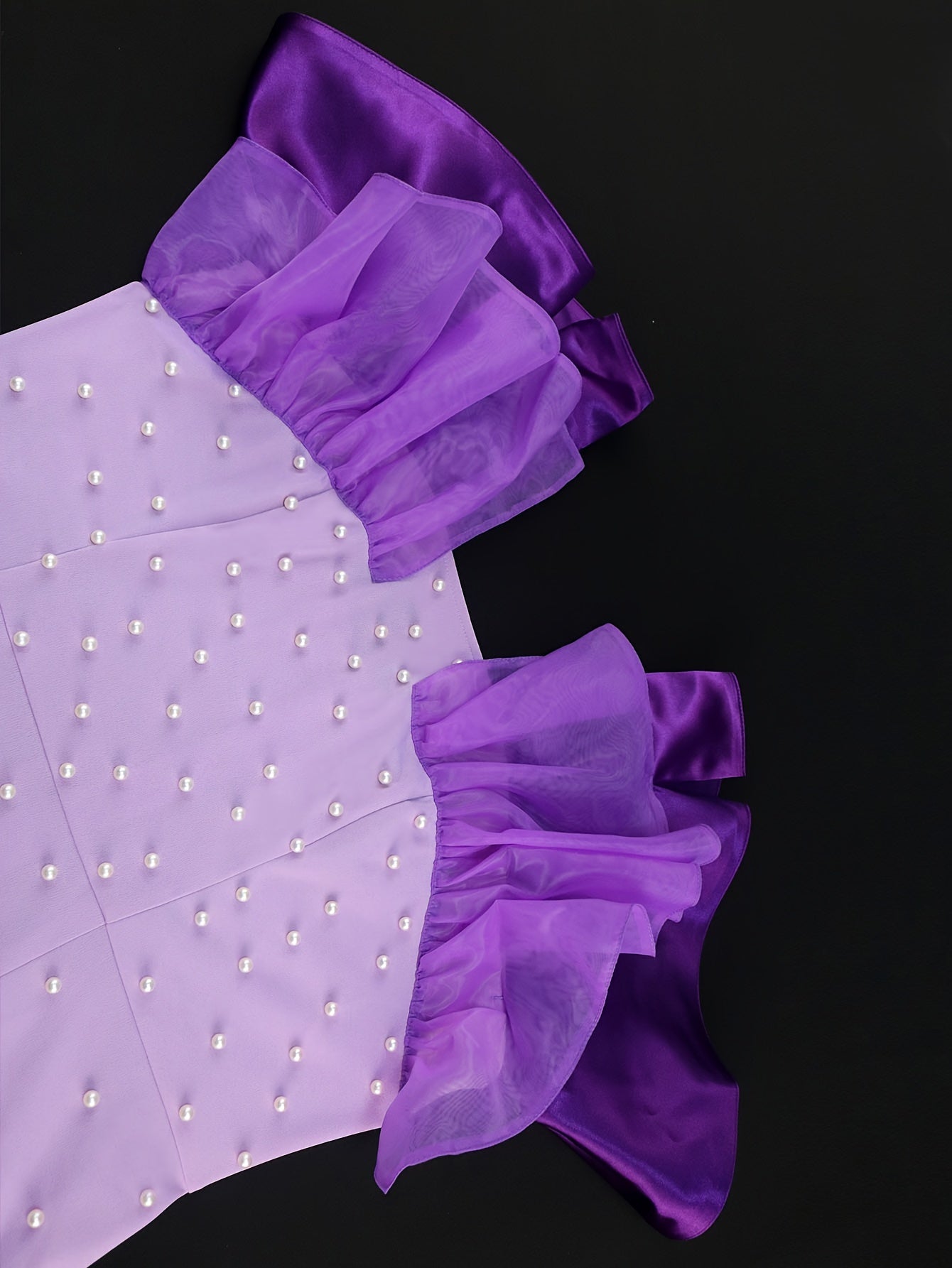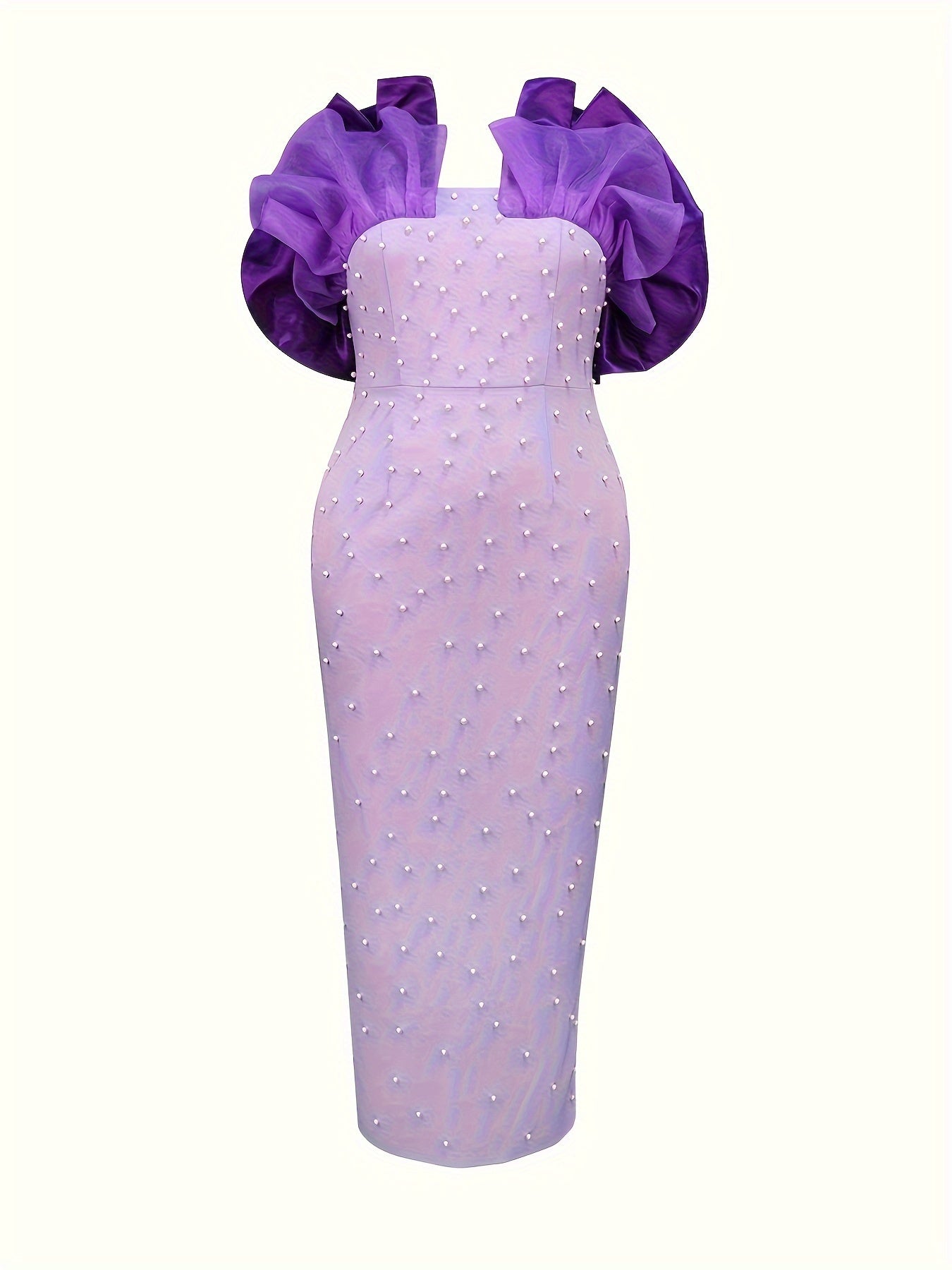 Plus o'lcham rangblok bejli bezakli bezsiz kiyingan kiyingan libos bayram va banket uchun