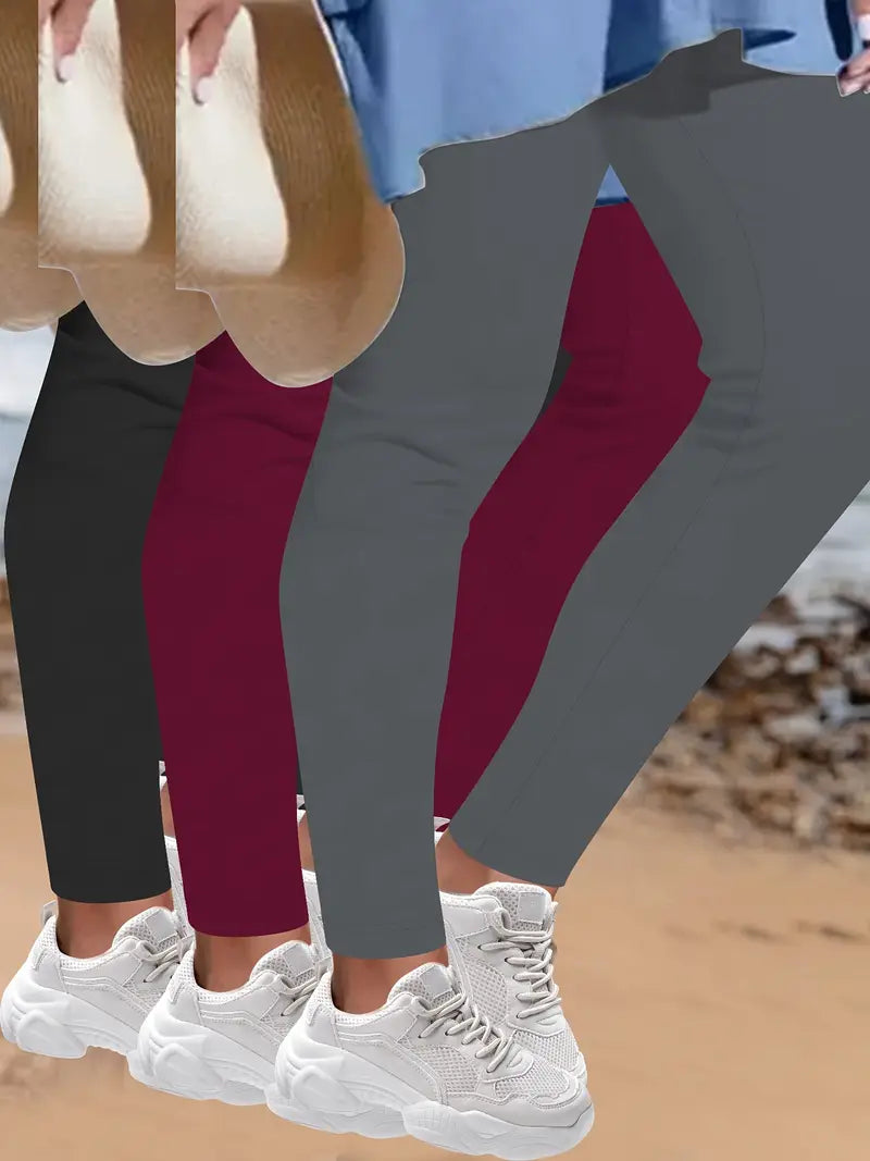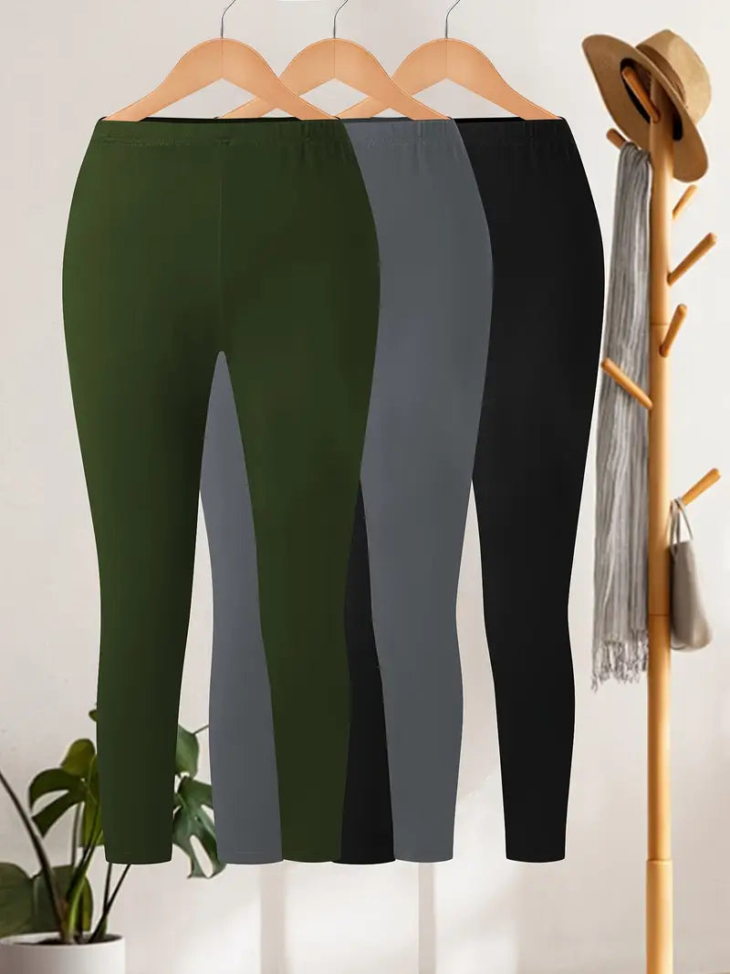 Plus Size Cropped Leggings Women High Stretch Polyester Solid Breathable 3-Pack