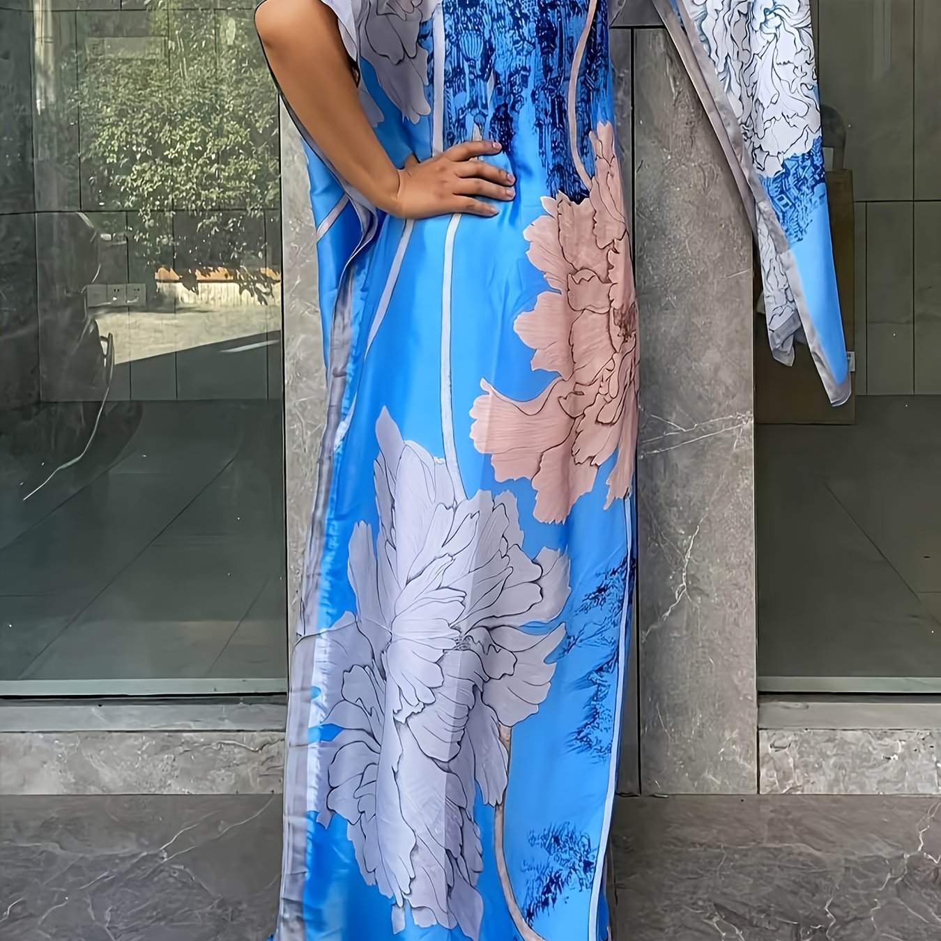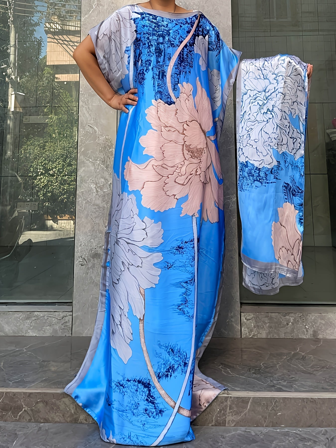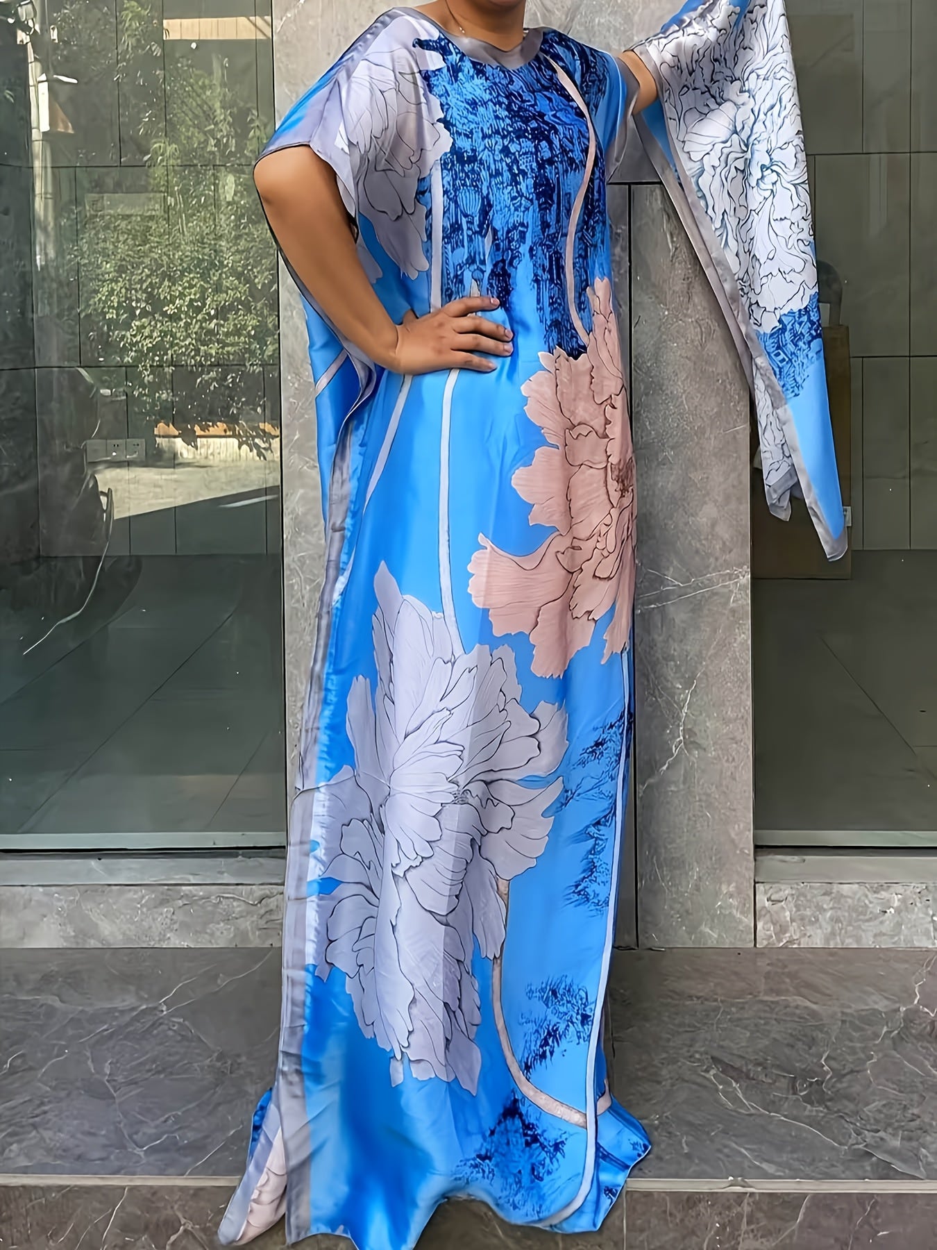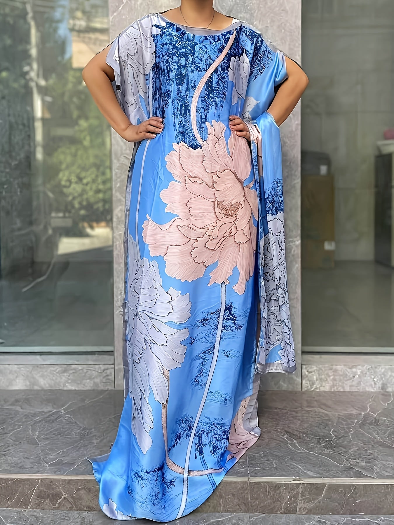 Plus Size Floral Dress Longline Short Sleeve Crew Neck Spring Summer
