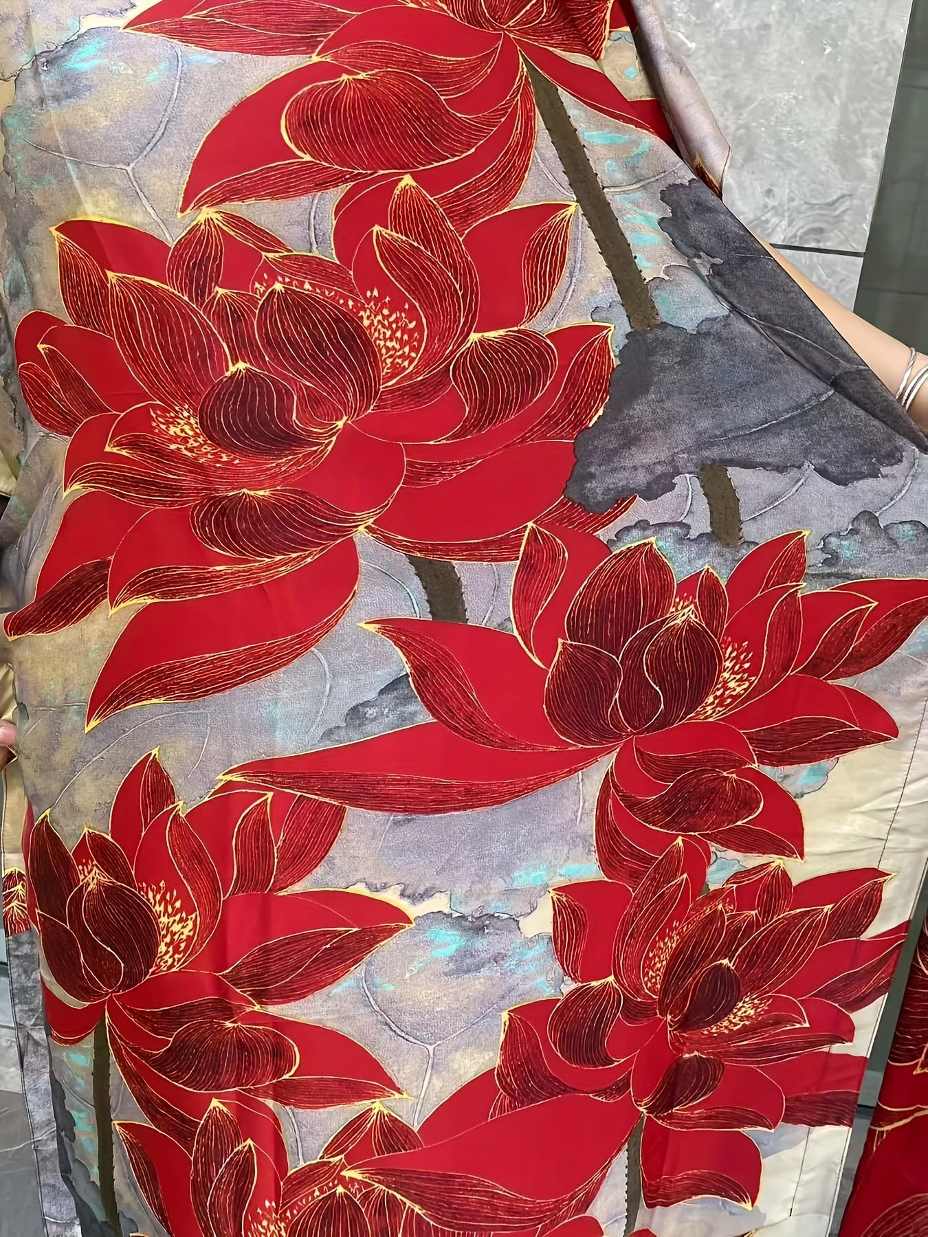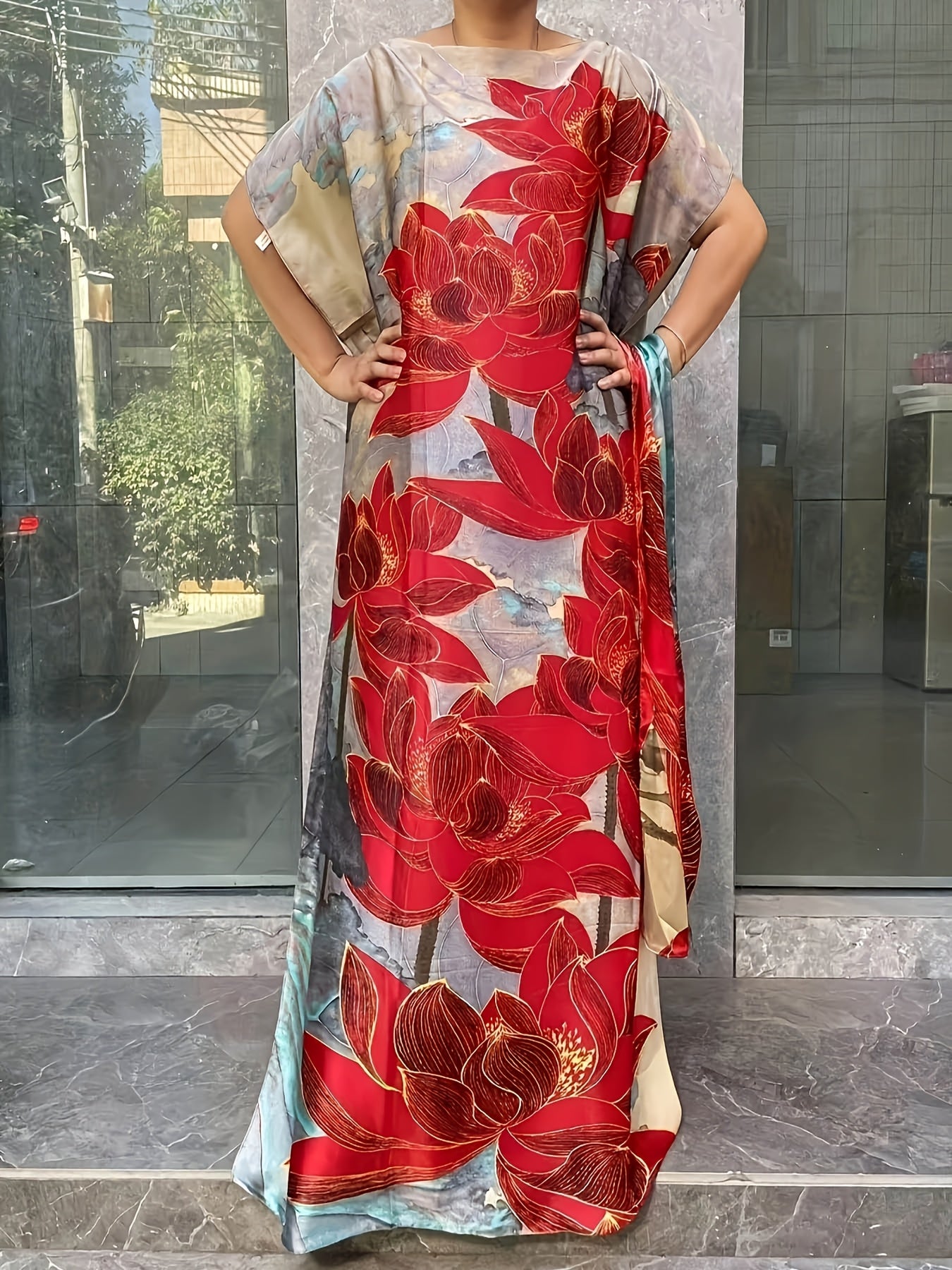 Plus Size Floral Longline Dress Short Sleeve Crew Neck Summer Clothing