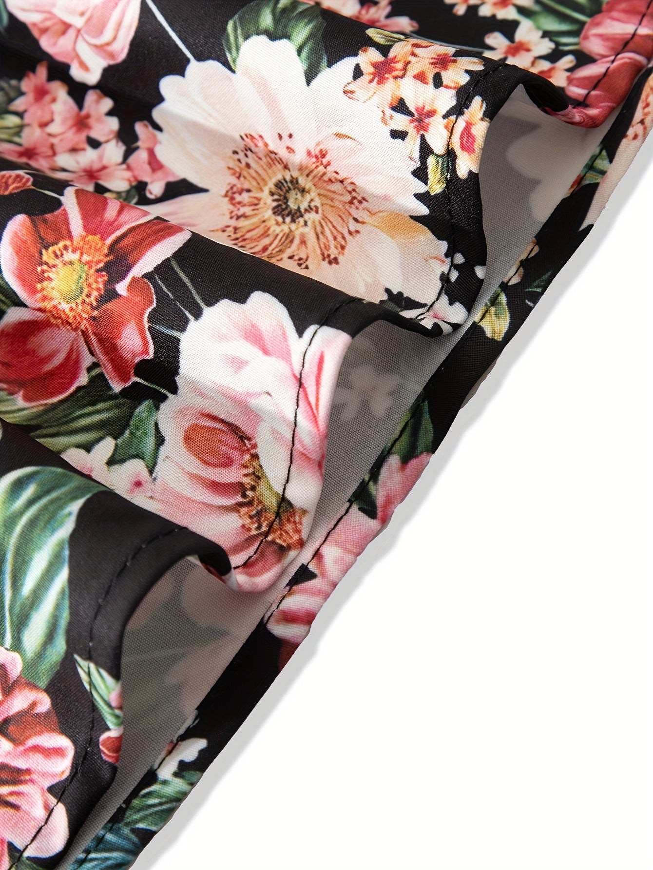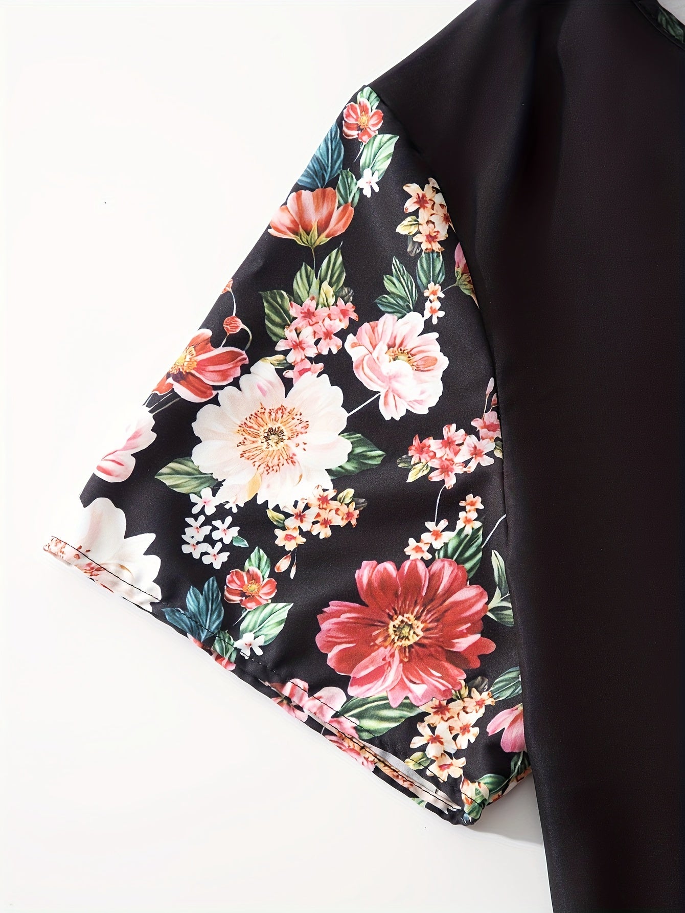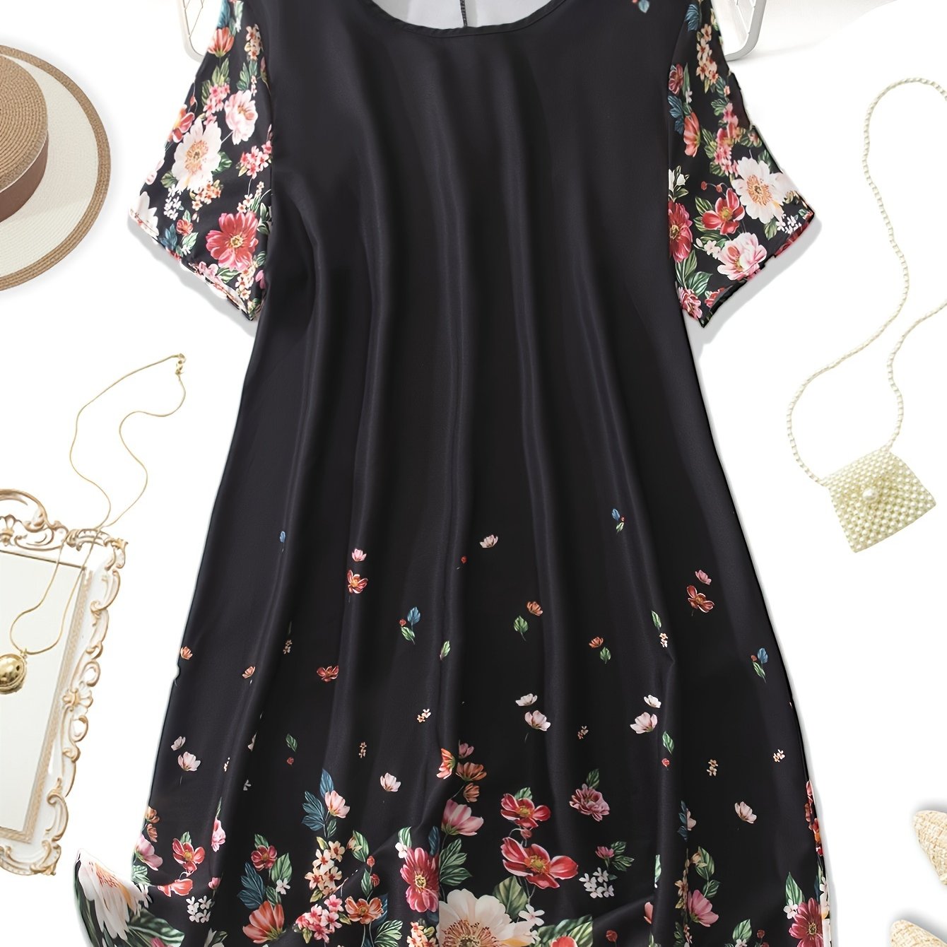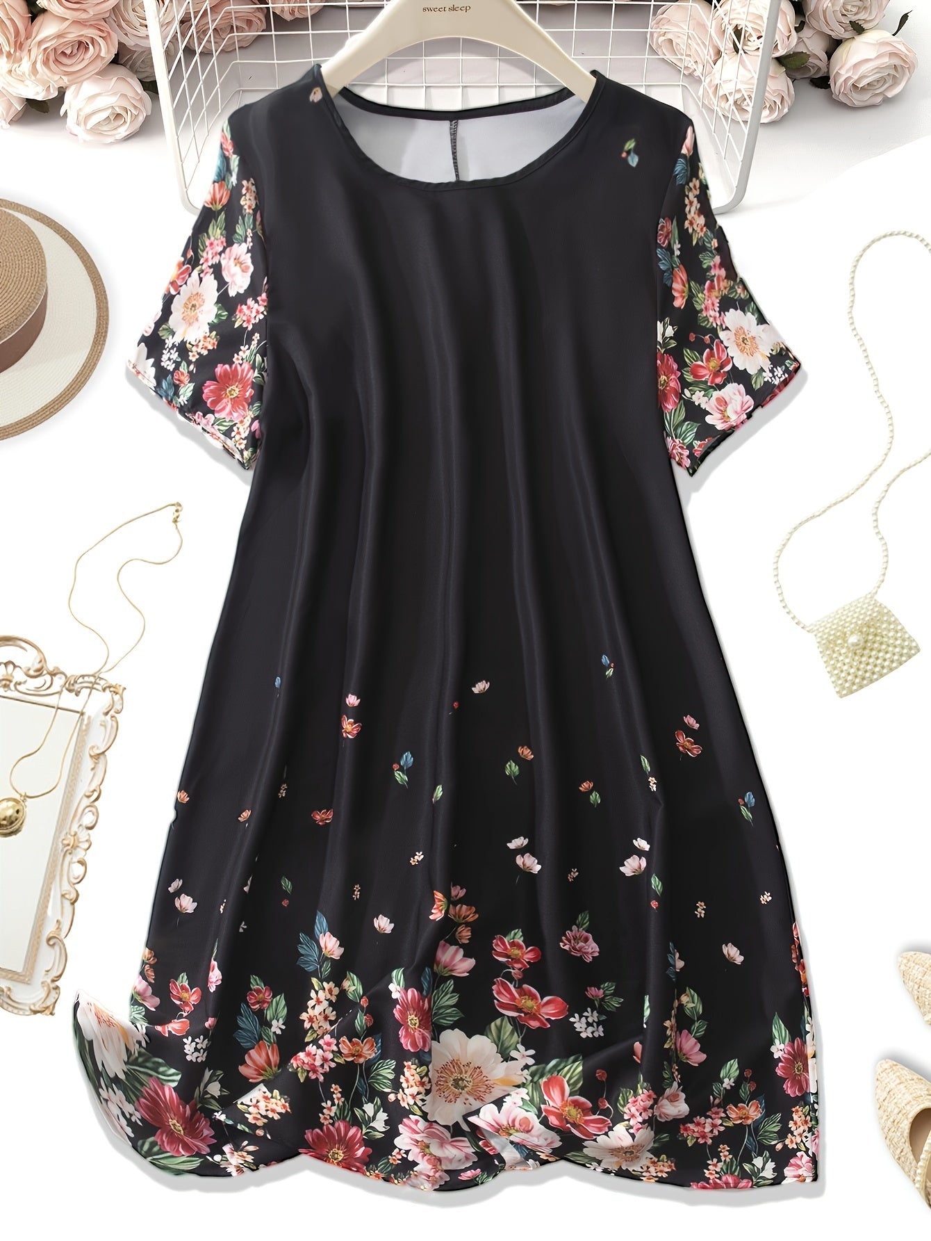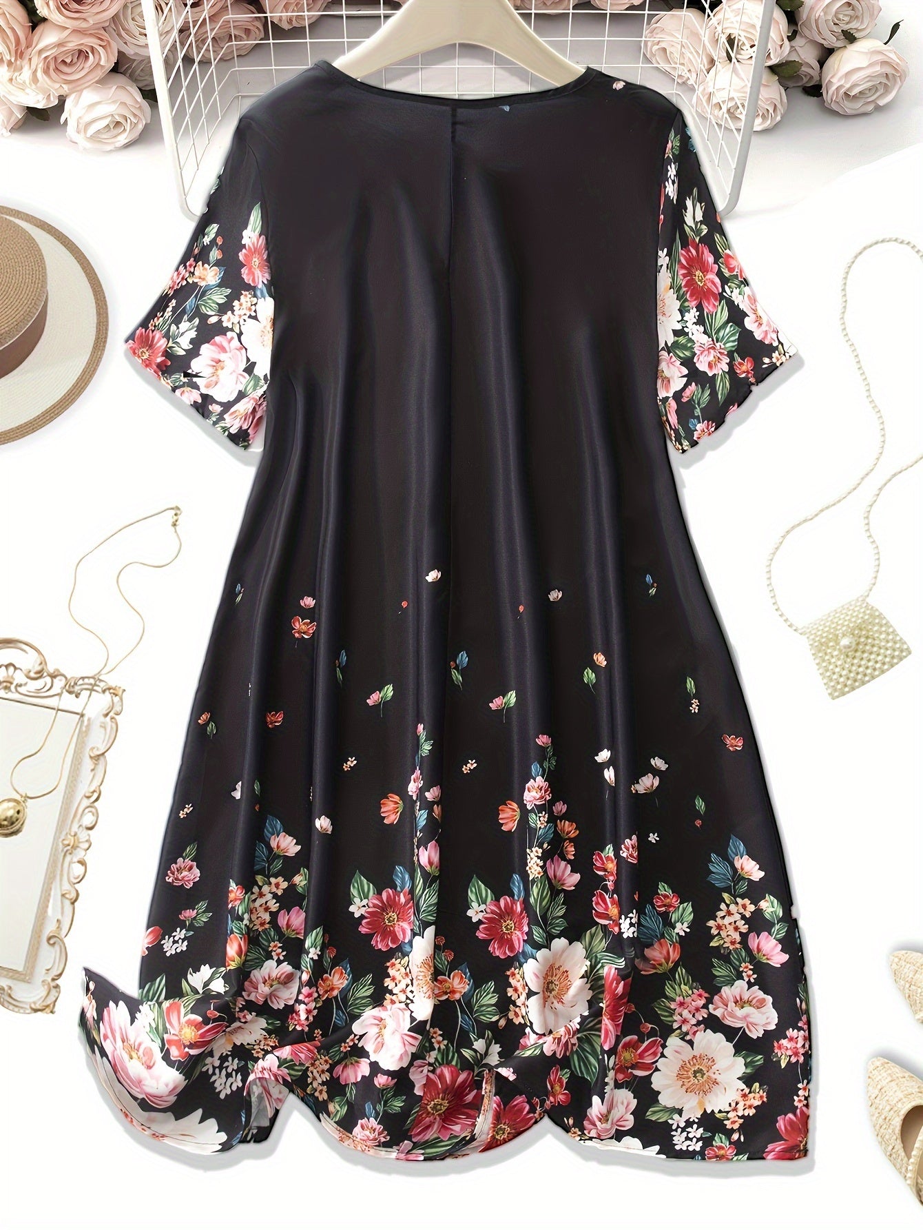 Yoz va bahor uchun katta o'lchamdagi gullar printli keng libos - Ayollar uchun tasodifiy qisqa yengli kiyim