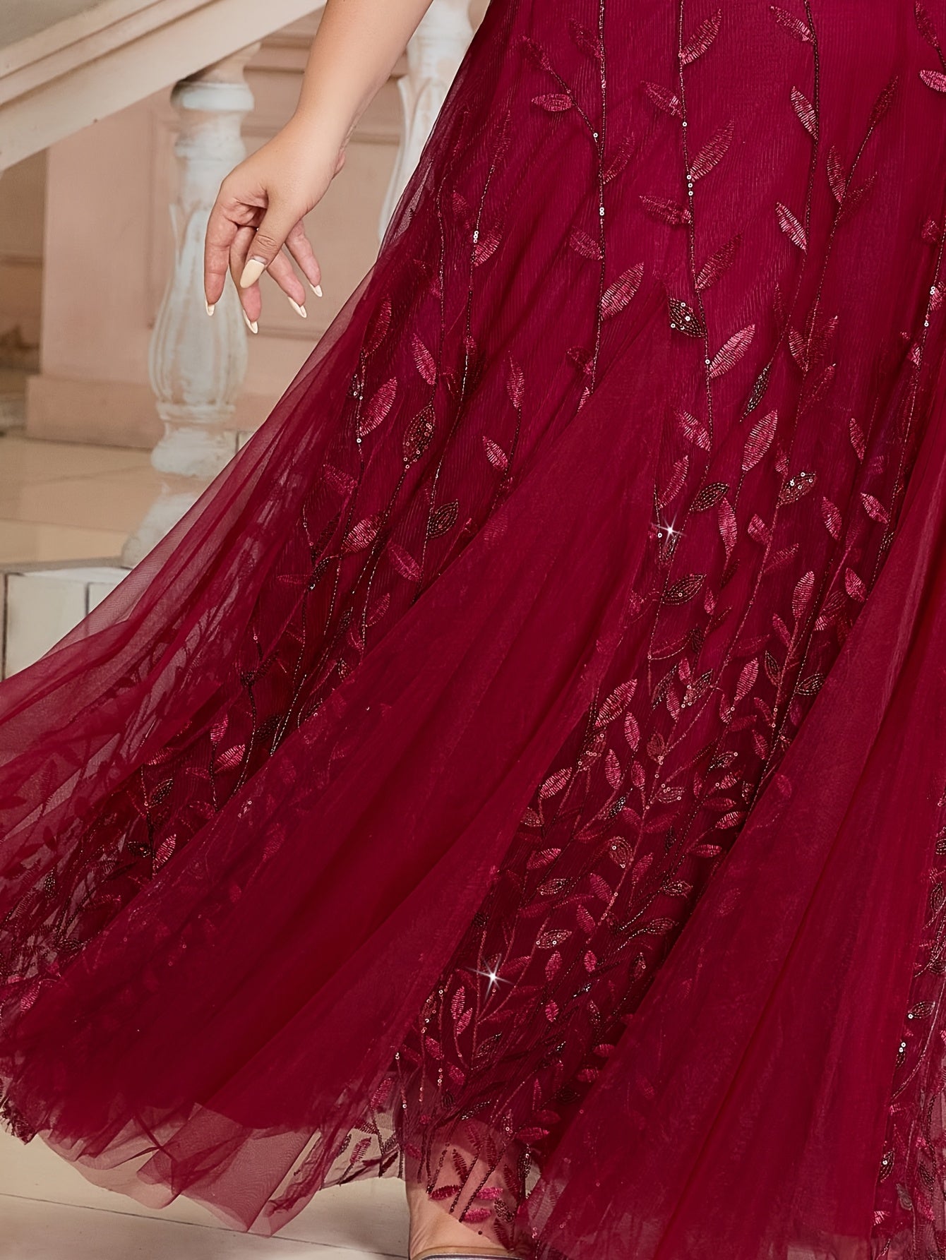 Plus Size Floral V-Neck Mother of the Bride Dress Long Sleeveless Gown Black White Leaf Pattern