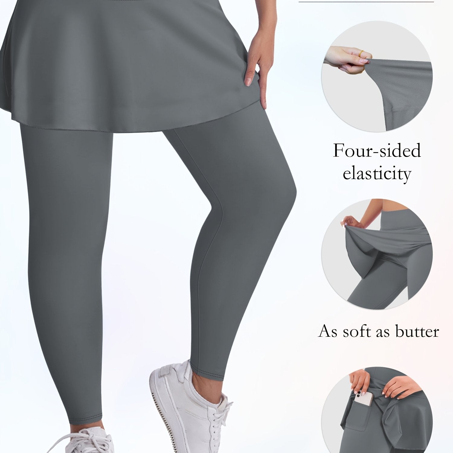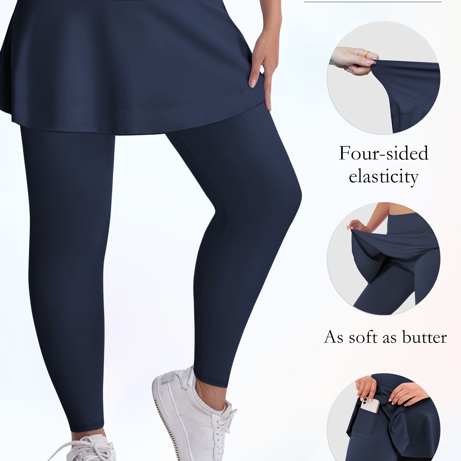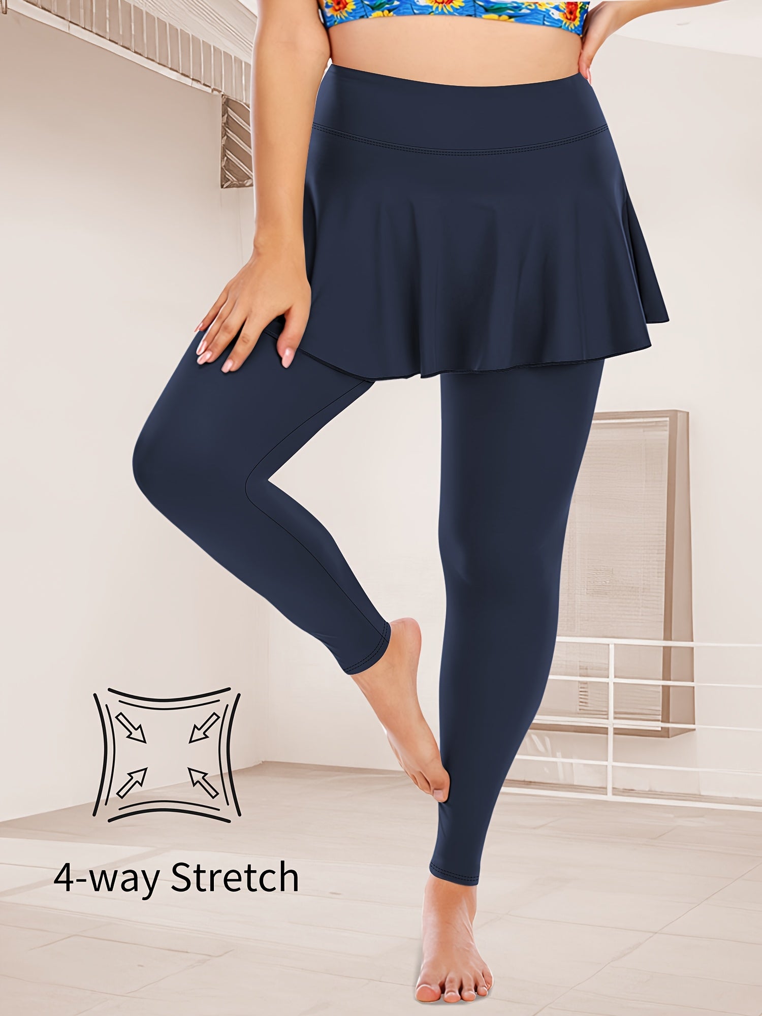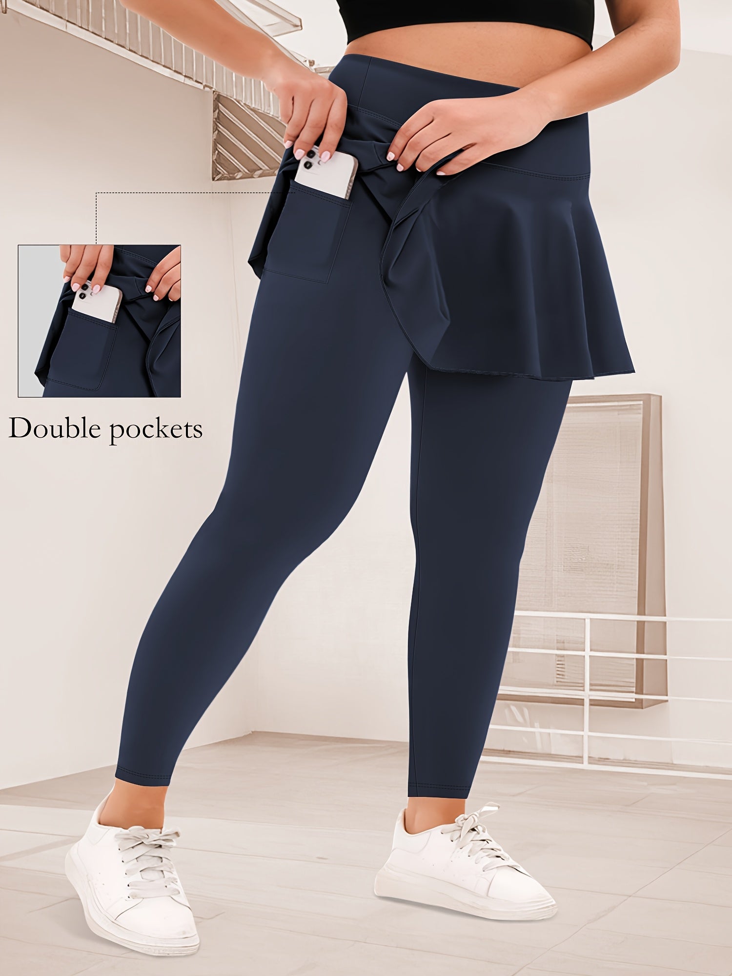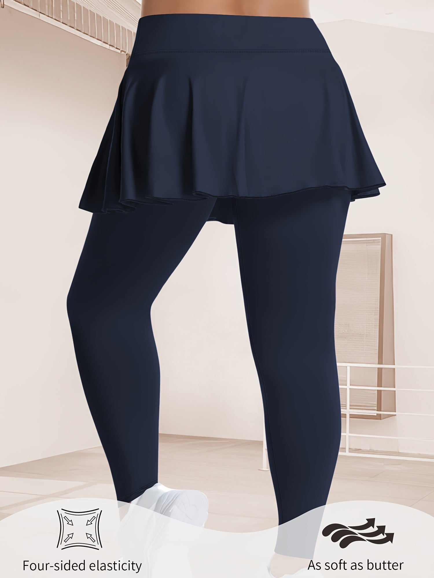 Plus o'lchamli yuqori belli legginslar, 9-teshikli dizayni bilan, ayollar uchun, bir rangda