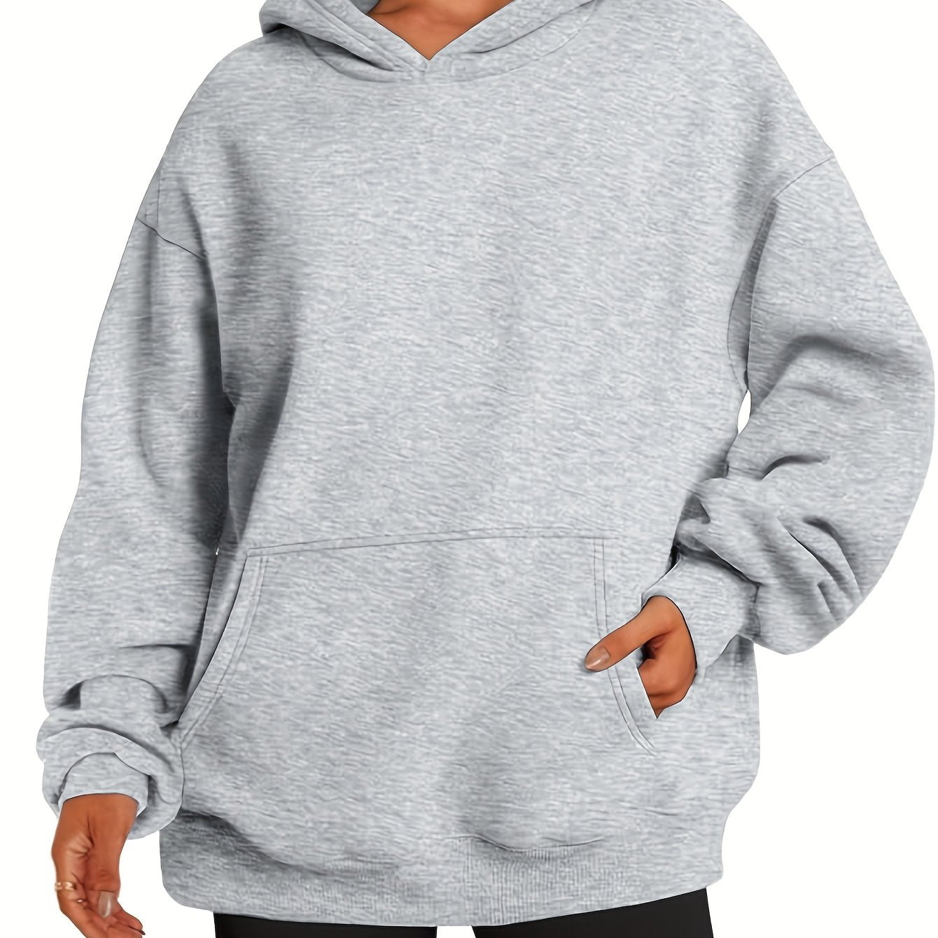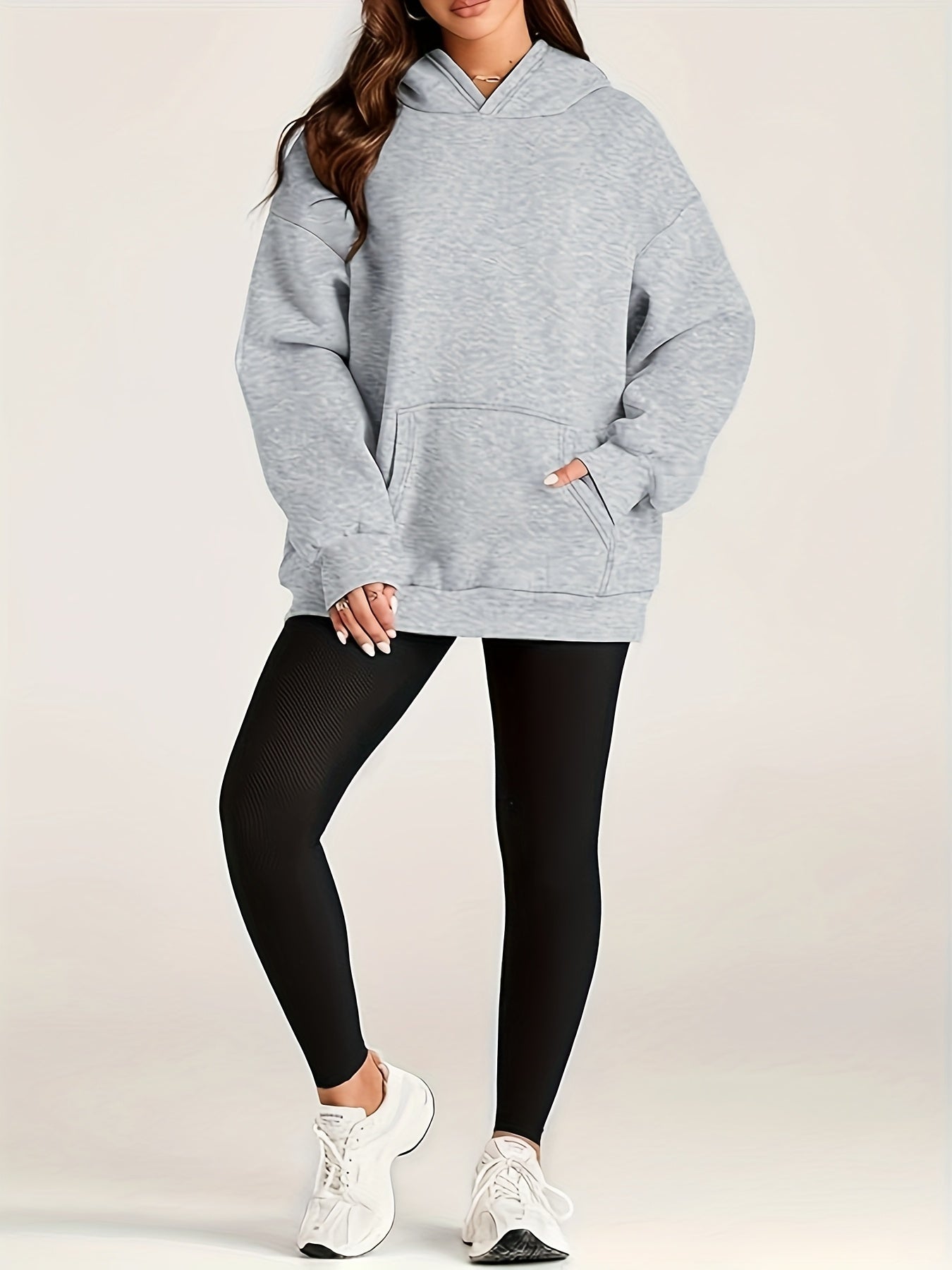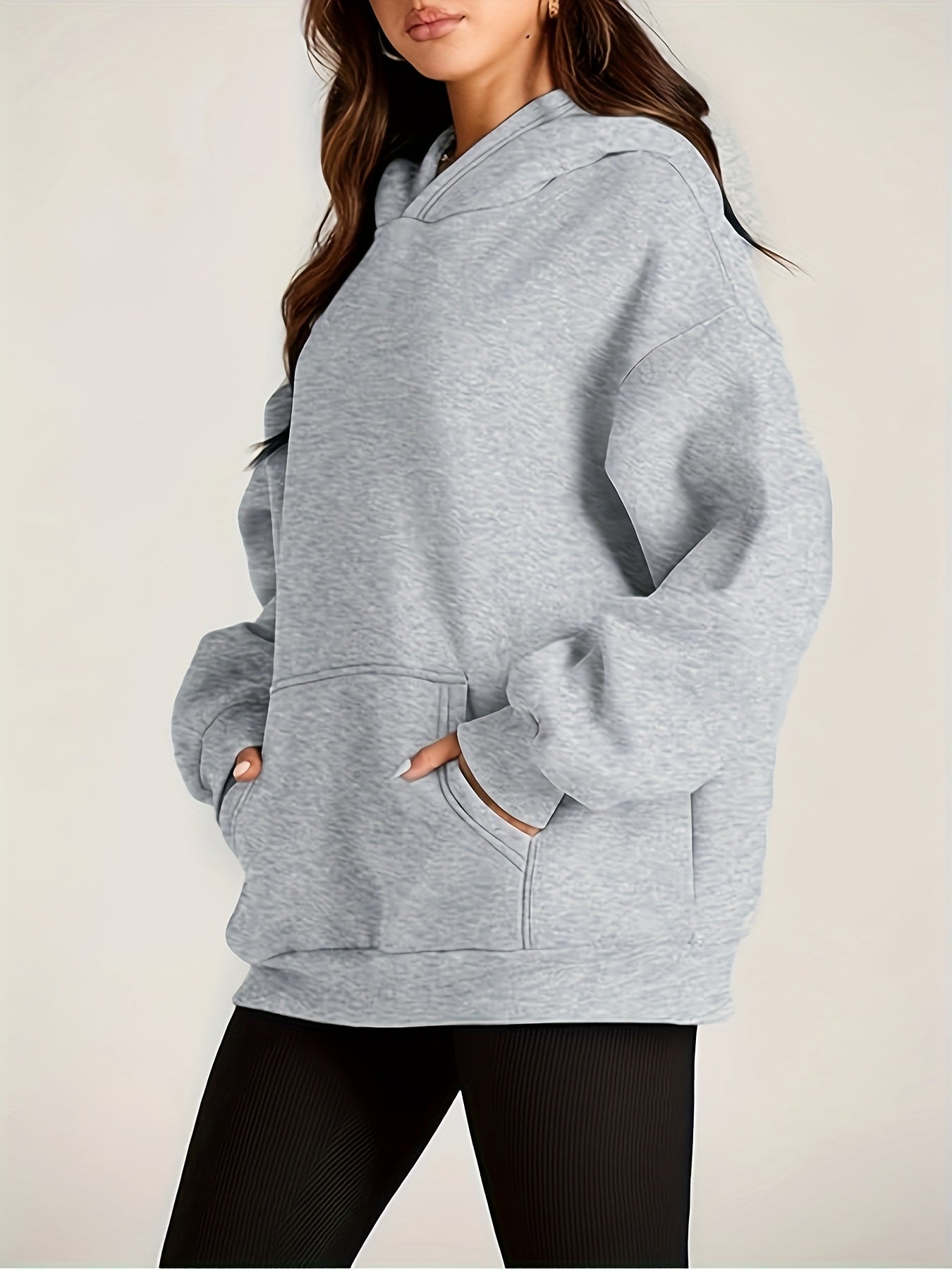 Plus o'lchamli kapüşonli svitshot, cho'ntakli, polyester tikilgan mato, kuz-qish