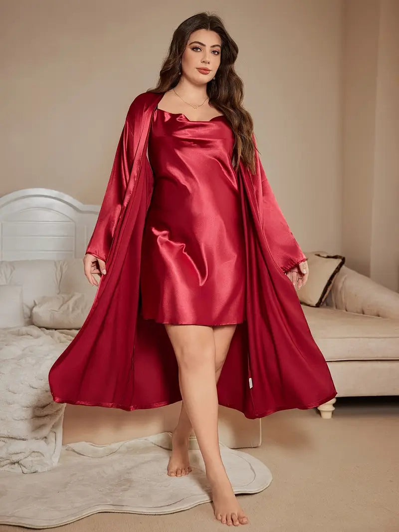 Plus Size Lace Spliced Sleepwear Set with Tie-Back Nightwear Two-Piece