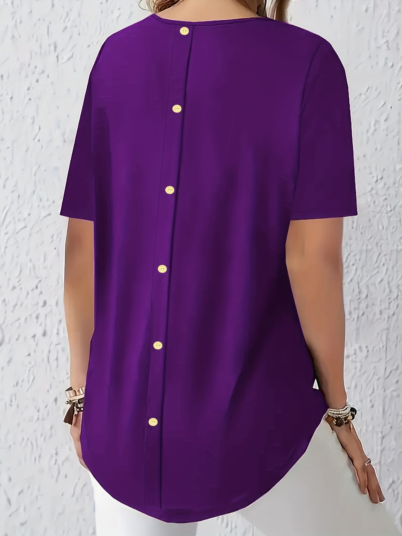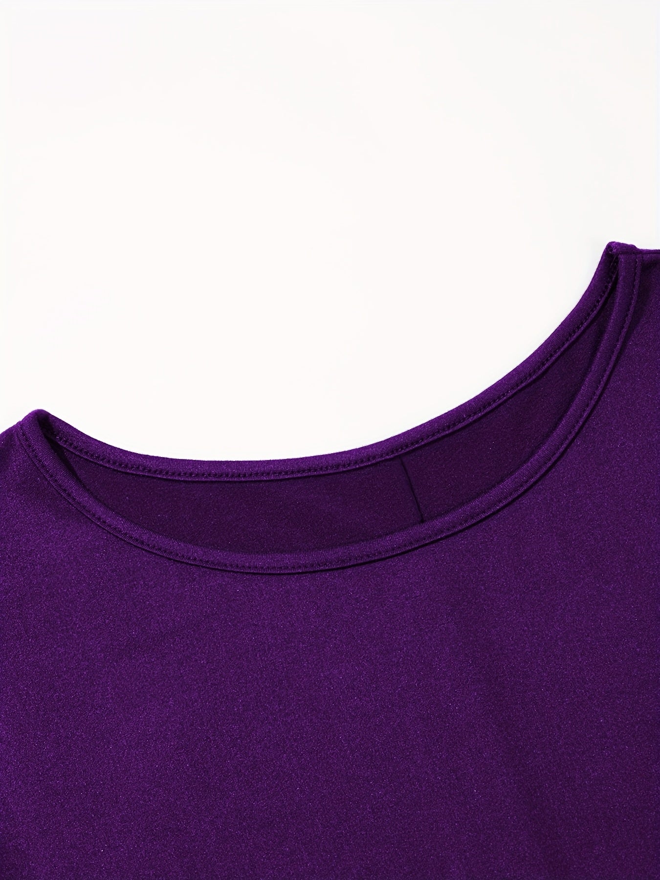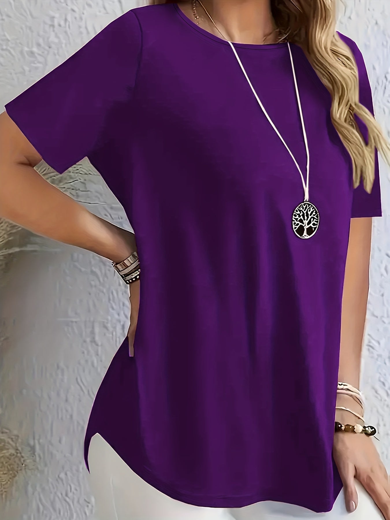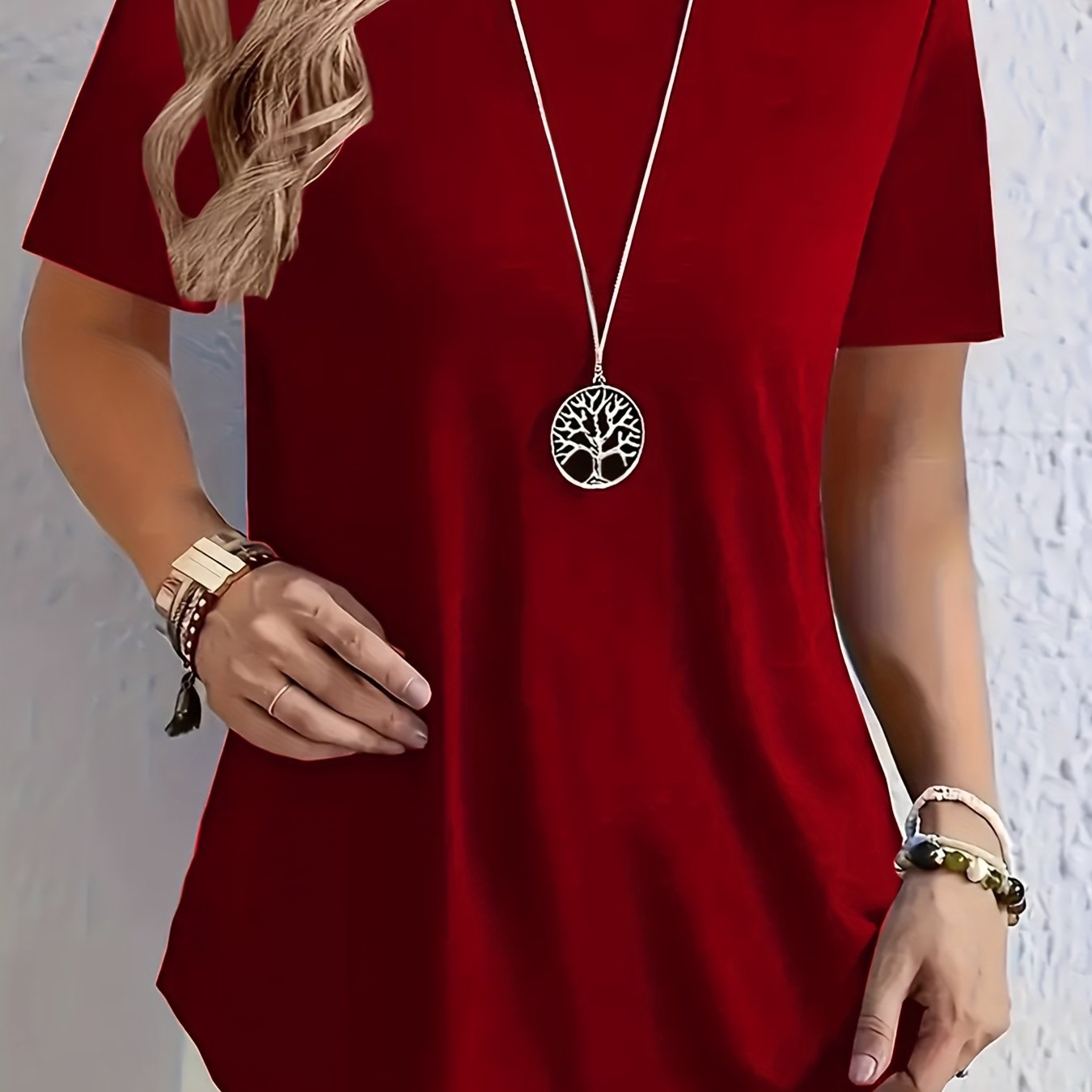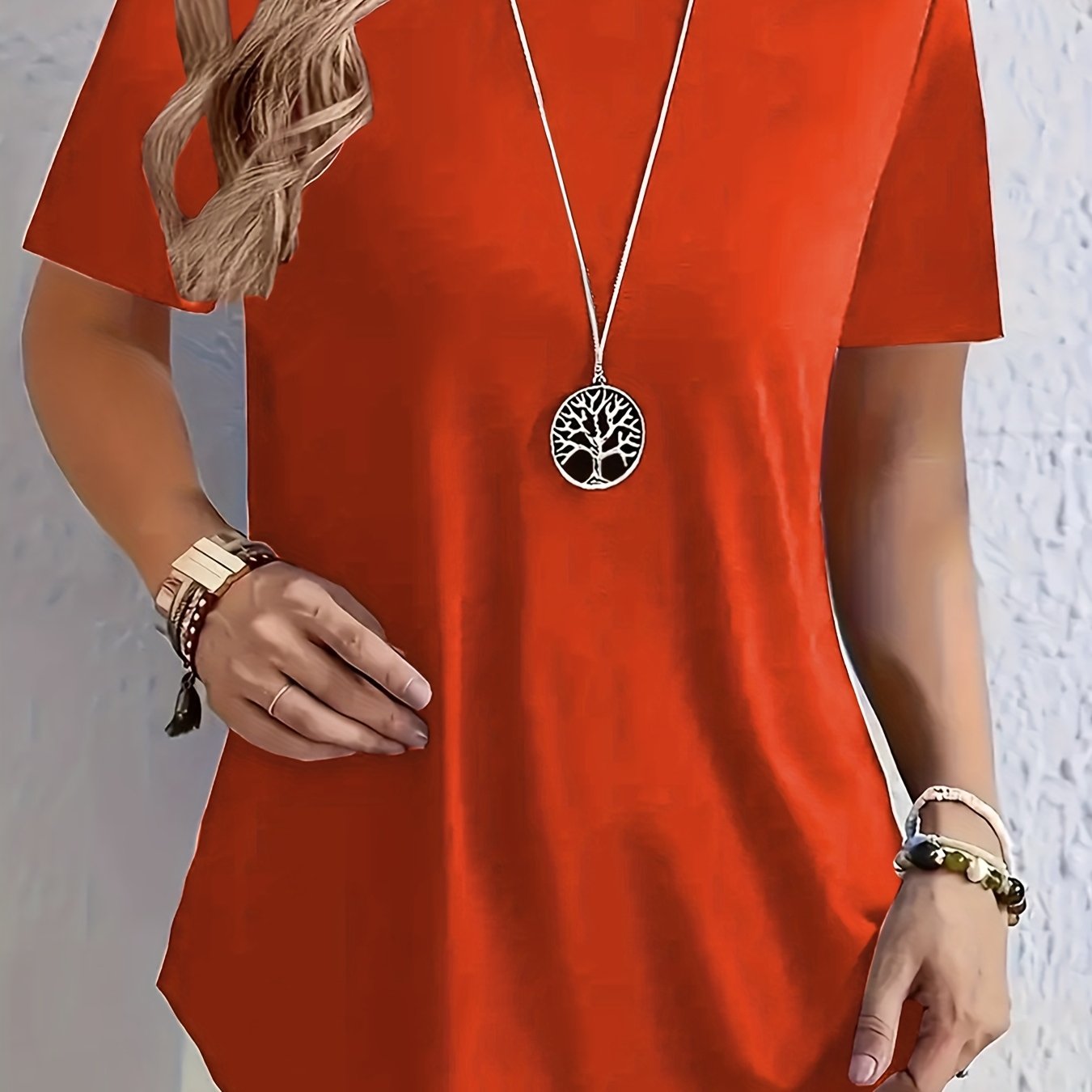 Plus o'lchamli uzun ko'ylakli ayollar uchun polyester zaytun yashil kruj bo'yinli futbolka
