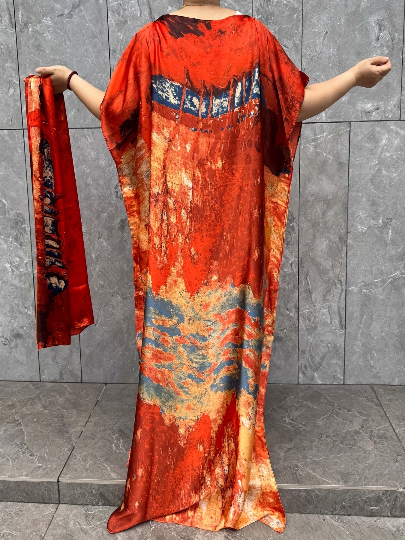 Plus o'lchamli maxi kaftan kiyi abstrakt bosma oqimli qulay yozgi
