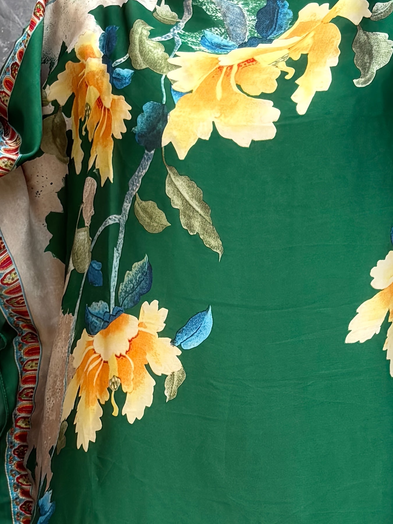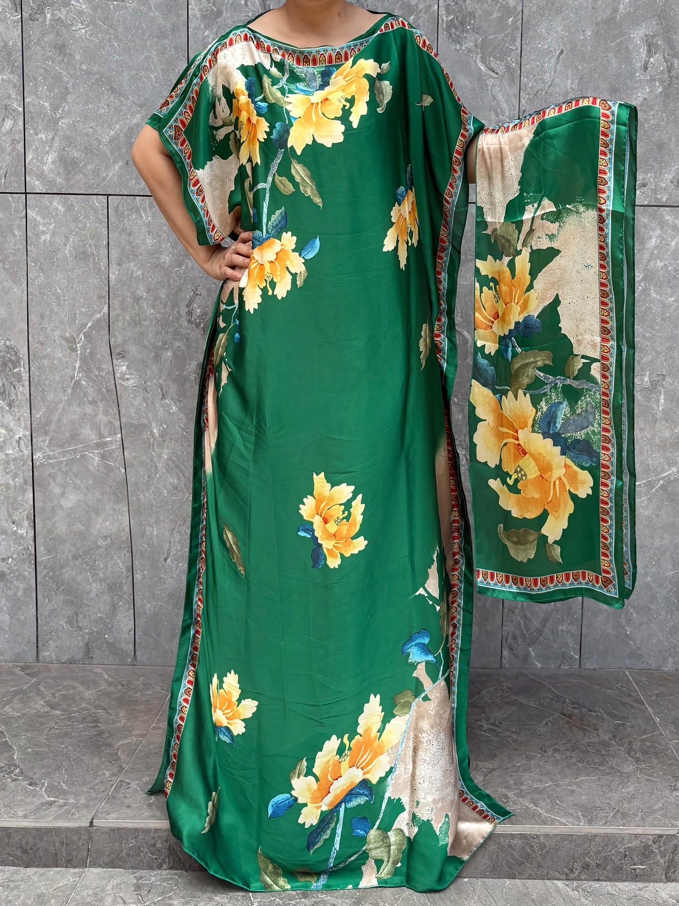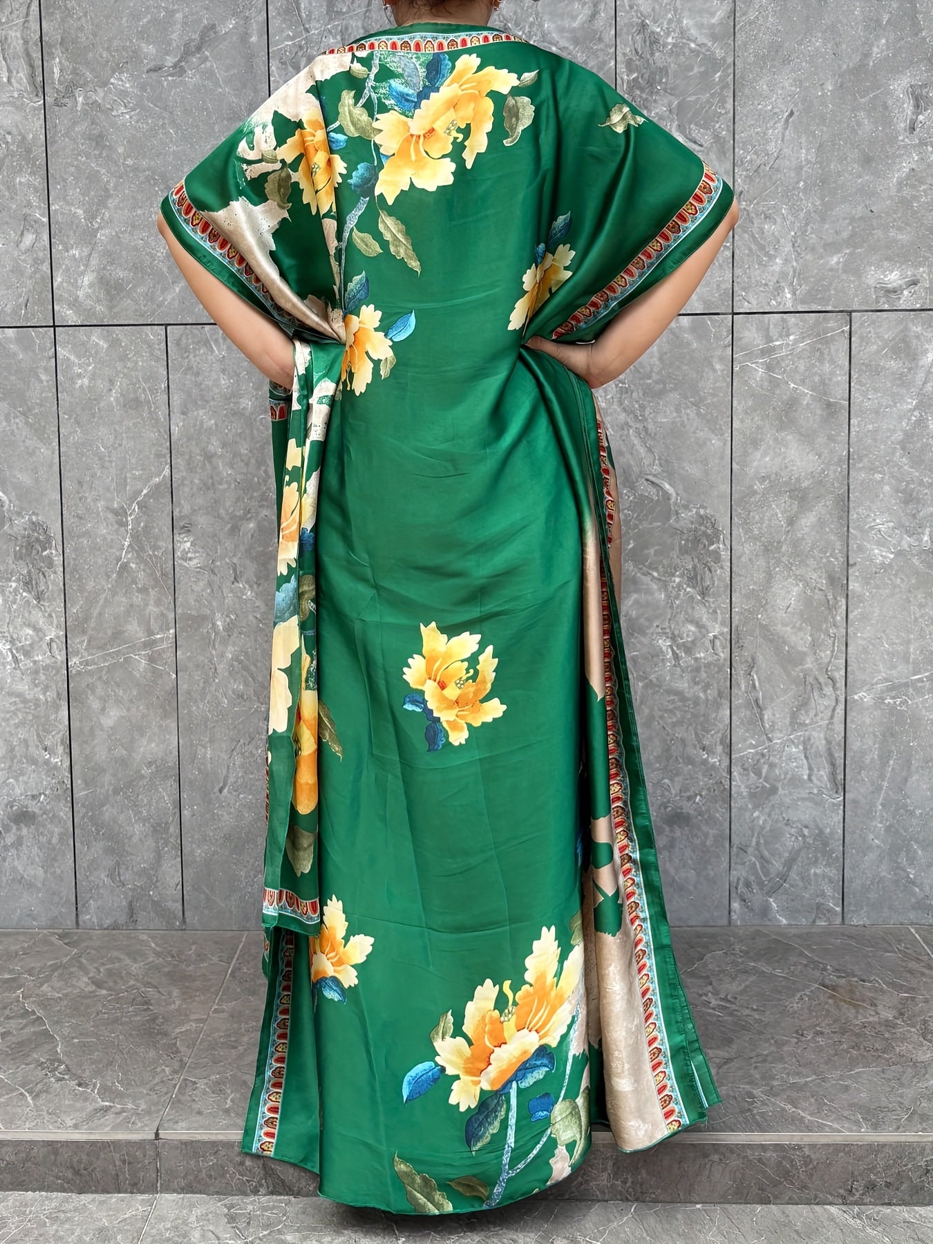 Plus o'lchamli maxi kaftan kiyi gullar bilan bosilgan, oqimli va qulay ayollar uchun