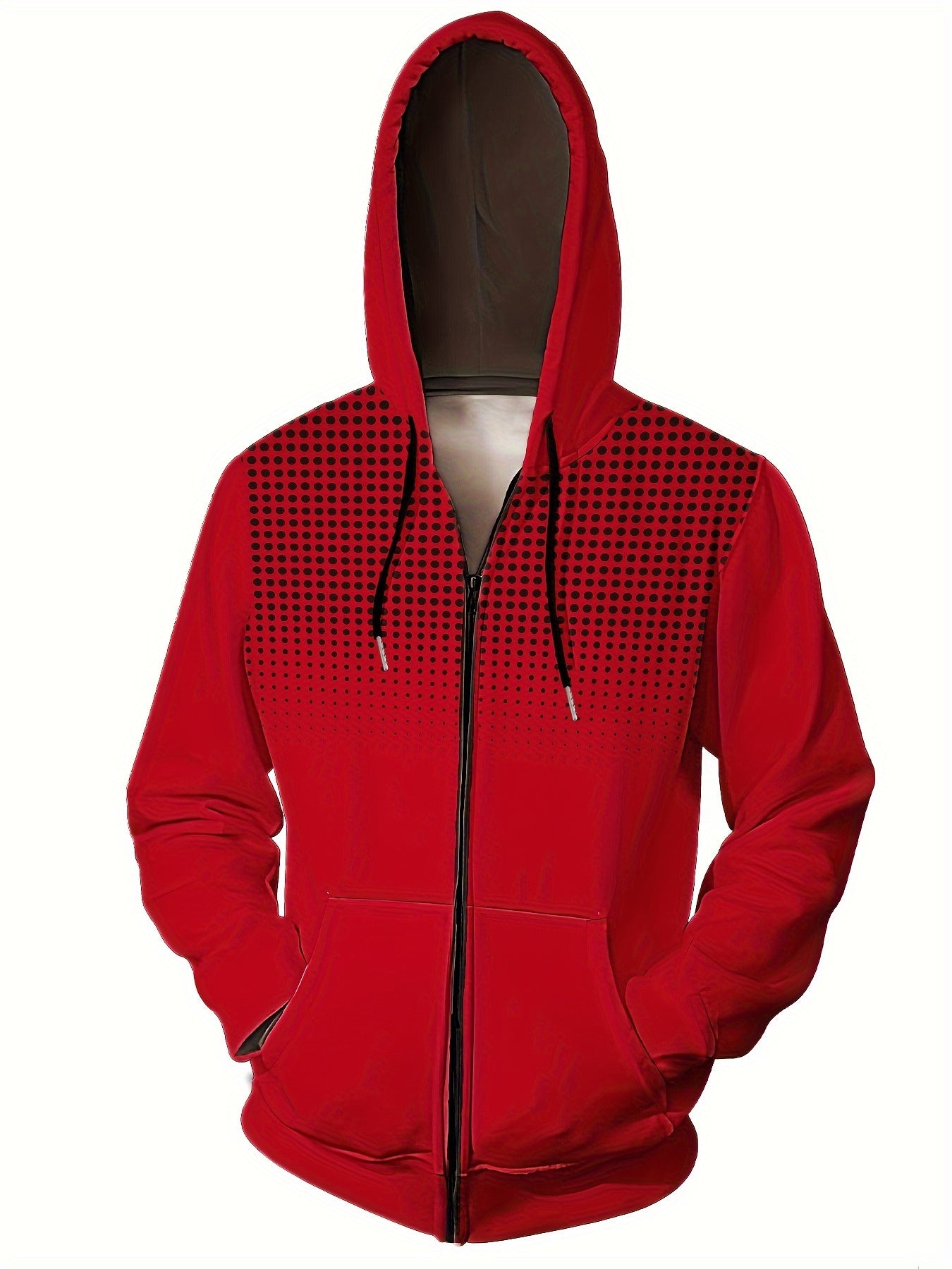Katta o'lchamdagi erkaklar uchun tasodifiy zip-up xuddi 3D nuqta bosma - bahor va kuz uchun zamonaviy kurtka, cho'ntaklar bilan