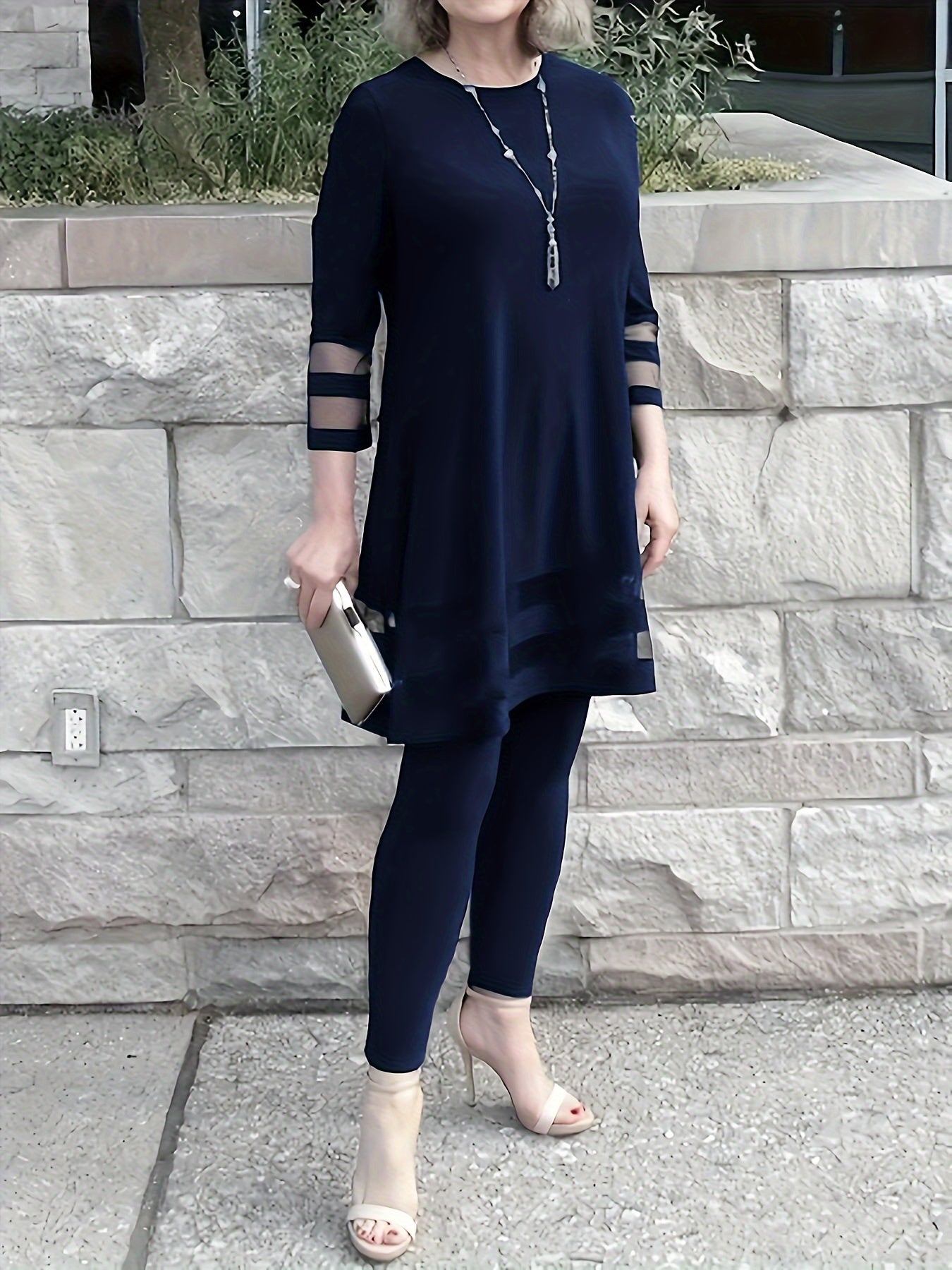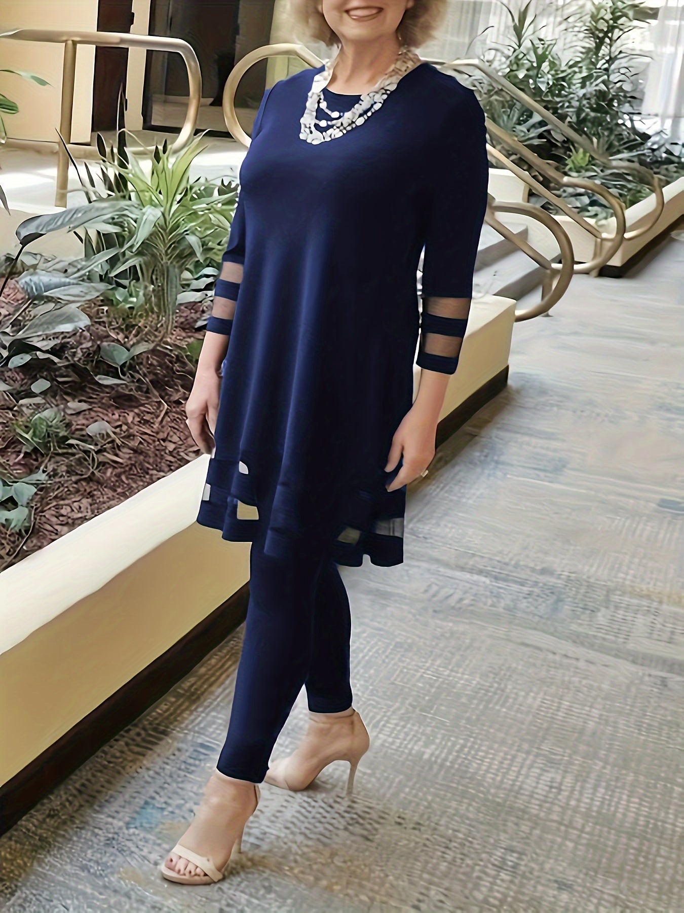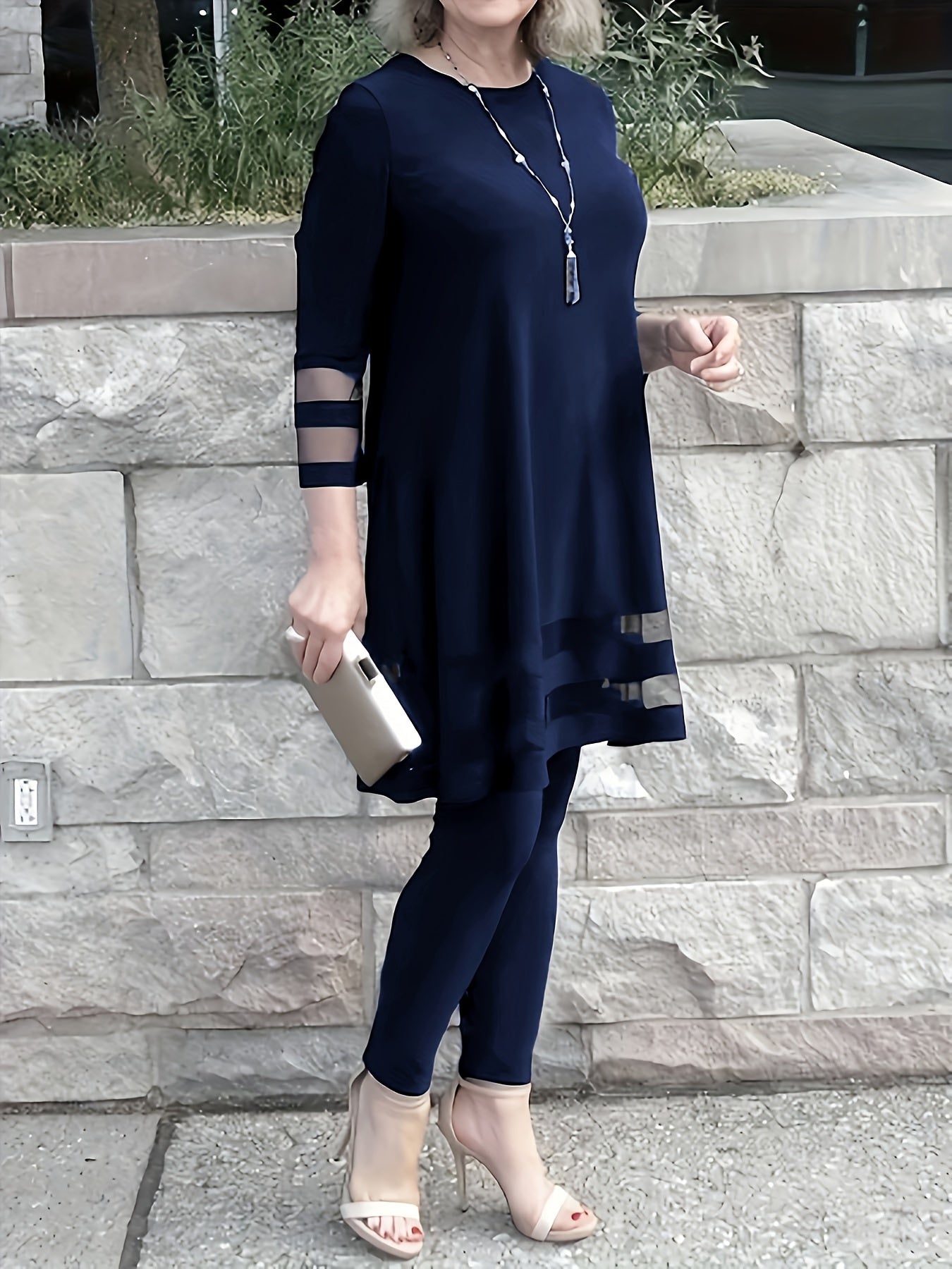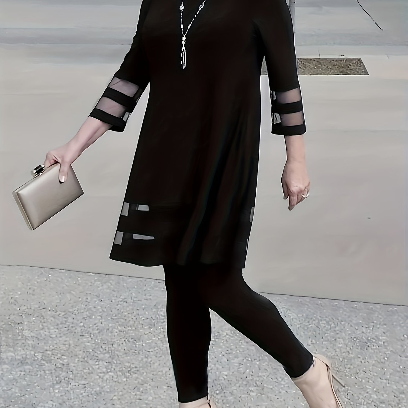 Katta o'lchamdagi mesh ikki qismli to'plam, crew neck bluzka va shimlar, ayollar uchun katta o'lchamdagi kiyimlar