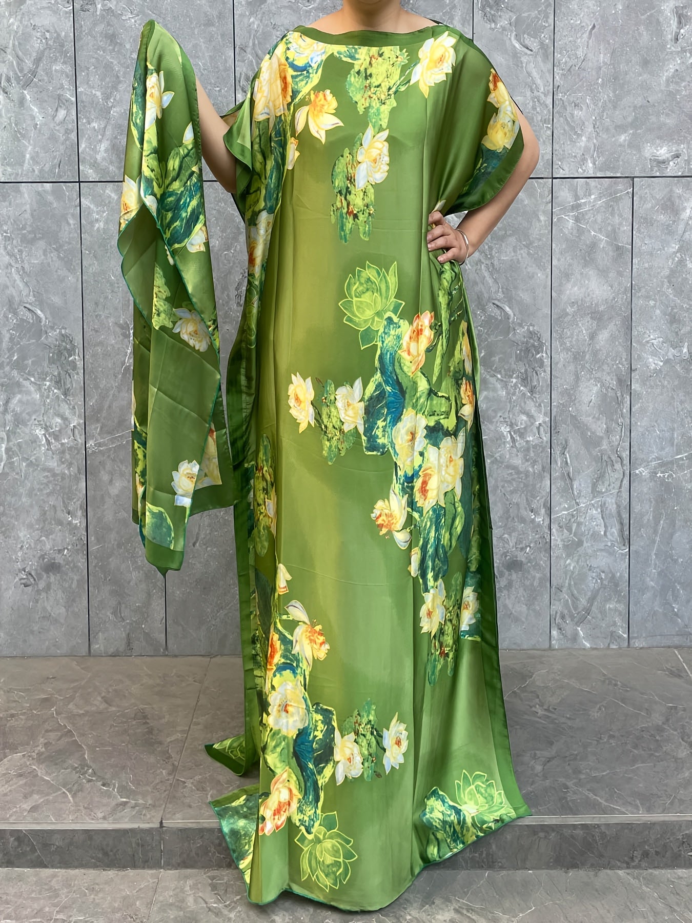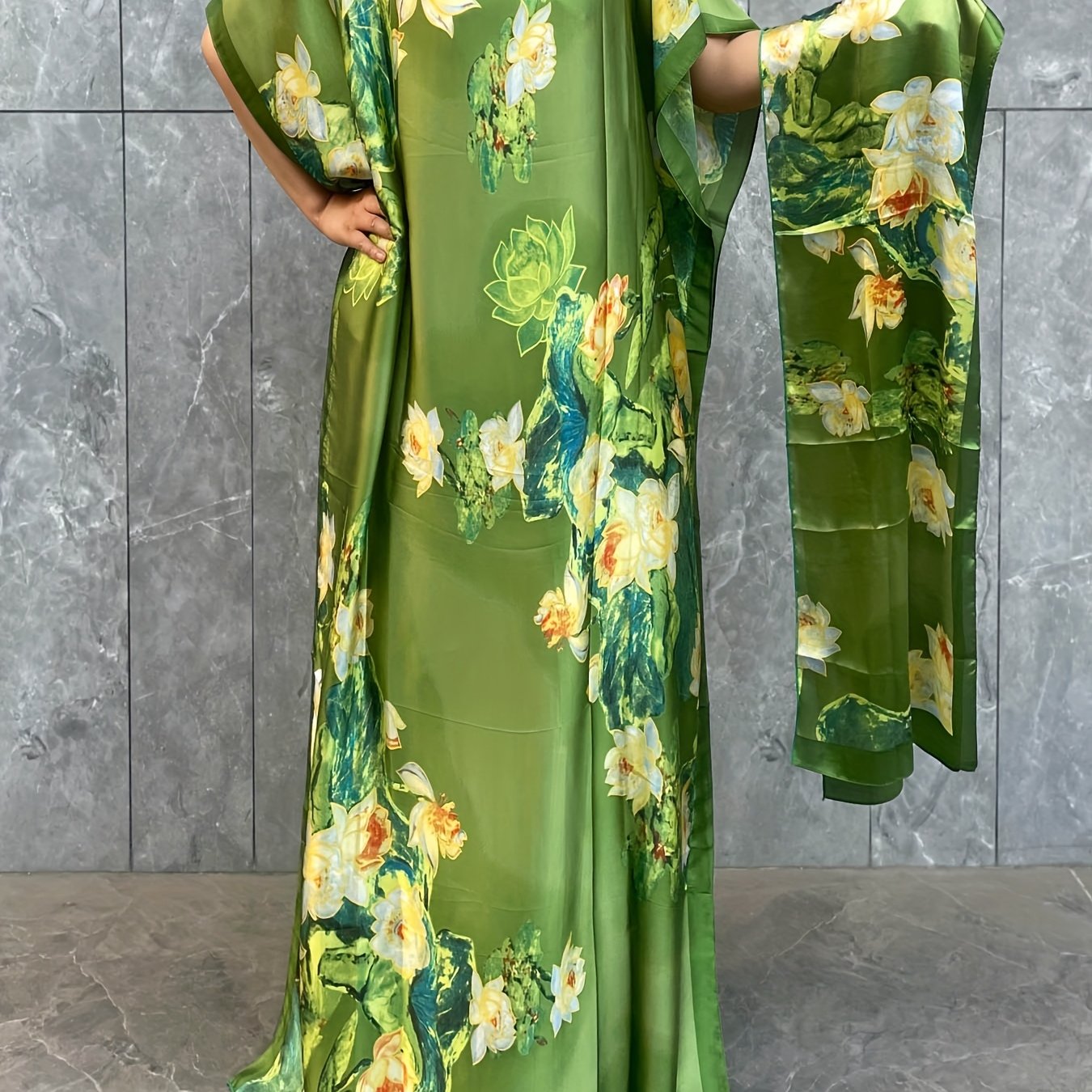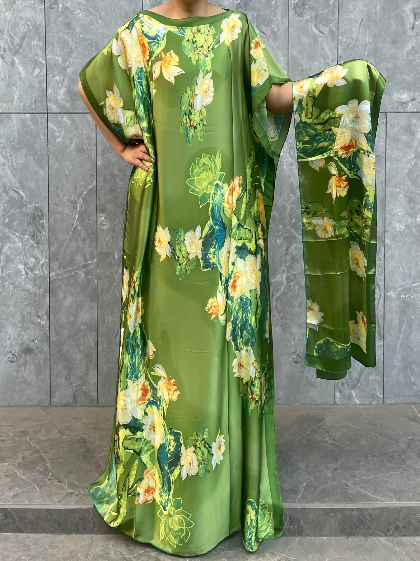 Plus o'lchamli O'rta Sharq an'anaviy kiyimlari gul bilan maxi kiyingan boshbog'li