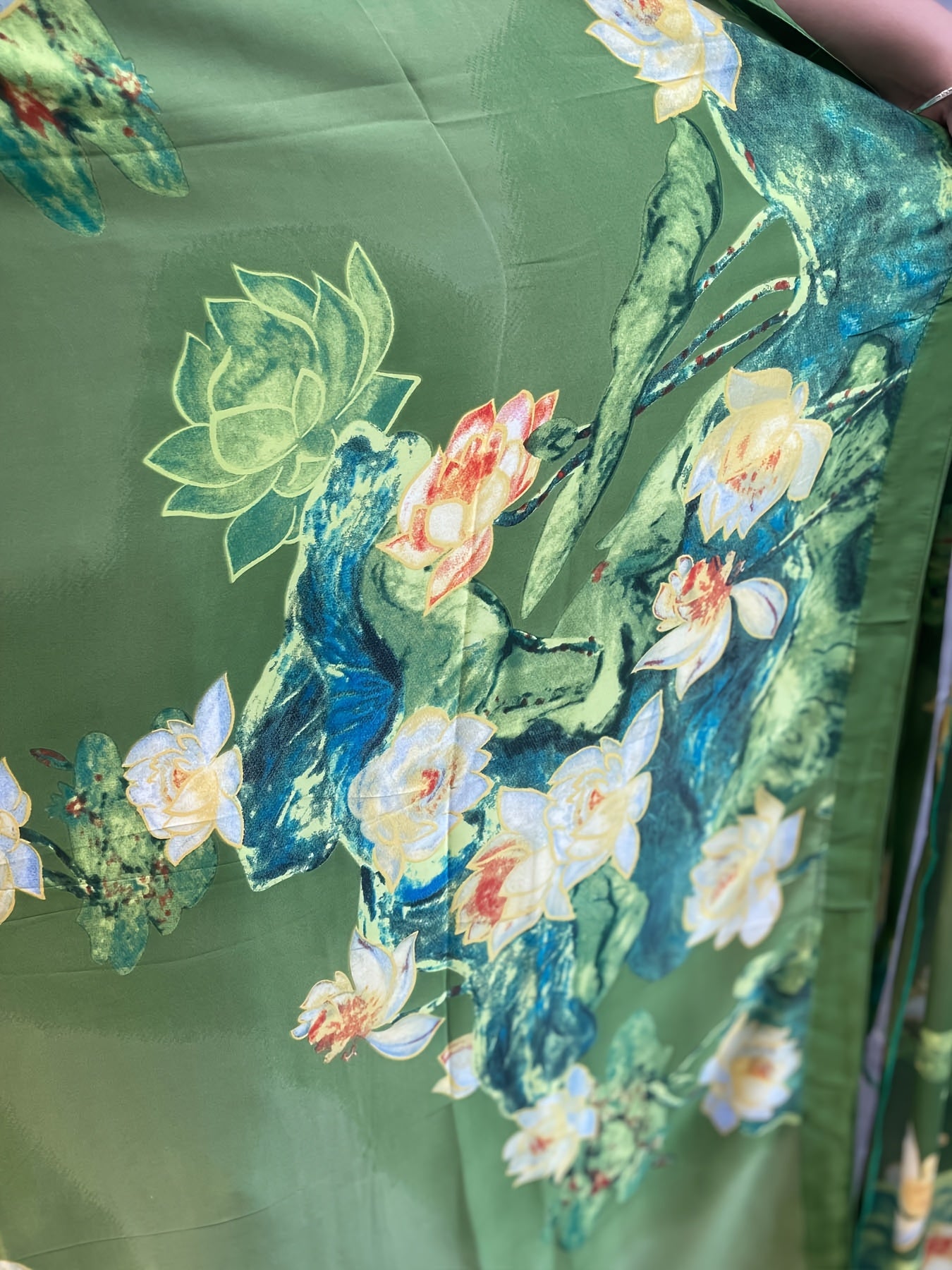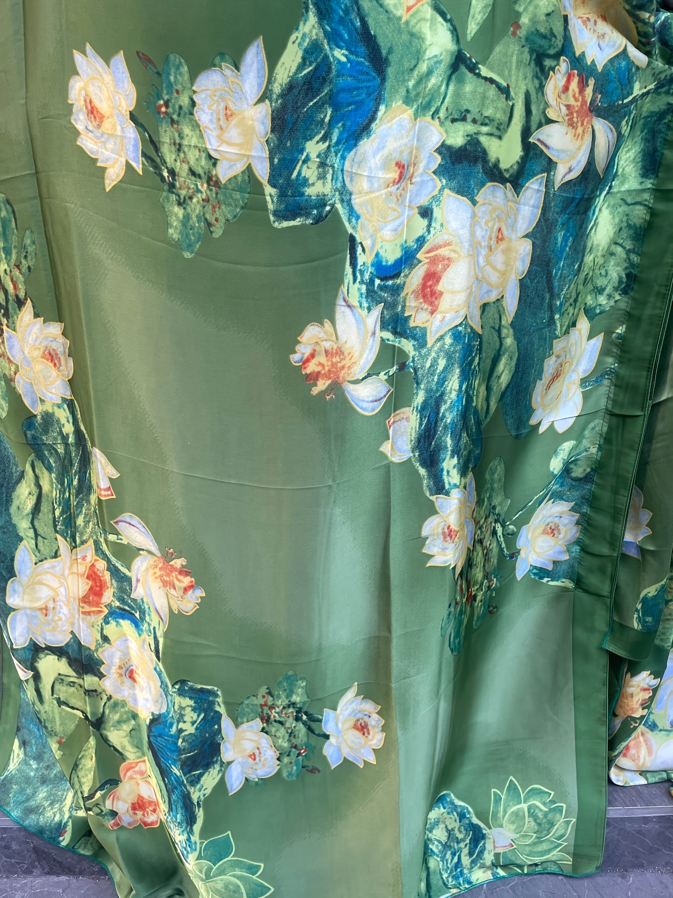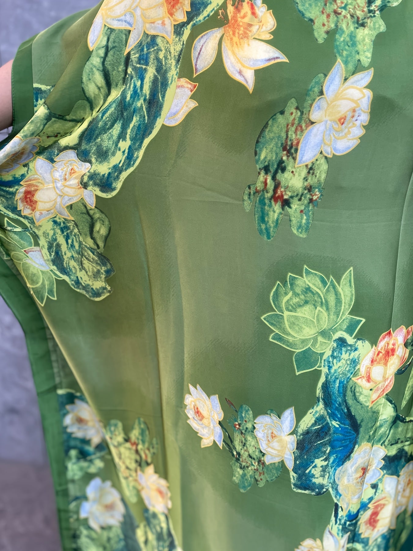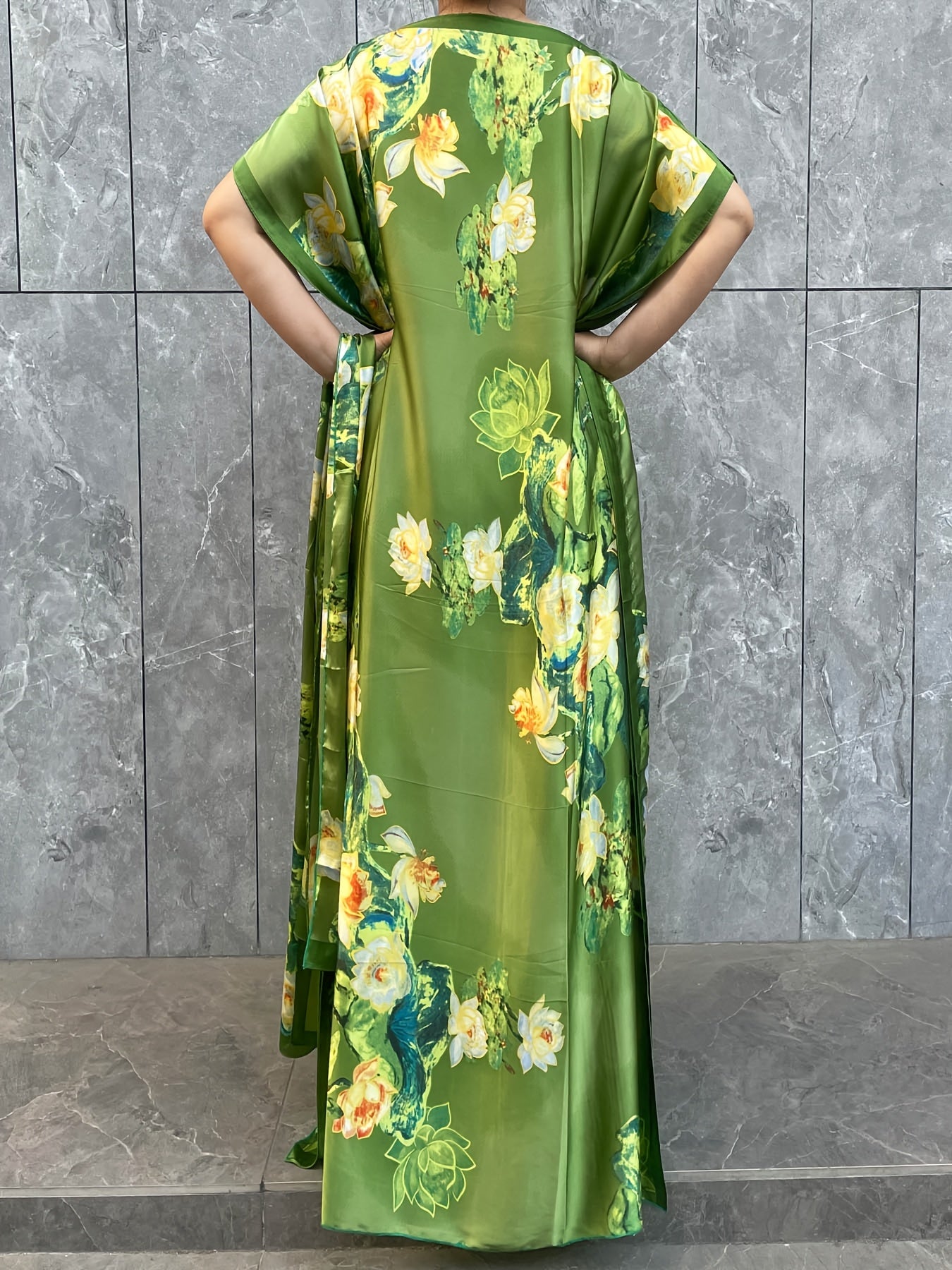 Plus o'lchamli O'rta Sharq an'anaviy kiyimlari gul bilan maxi kiyingan boshbog'li