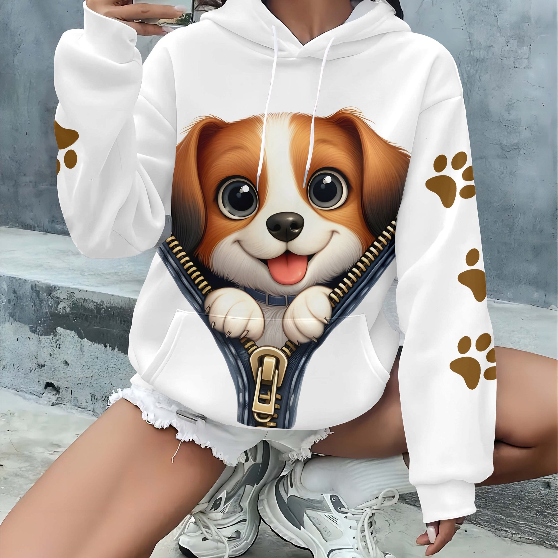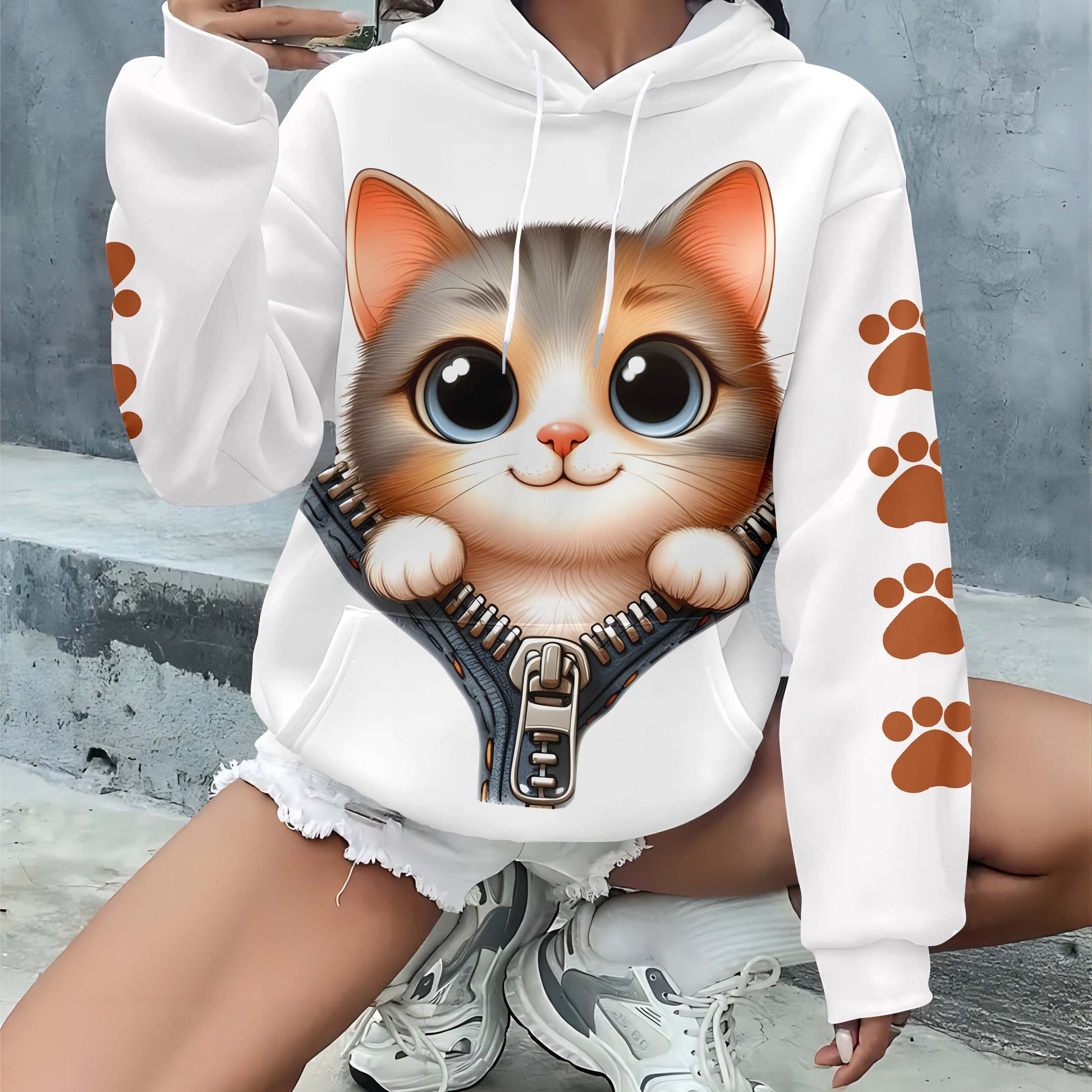 Plus o'lcham Panda bosma chiziqli kapşonli, kundalik uzun qo'l kiyimi, kuz-qish uchun ayollar