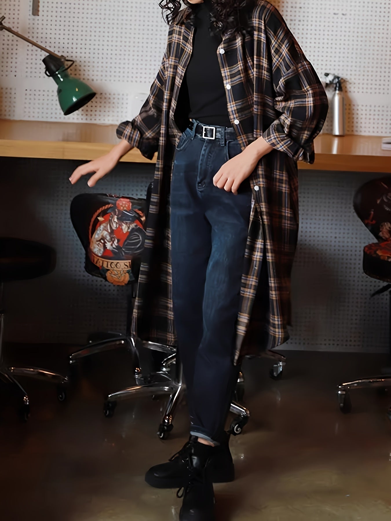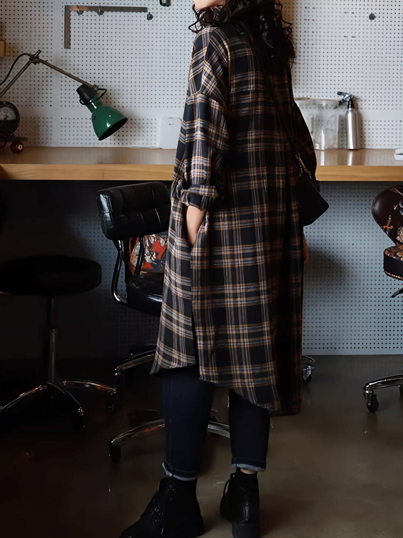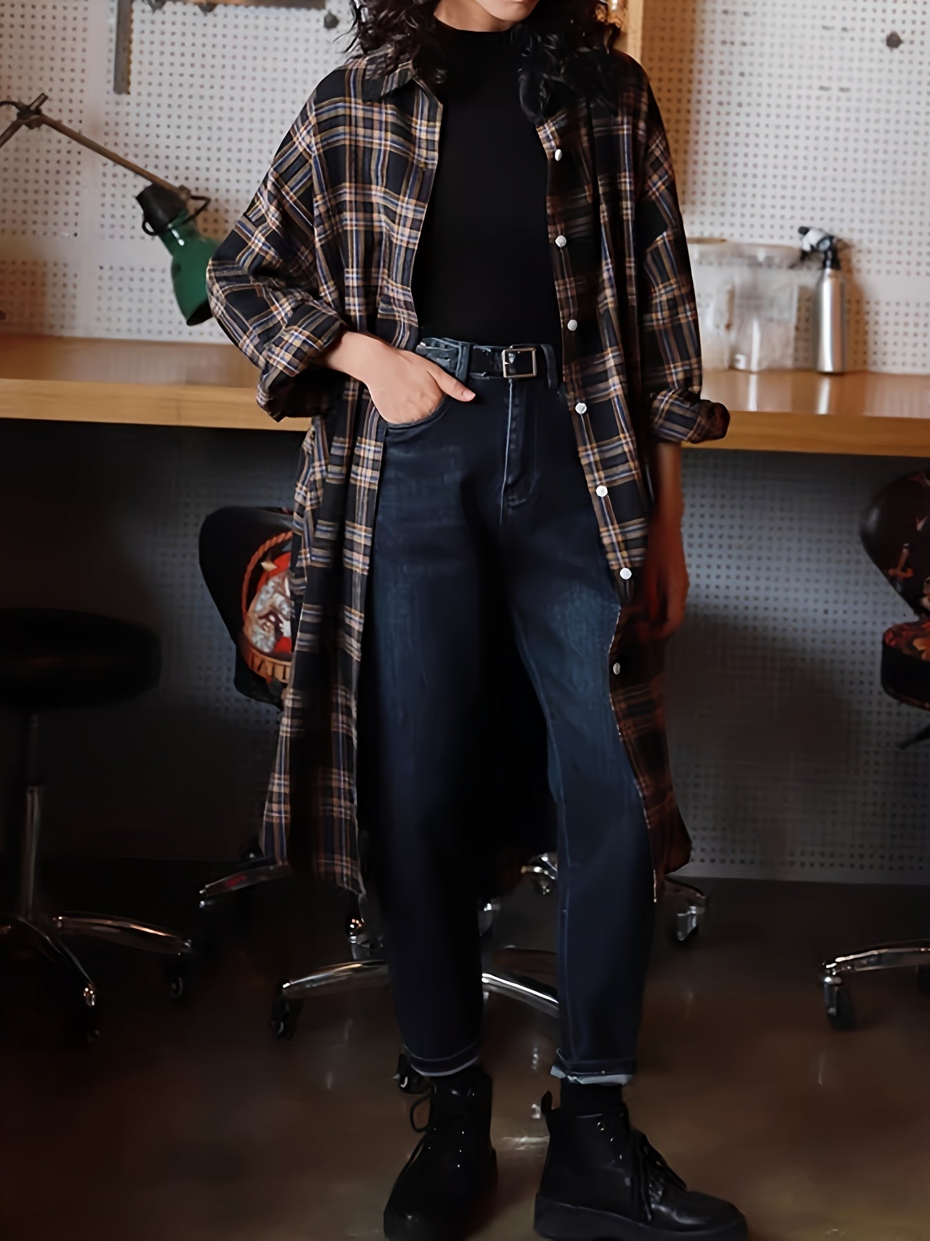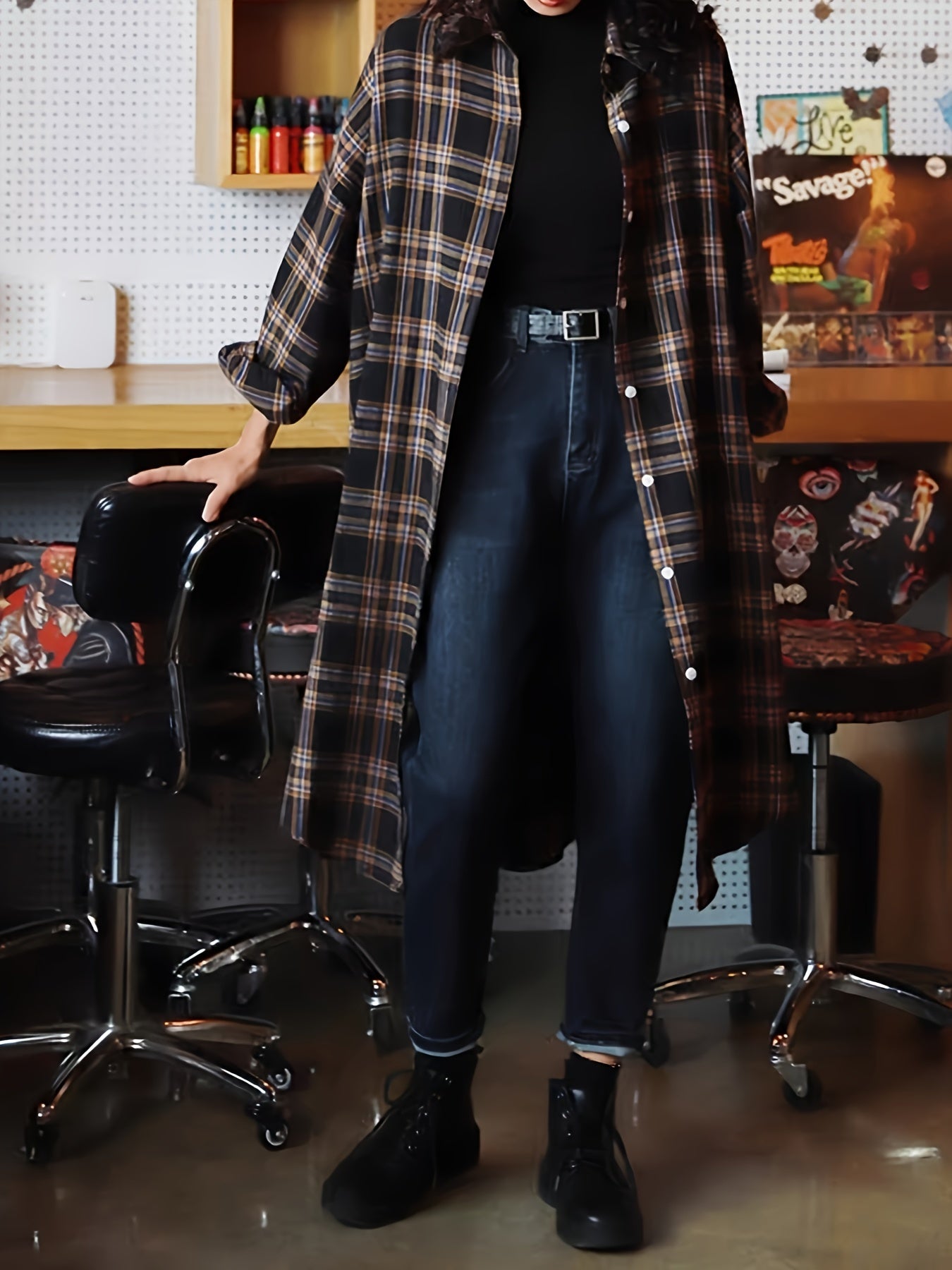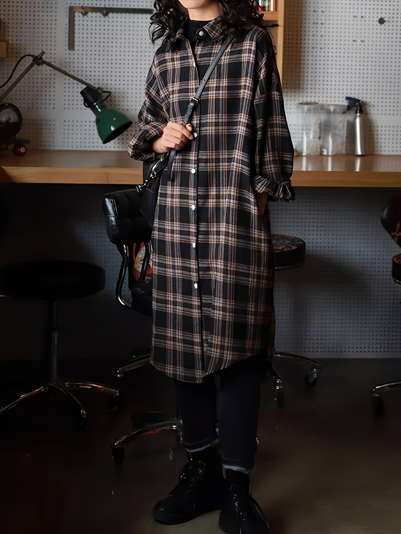 Plus o'lchamli tekislangan bosma bluz uzun qo'lqopli lapel bo'yinli bahor va kuz ayollar kiyimlari