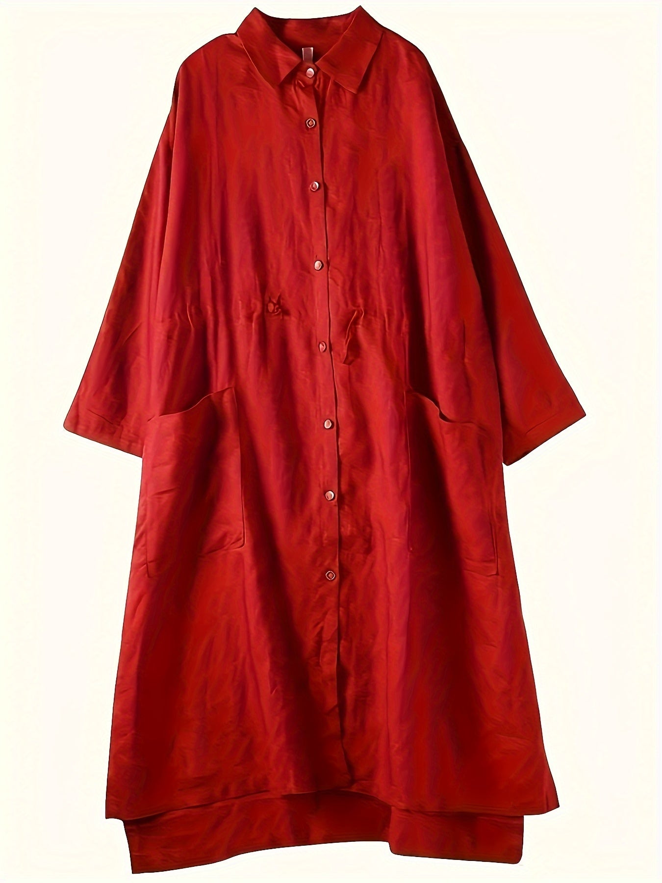 Ayollar uchun tugma tafsilotlari bilan qizil lenin ko'ylak