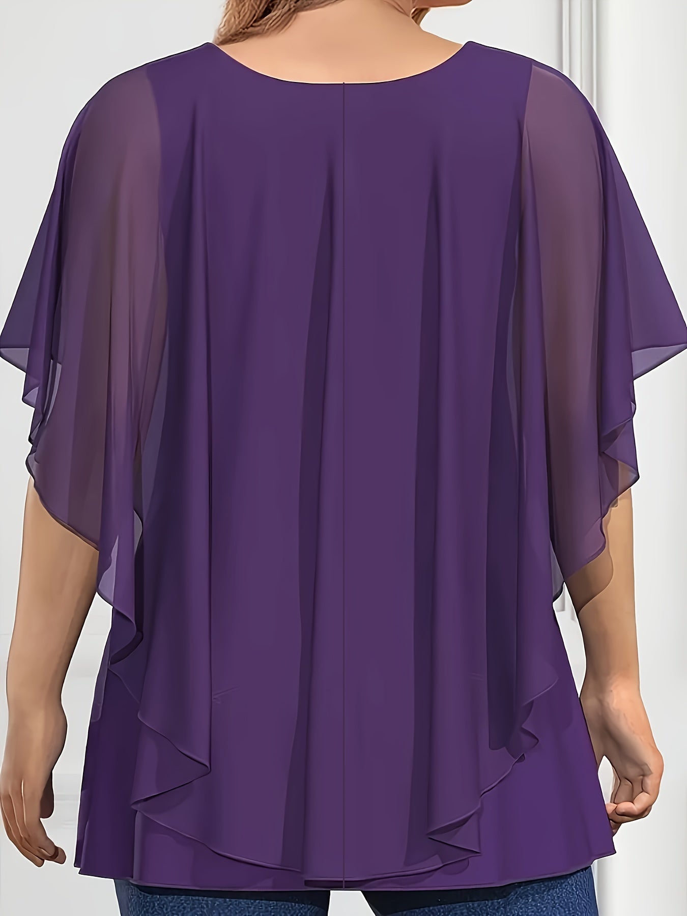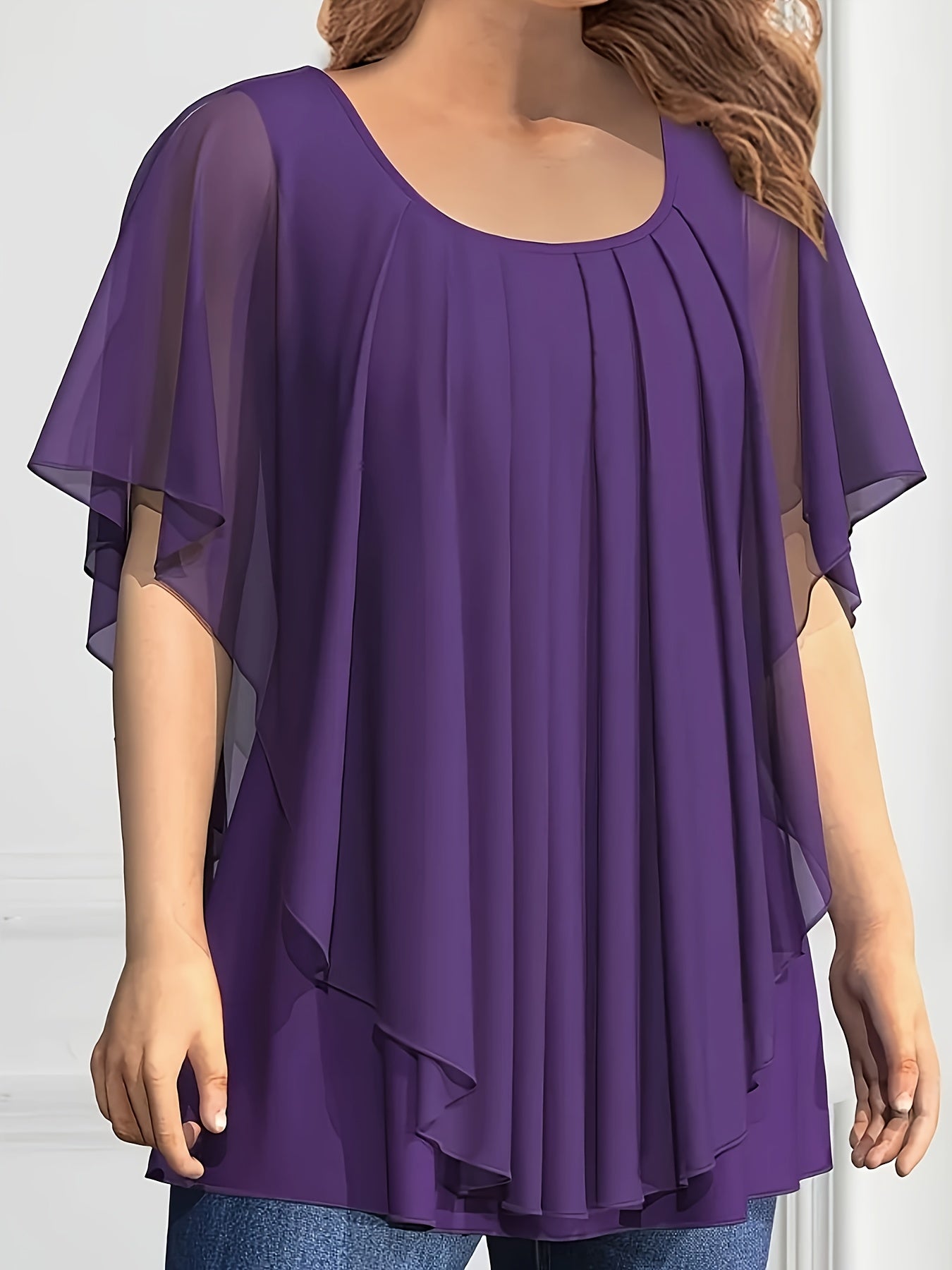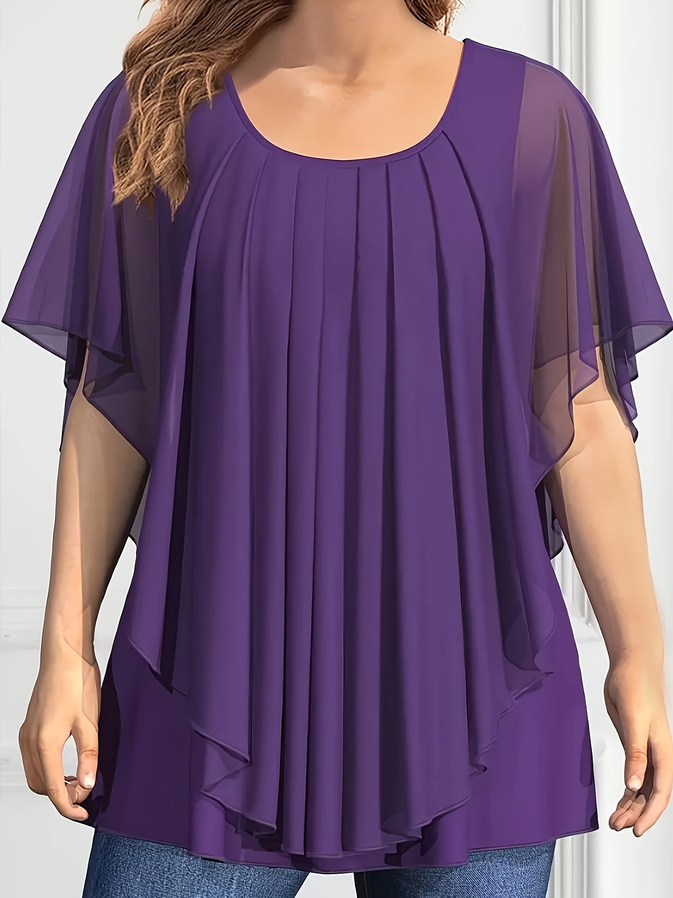 Plus o'lchamli bukilgan qisqa qo'lli bluz, kundalik krujka bo'yinli yozgi ayollar kiyimlari
