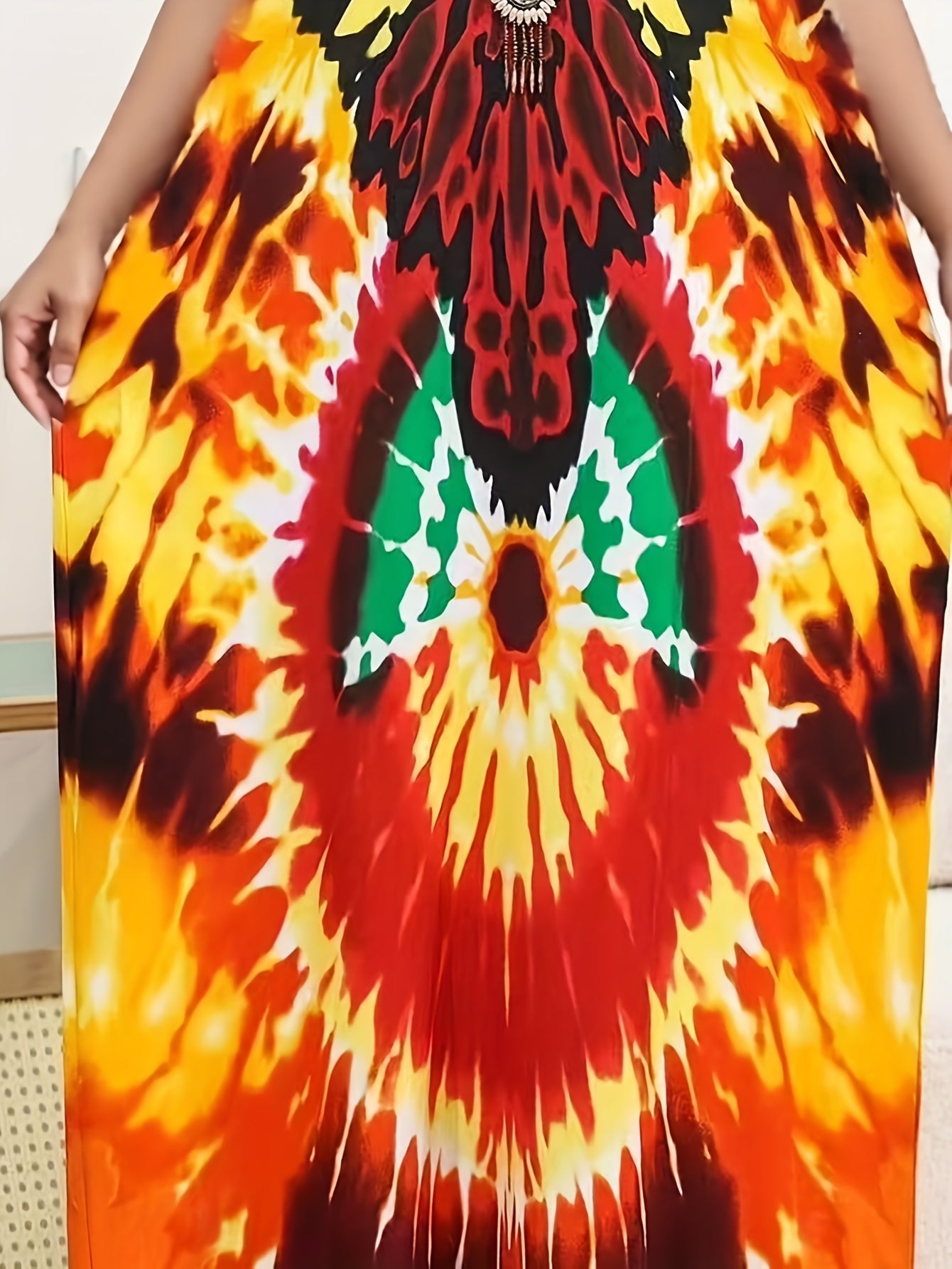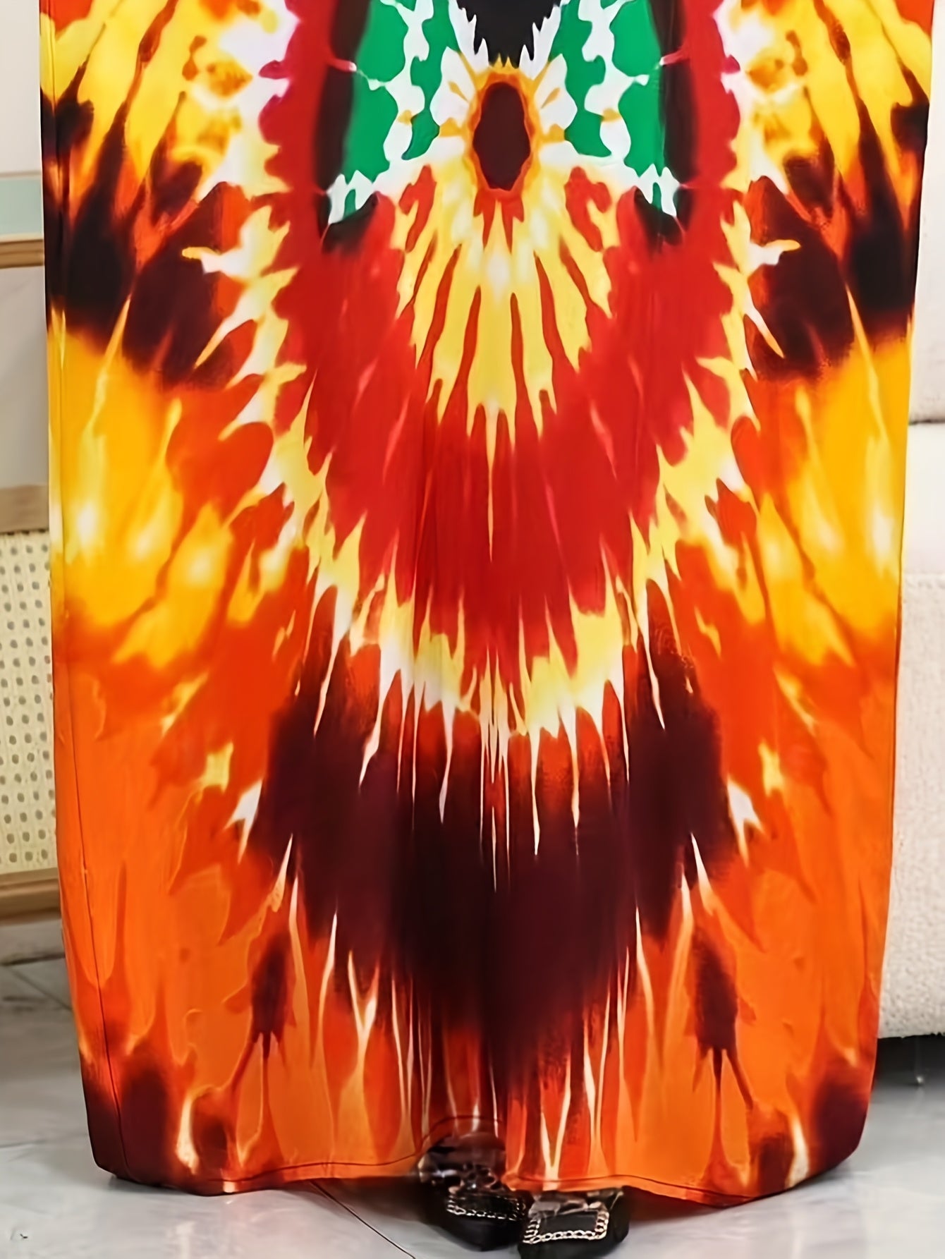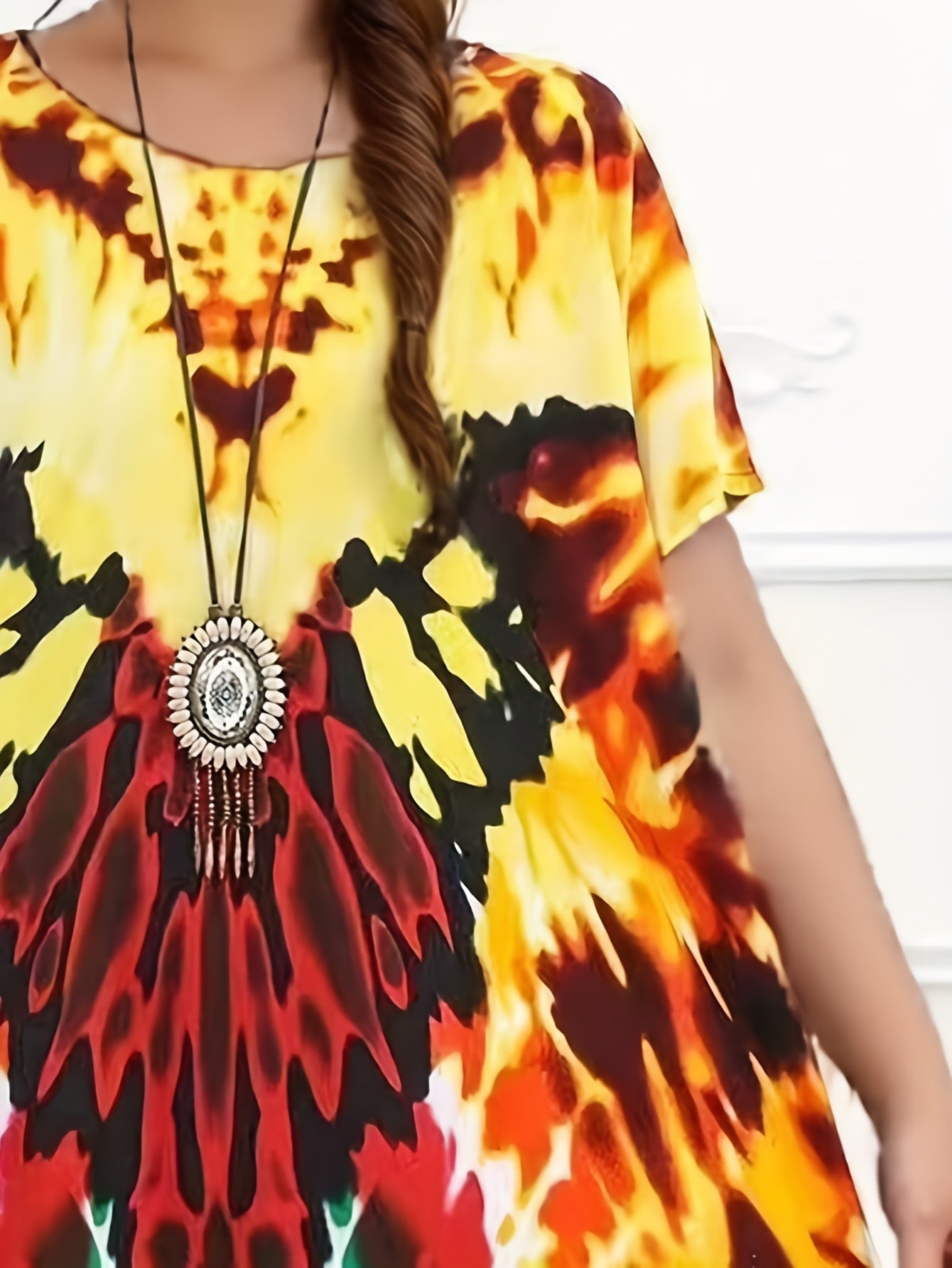 Plus Size Summer Round Neck Print Short Sleeve Dress Casual Beach Cover-Up