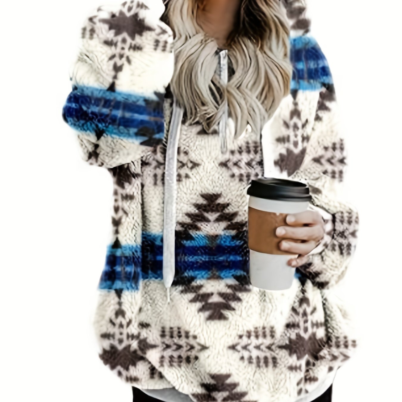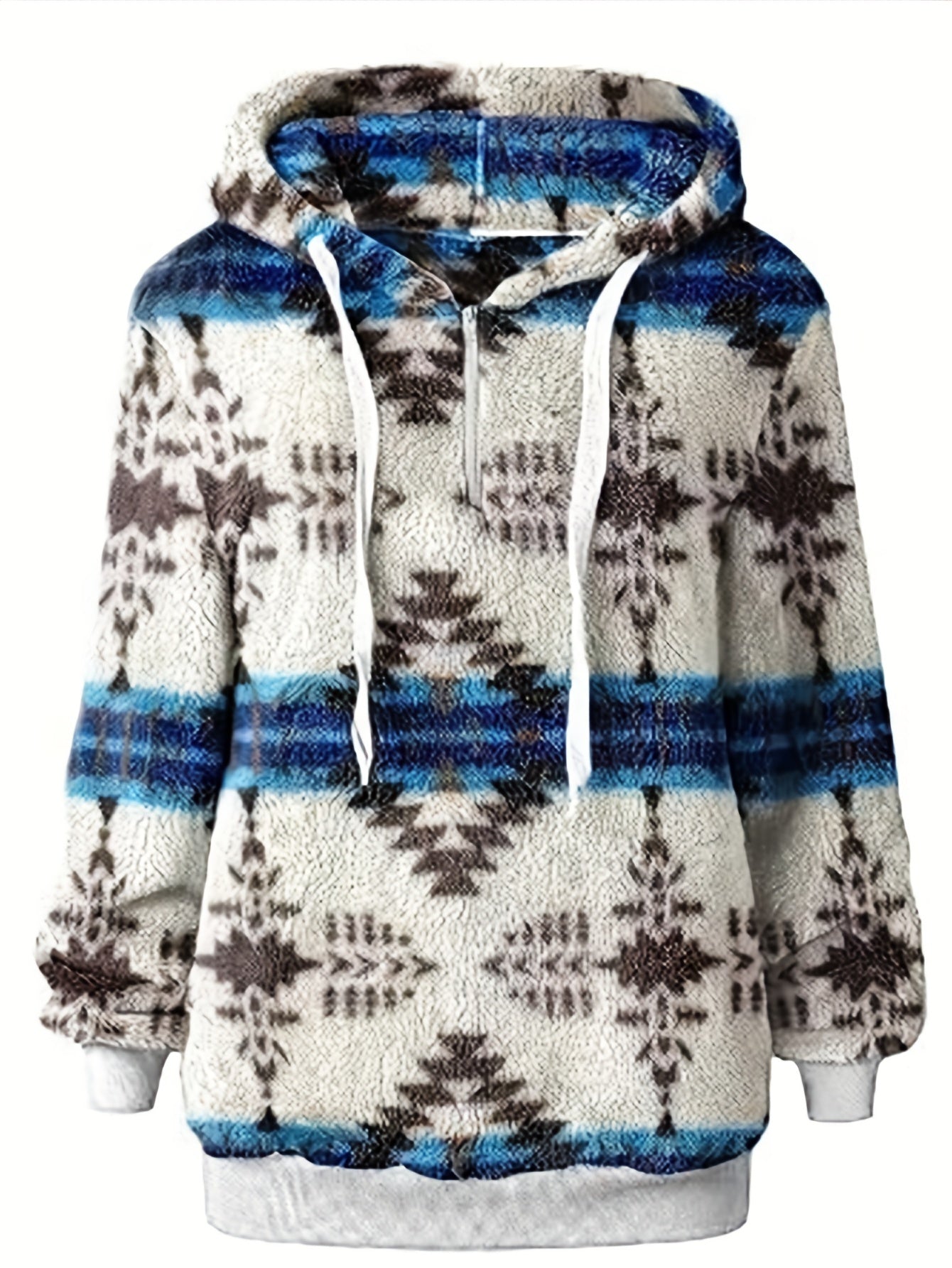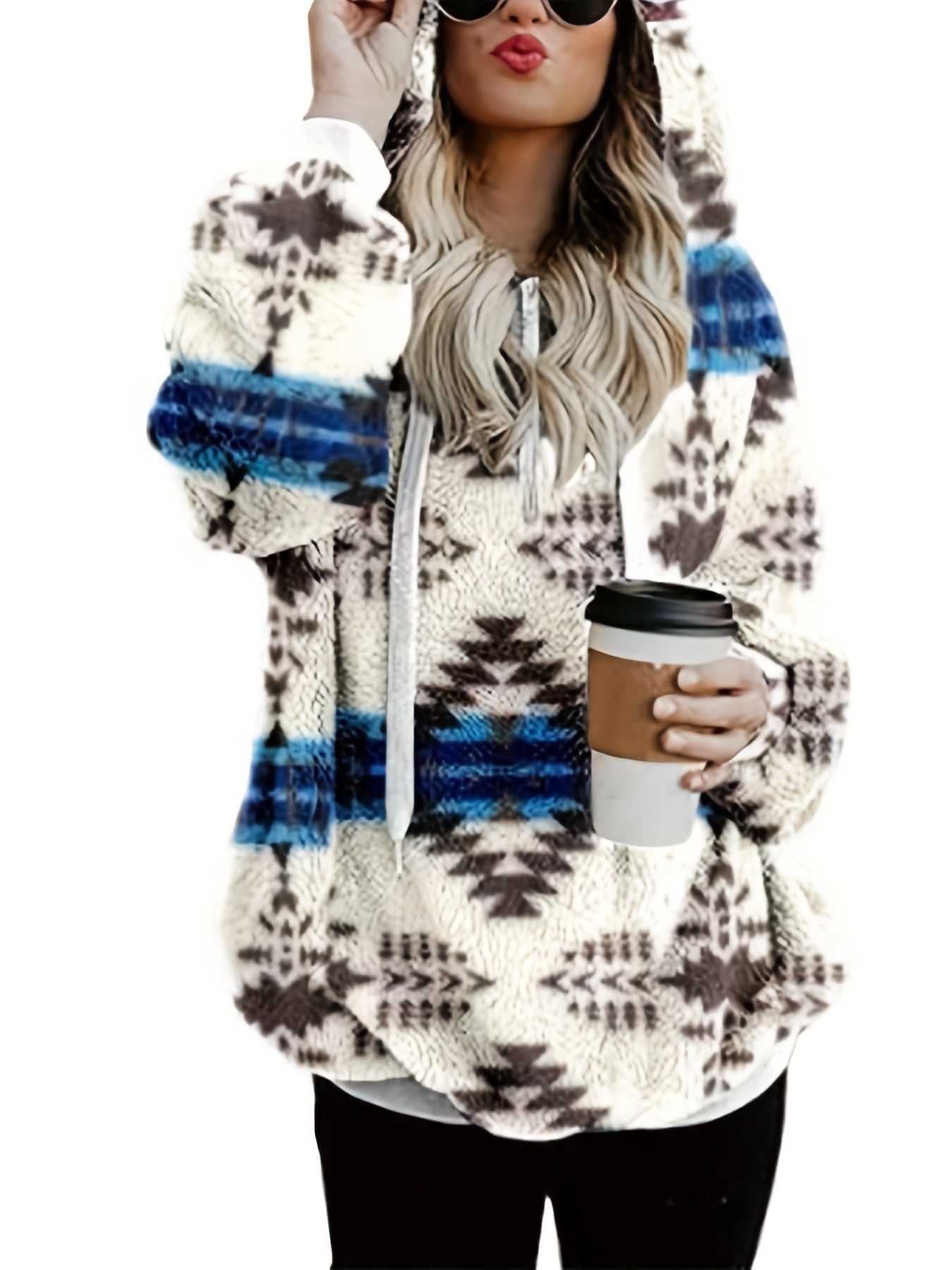 Plus o'lcham ayollar uchun boho kofta, Aztec bosma uzun qo'lqopli, chiziqli, issiq, qalin shiltak