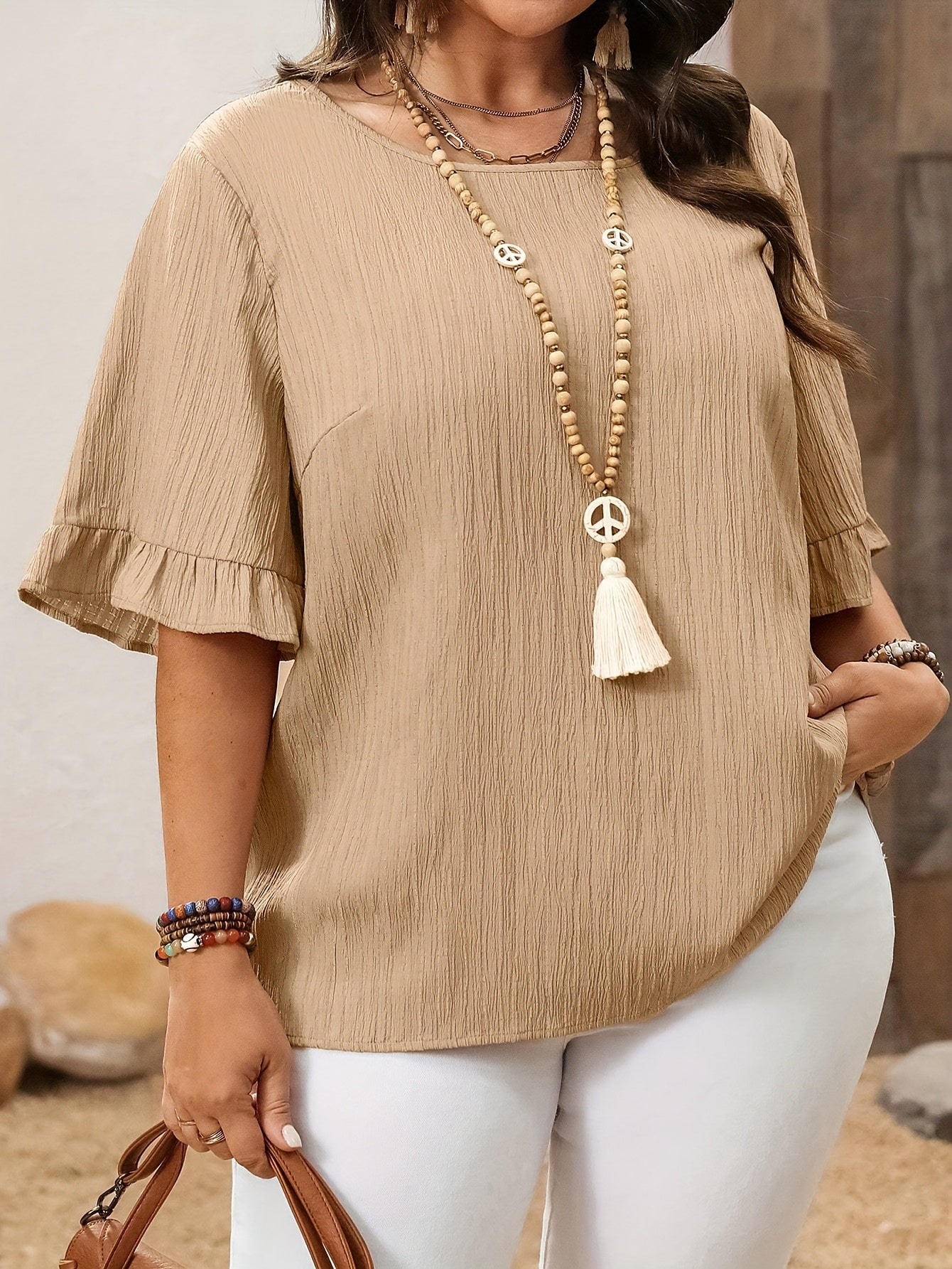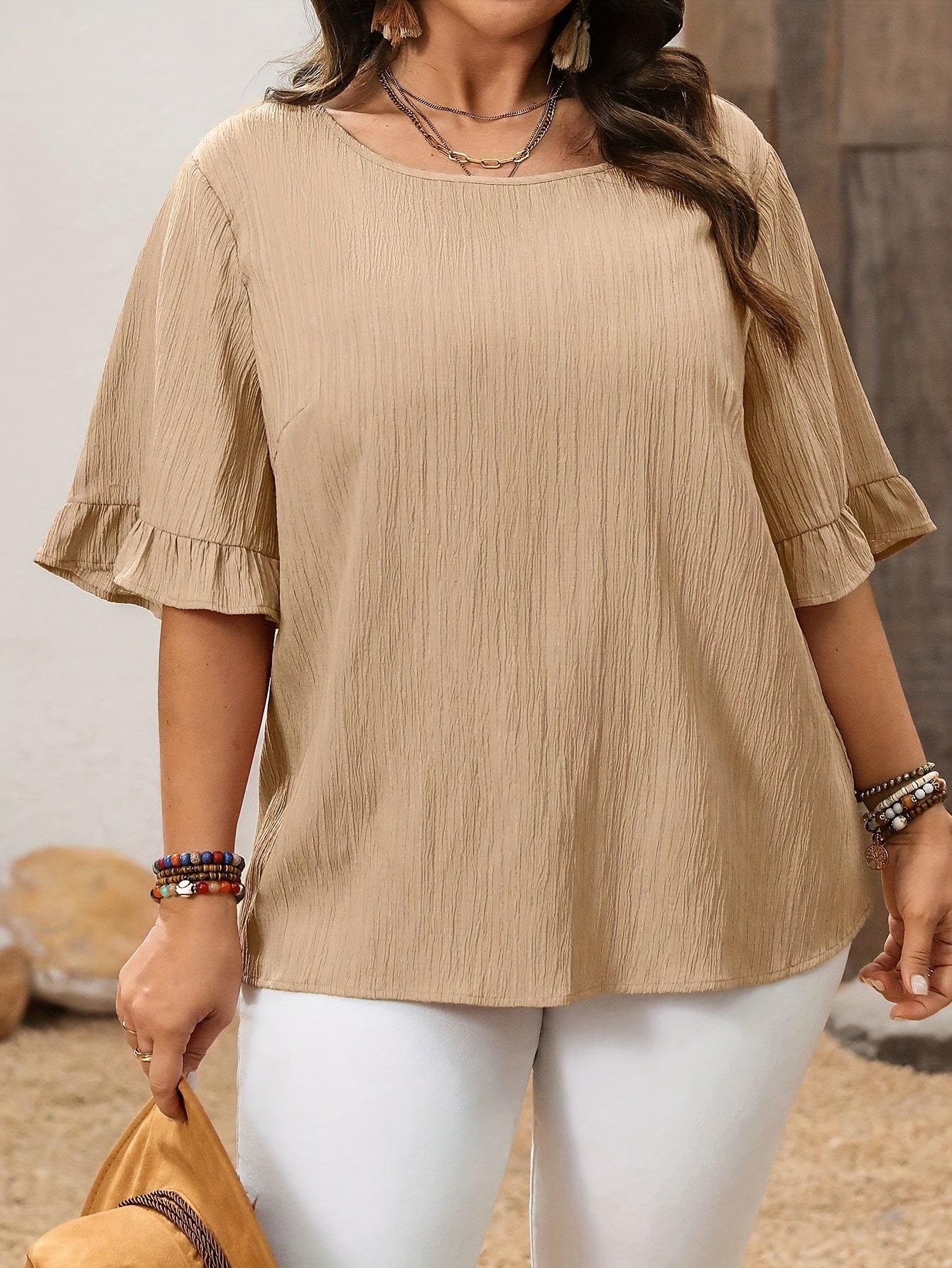 Plus o'lcham ayollar uchun kundalik kofta, qisqa qo'l, yengil, bir xil rangli top