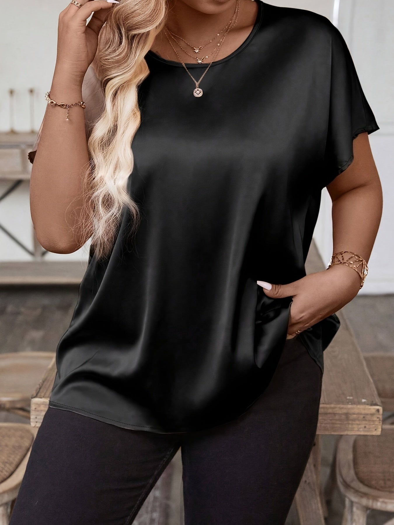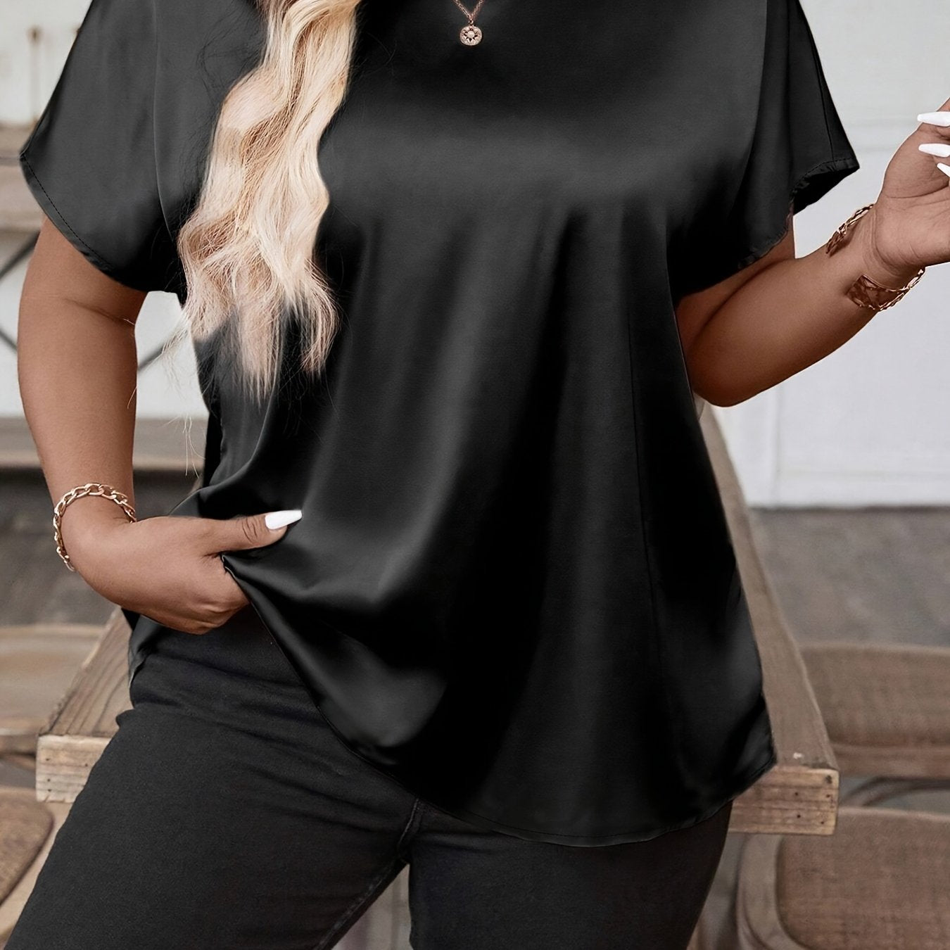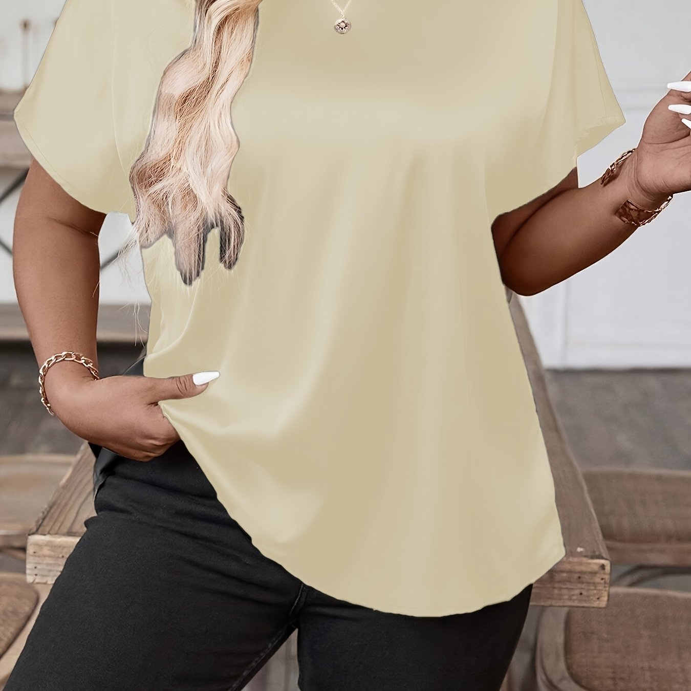 Plus o'lcham ayollar uchun kundalik to'qilgan qisqa qo'lli kofta, bir rangli yozgi kiyim