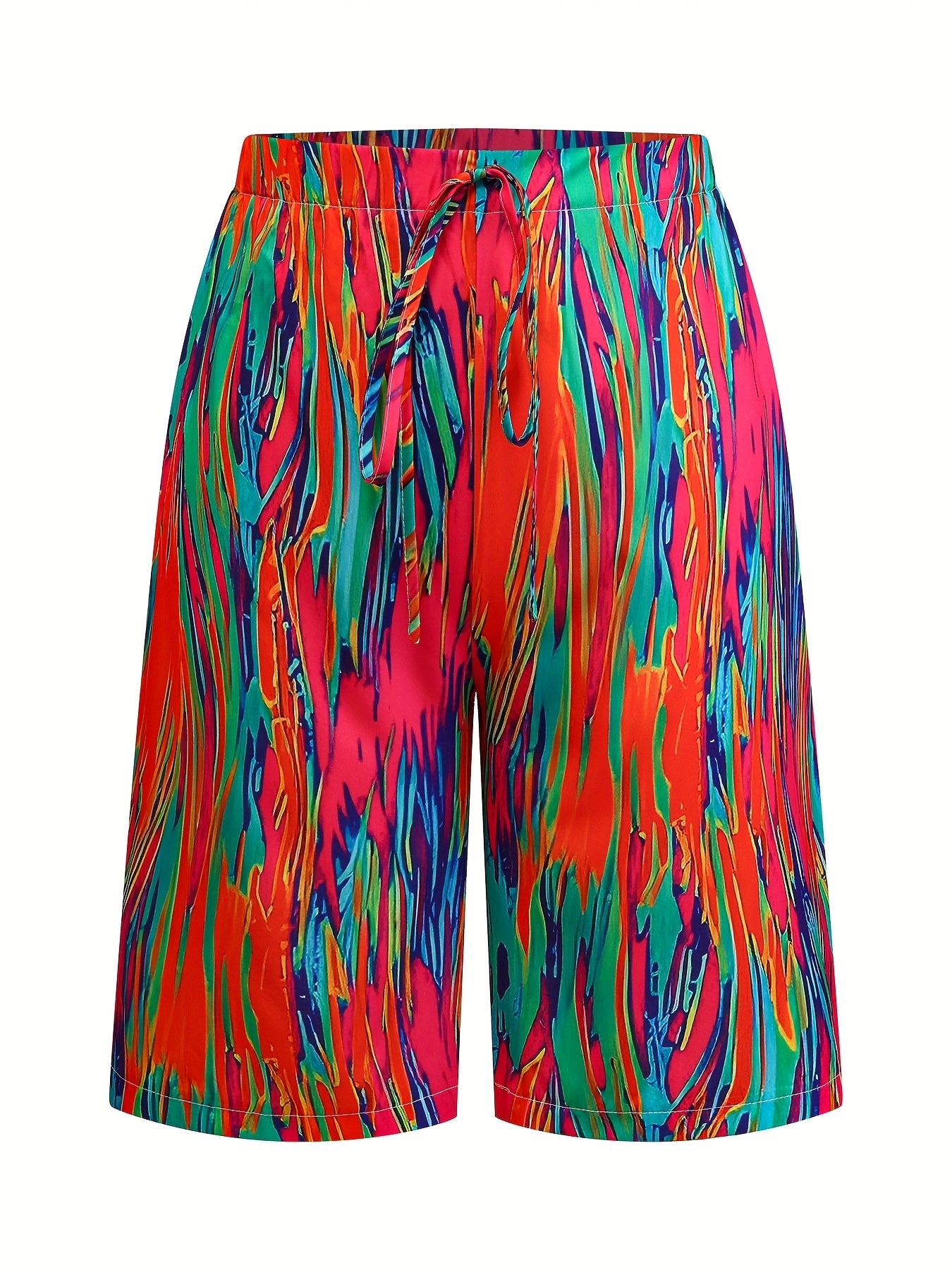 Plus o'lcham ayollar uchun rangli blokli tie-dye Bermuda shortlari yengil yozki kundalik