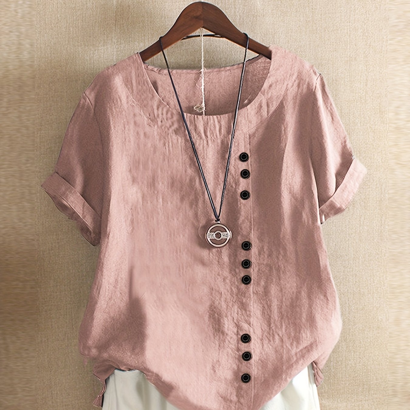 Plus o'lchamdagi ayollar uchun paxta keng bo'yinli qisqa qo'lli futbolka, bir rangda