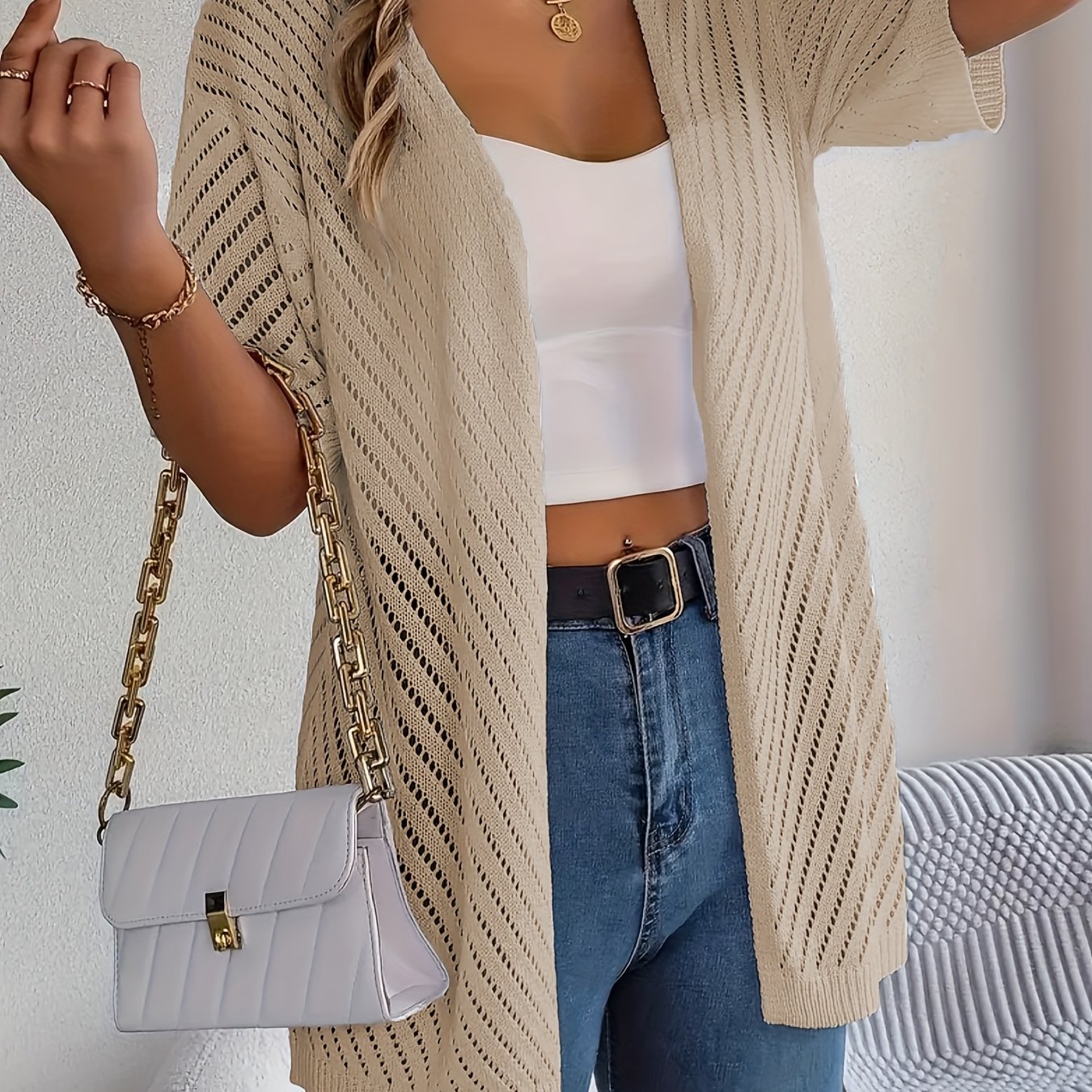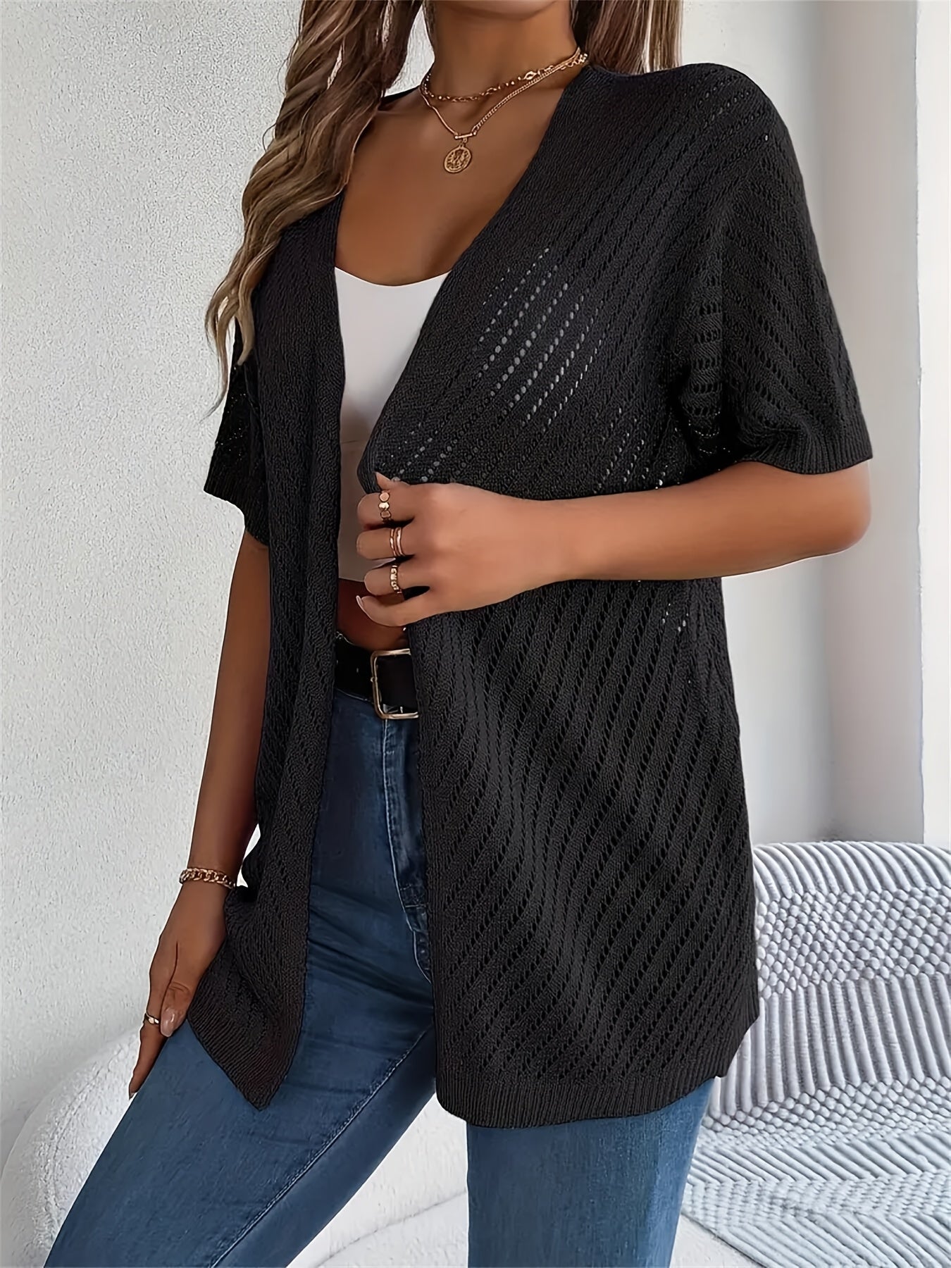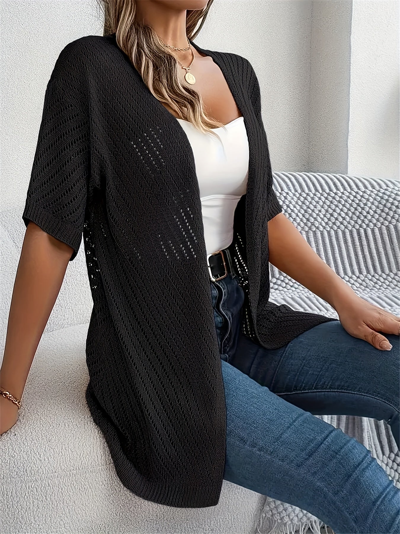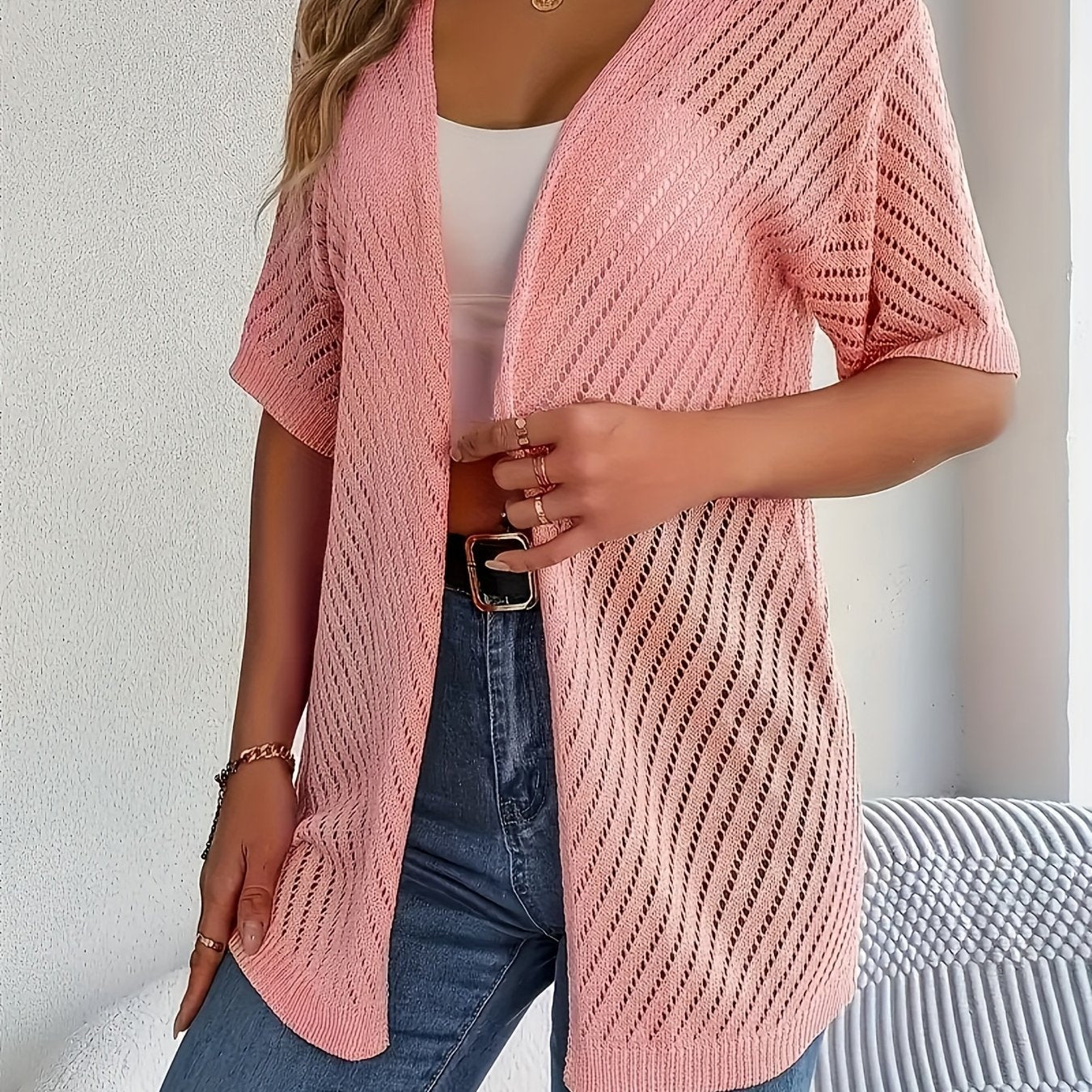 Plus o'lcham ayollar uchun krochet kardigan yengil nafas oladigan qisqa yengli bir rangli bahor yoz