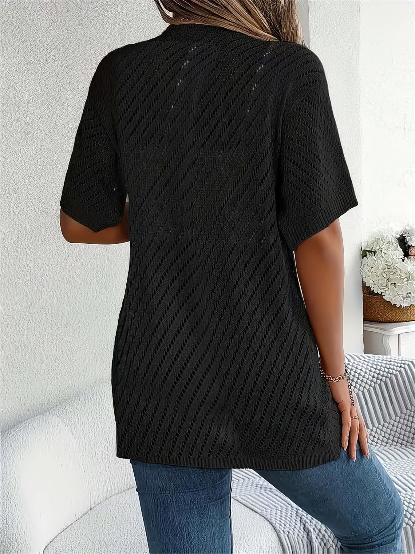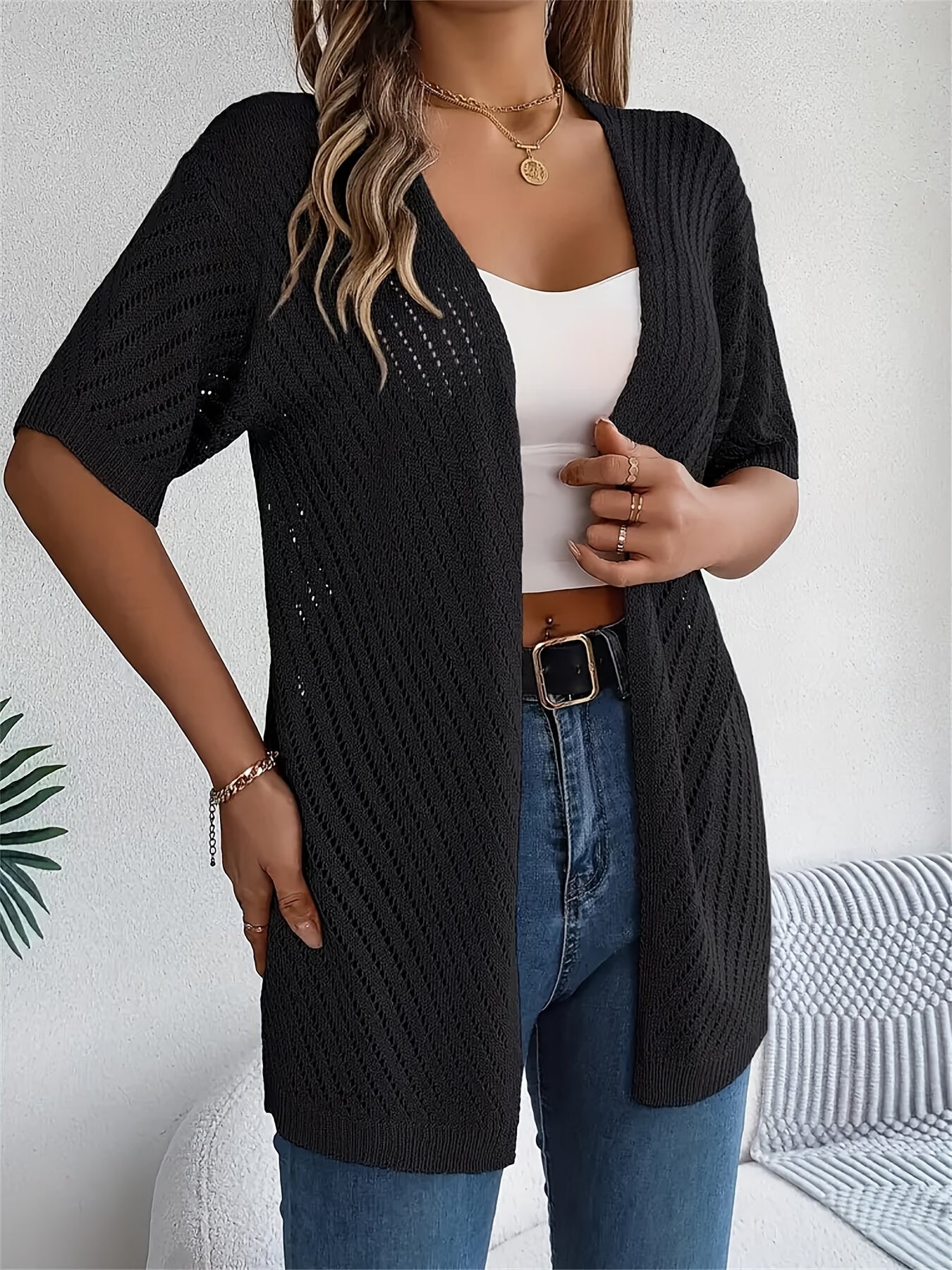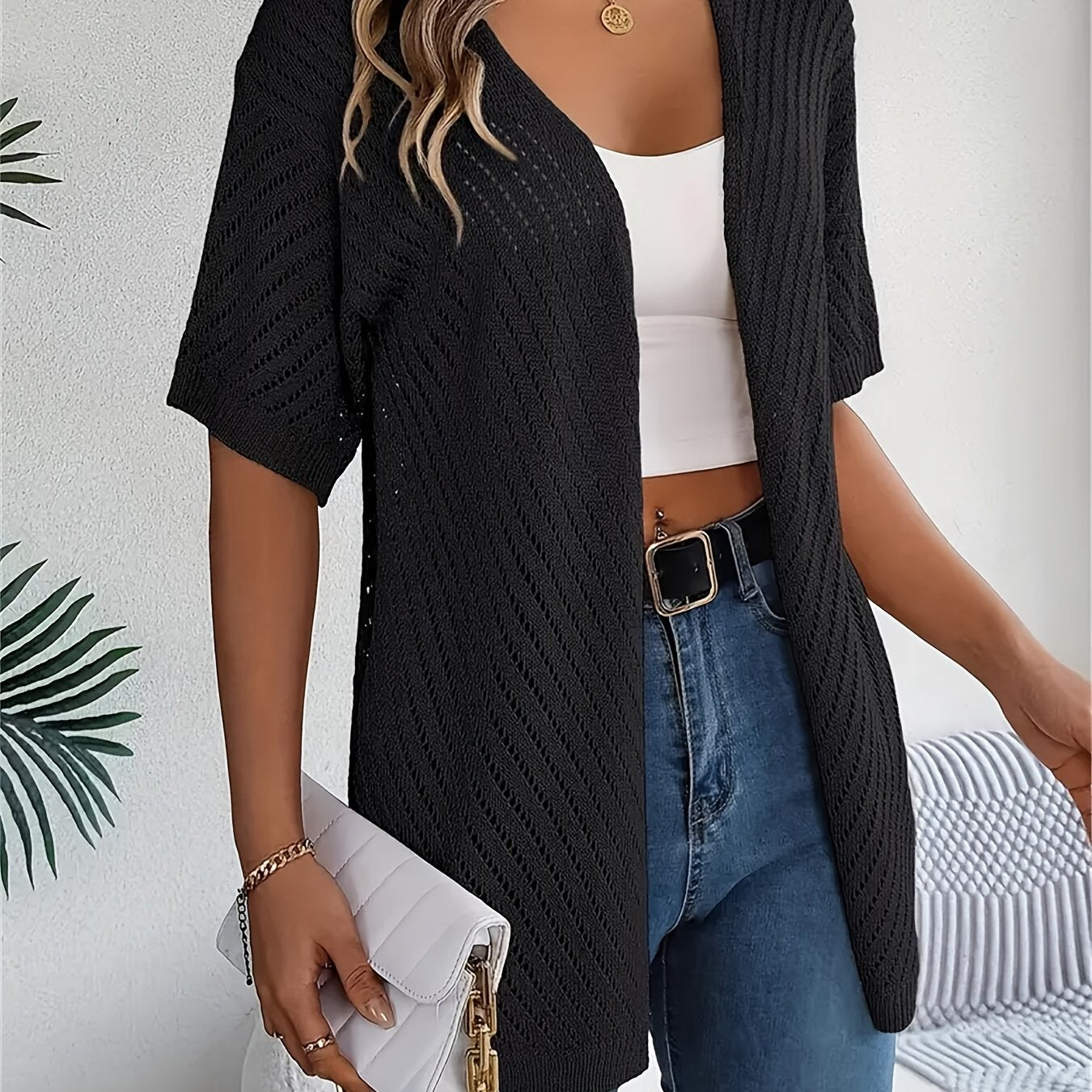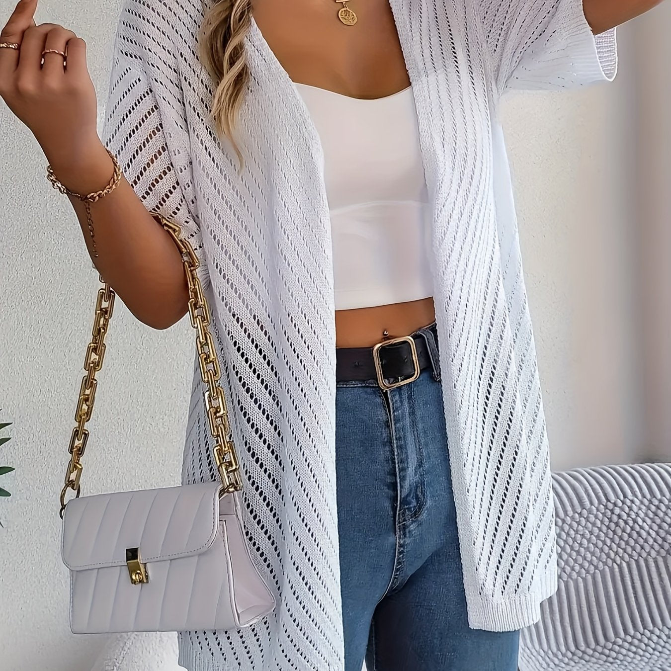 Plus o'lcham ayollar uchun krochet kardigan yengil nafas oladigan qisqa yengli bir rangli bahor yoz