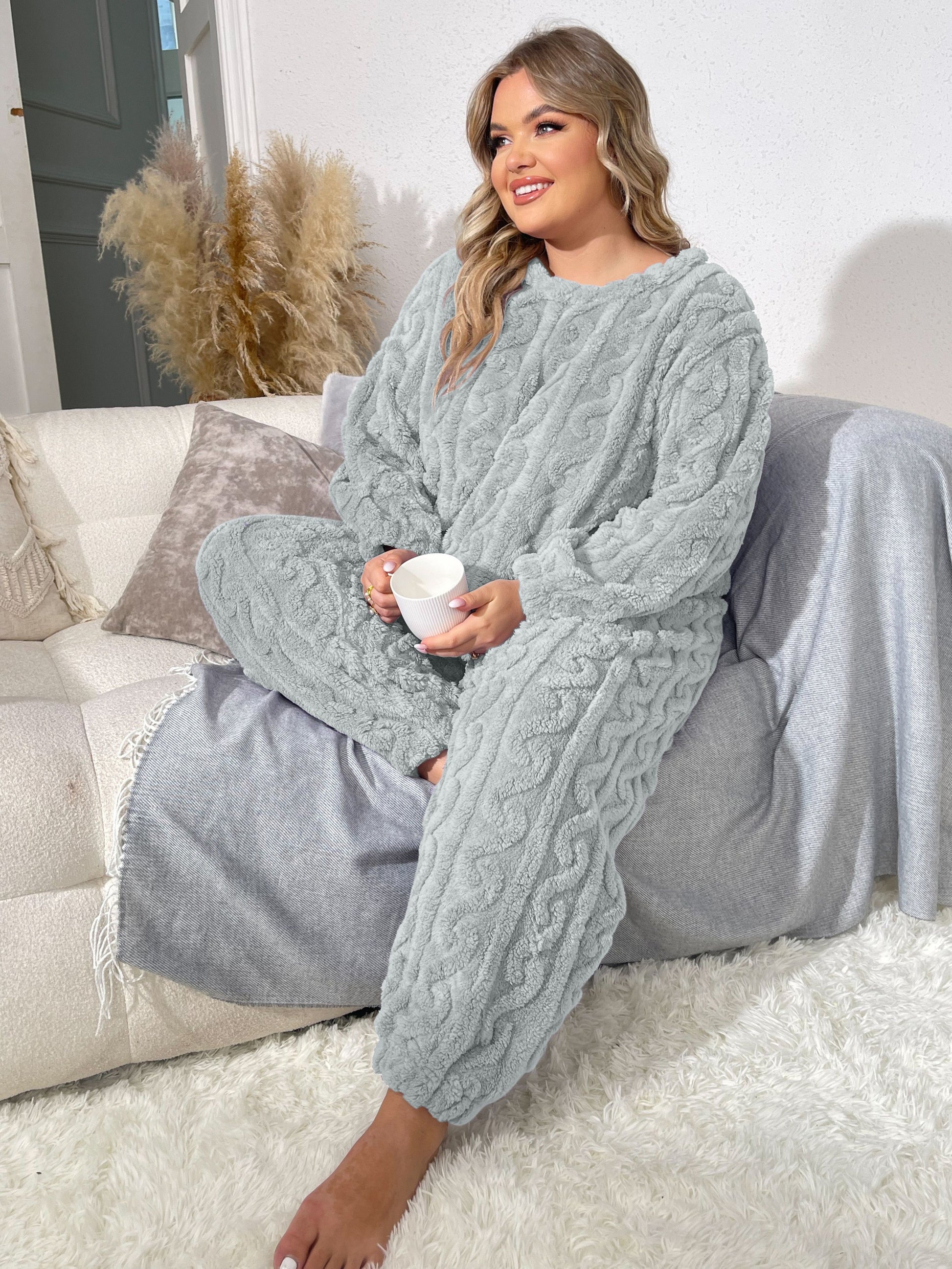 Plus Size Women's Flannel Pajama Set Long Sleeve Loungewear Two Piece