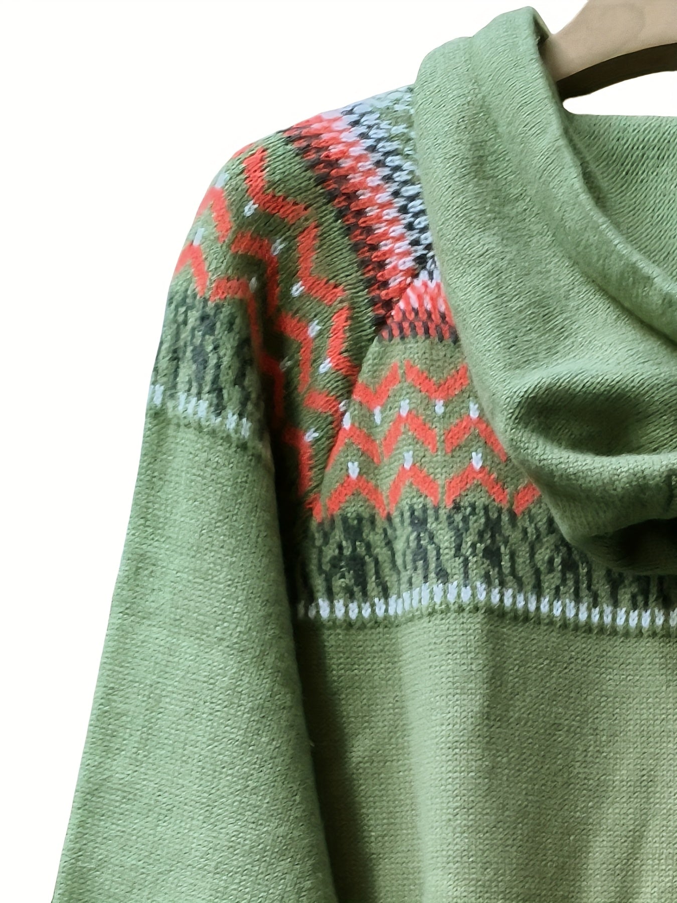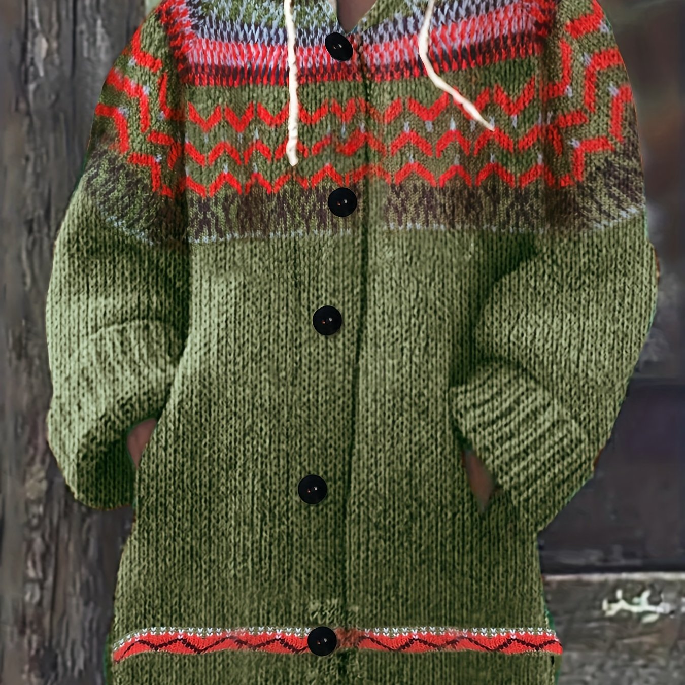 Plus o'lchamli ayollar uchun geometrik naqshli kapüşonli kardigan issiq qish uzun qolli ochiq oldi sviter