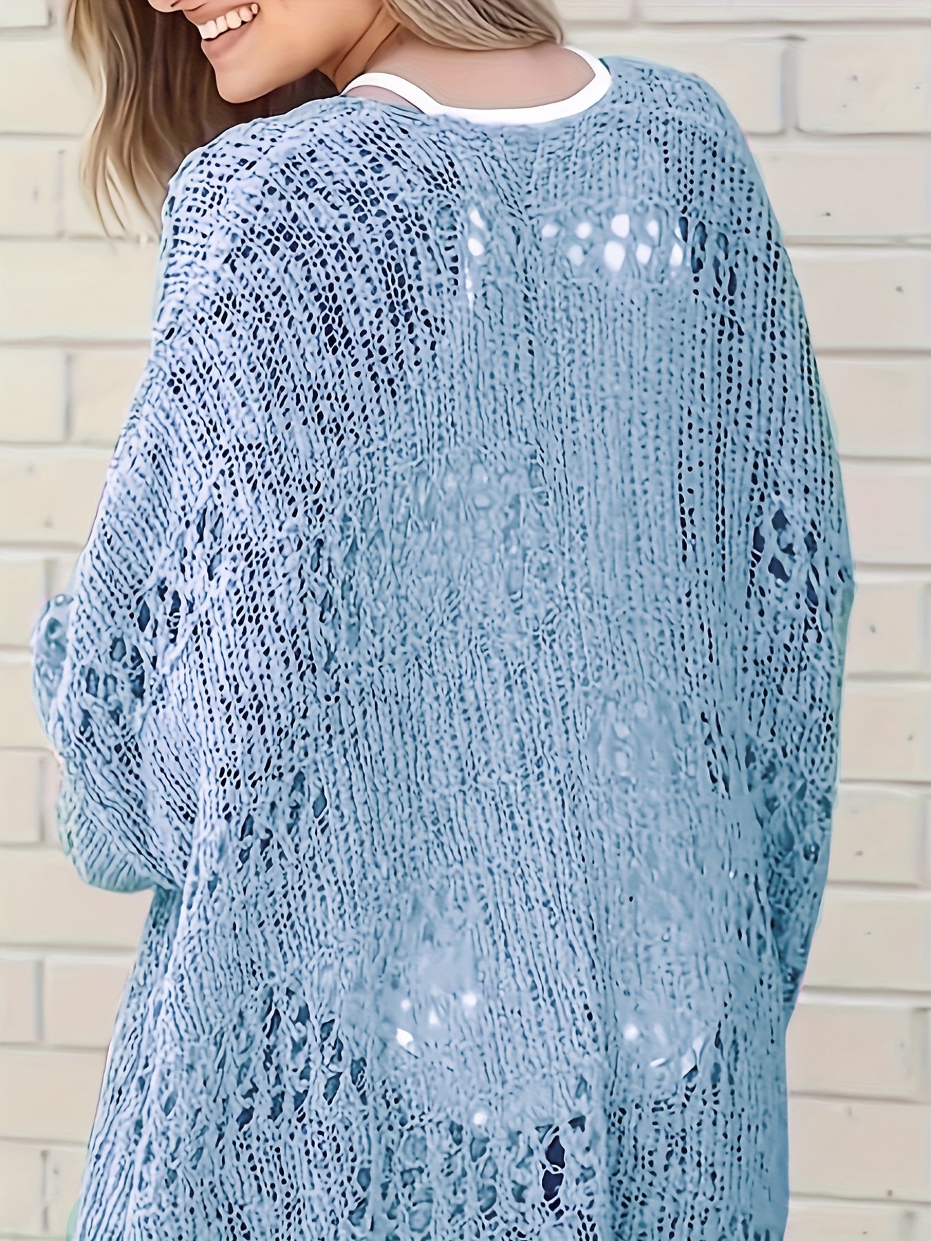 Plus o'lcham ayollar uchun korsetli tikanli kardigan ochiq old va uzun qo'lli sviter bahor kuz qatlamlash
