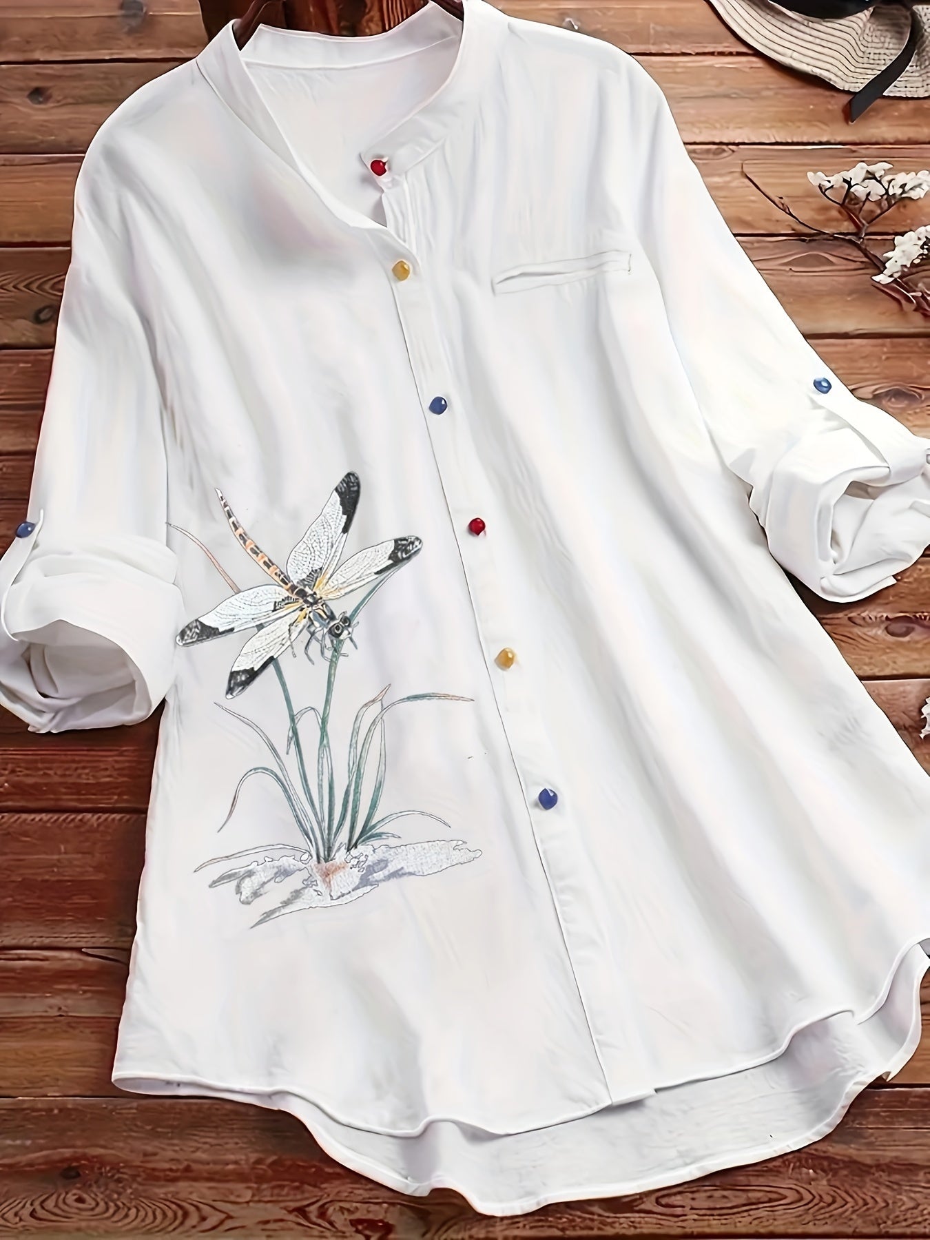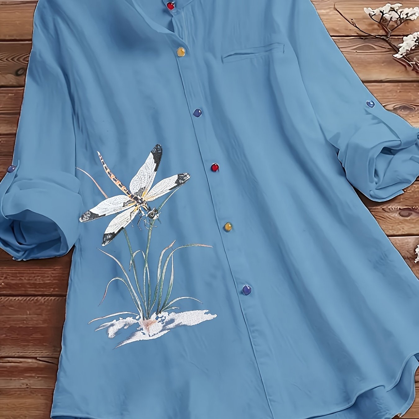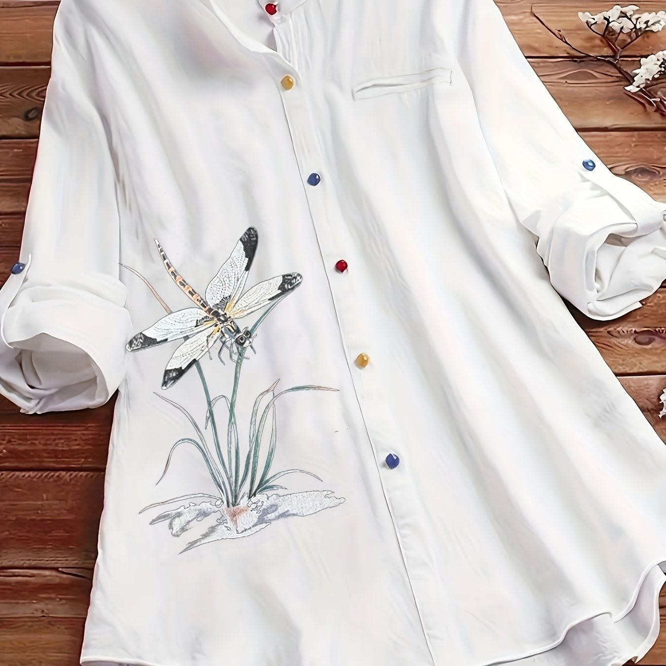 Plus o'lcham ayollar uchun uzun ko'ylak, dragonfly va gul naqshli ofis va kundalik kiyim
