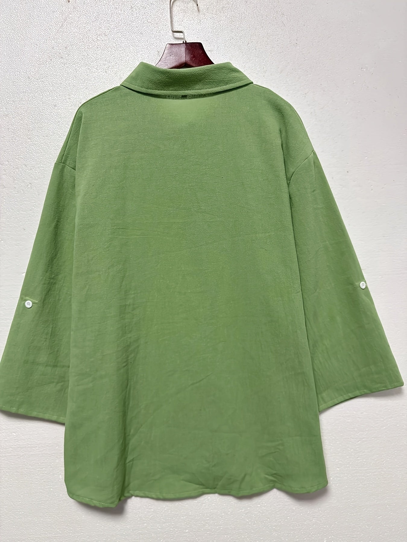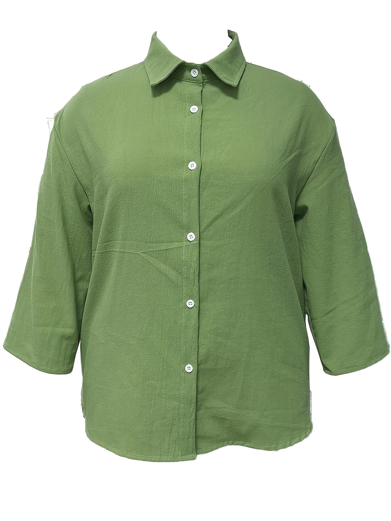 Plus o'lcham ayollar uchun uzun qolli tugma bilan yopiladigan bluz, bir xil rang, kundalik va rasmiy kiyim uchun top