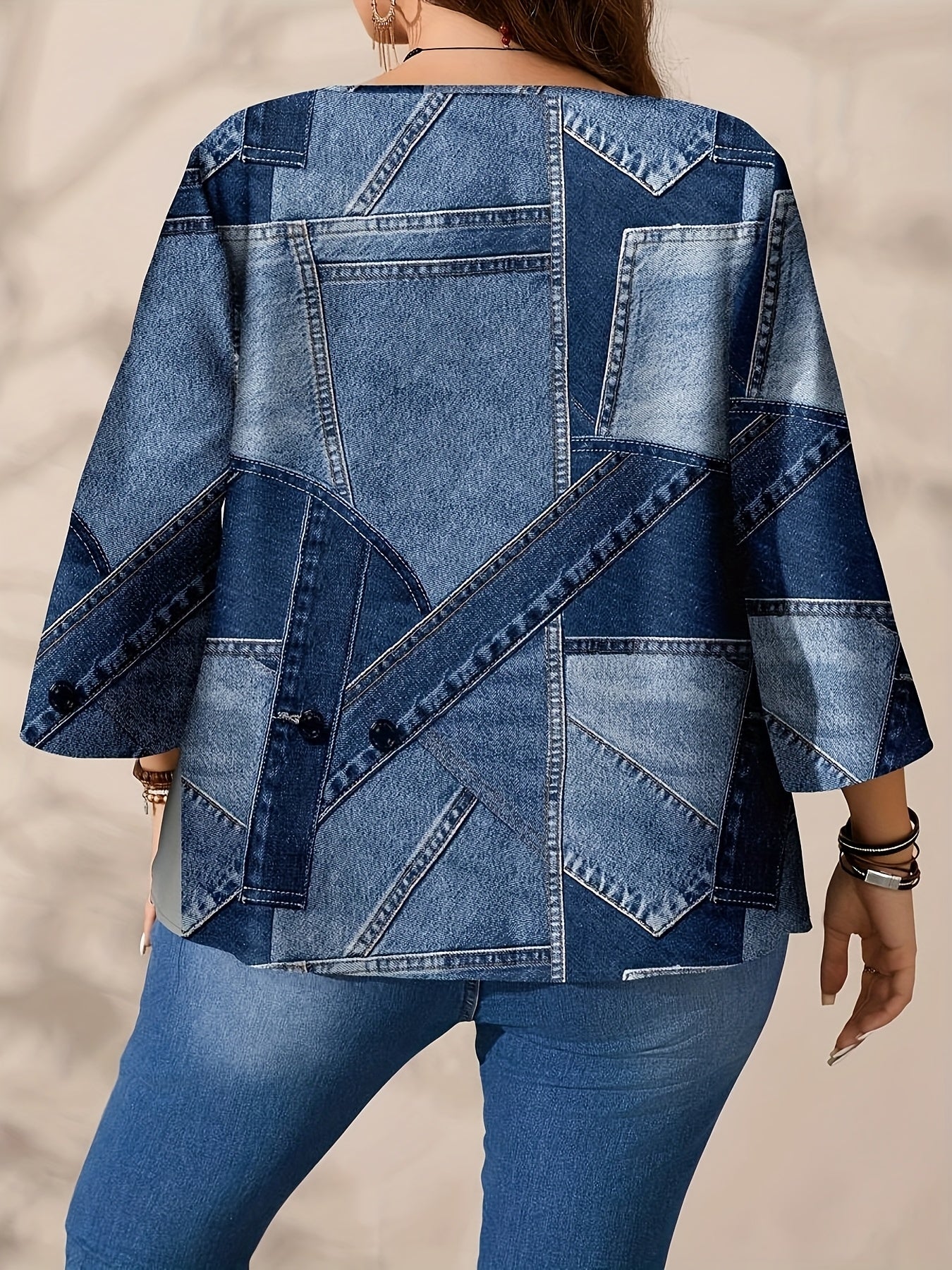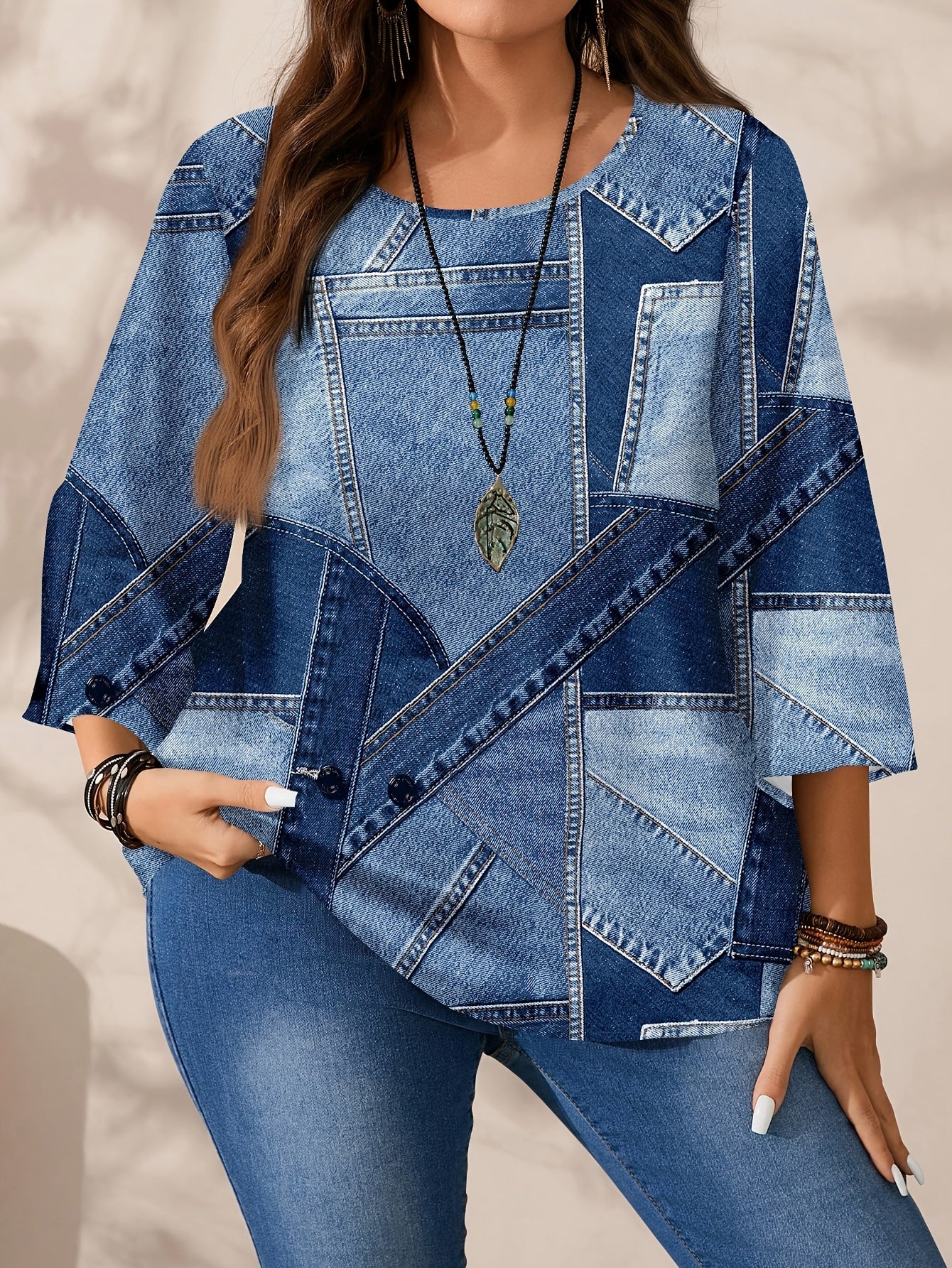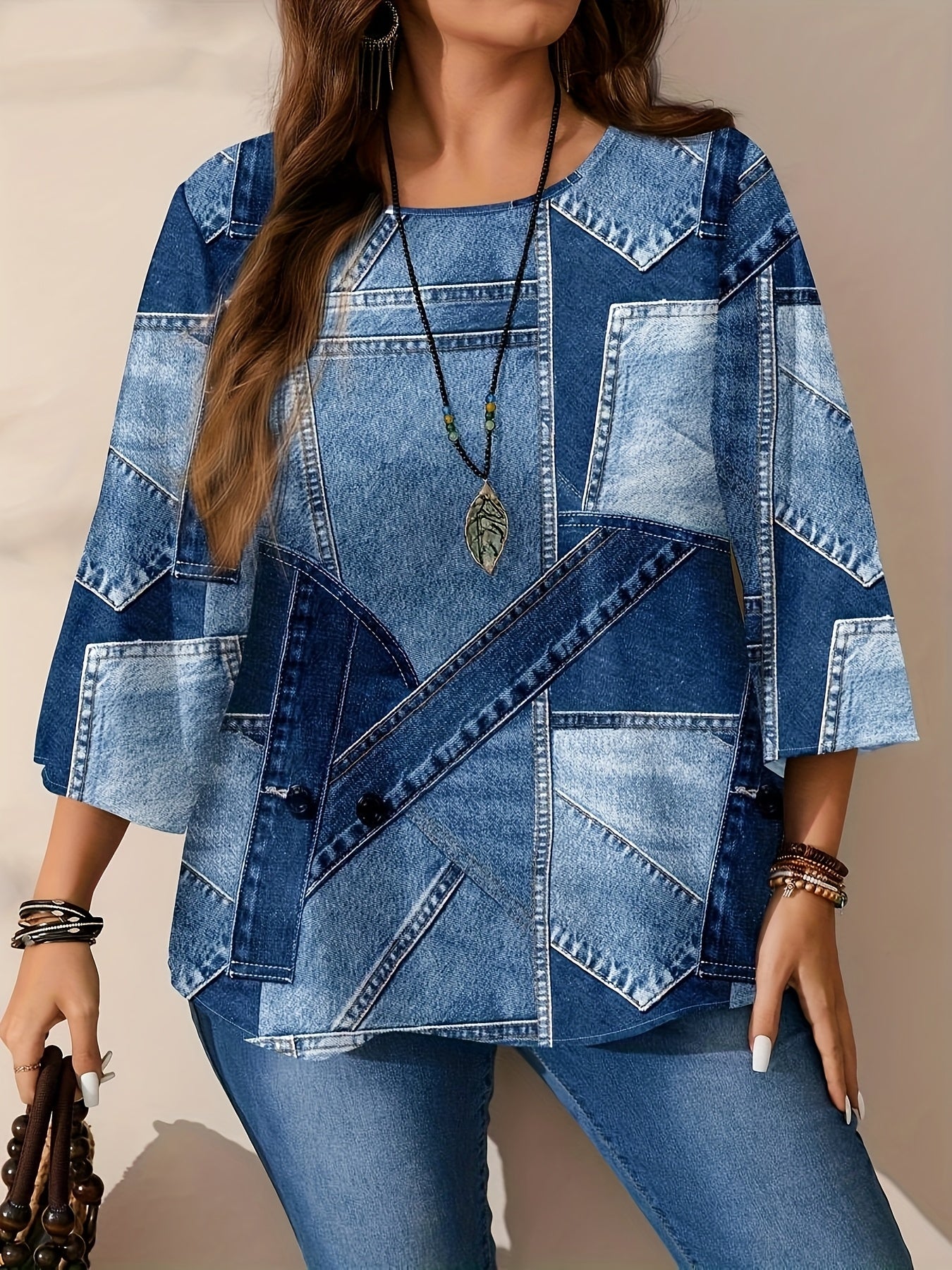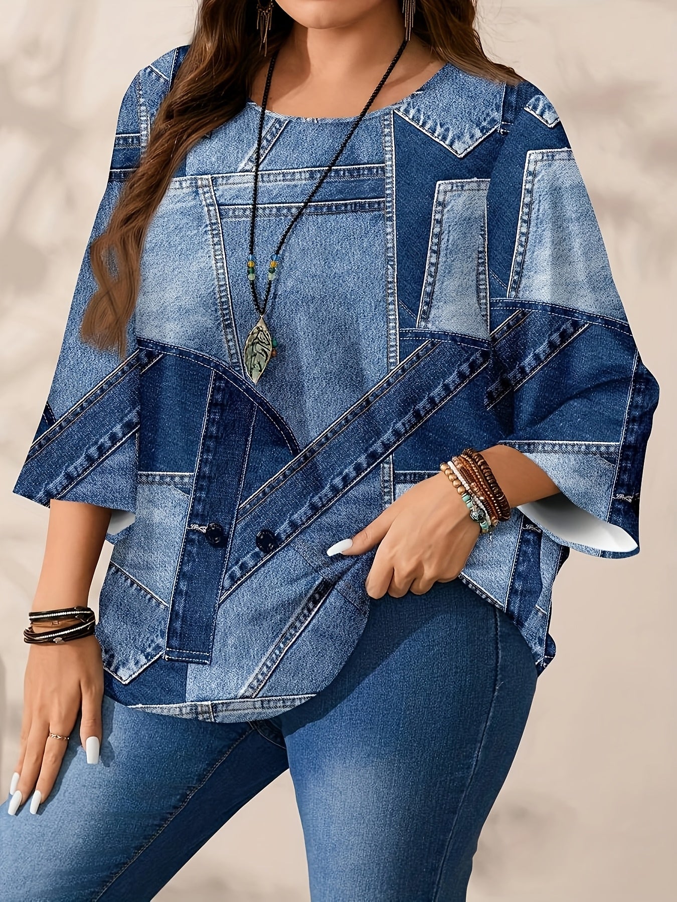 Katta o'lchamdagi ayollar uchun uzun ko'ylakli, dumaloq bo'yinli ko'ylak, bahor va kuz uchun