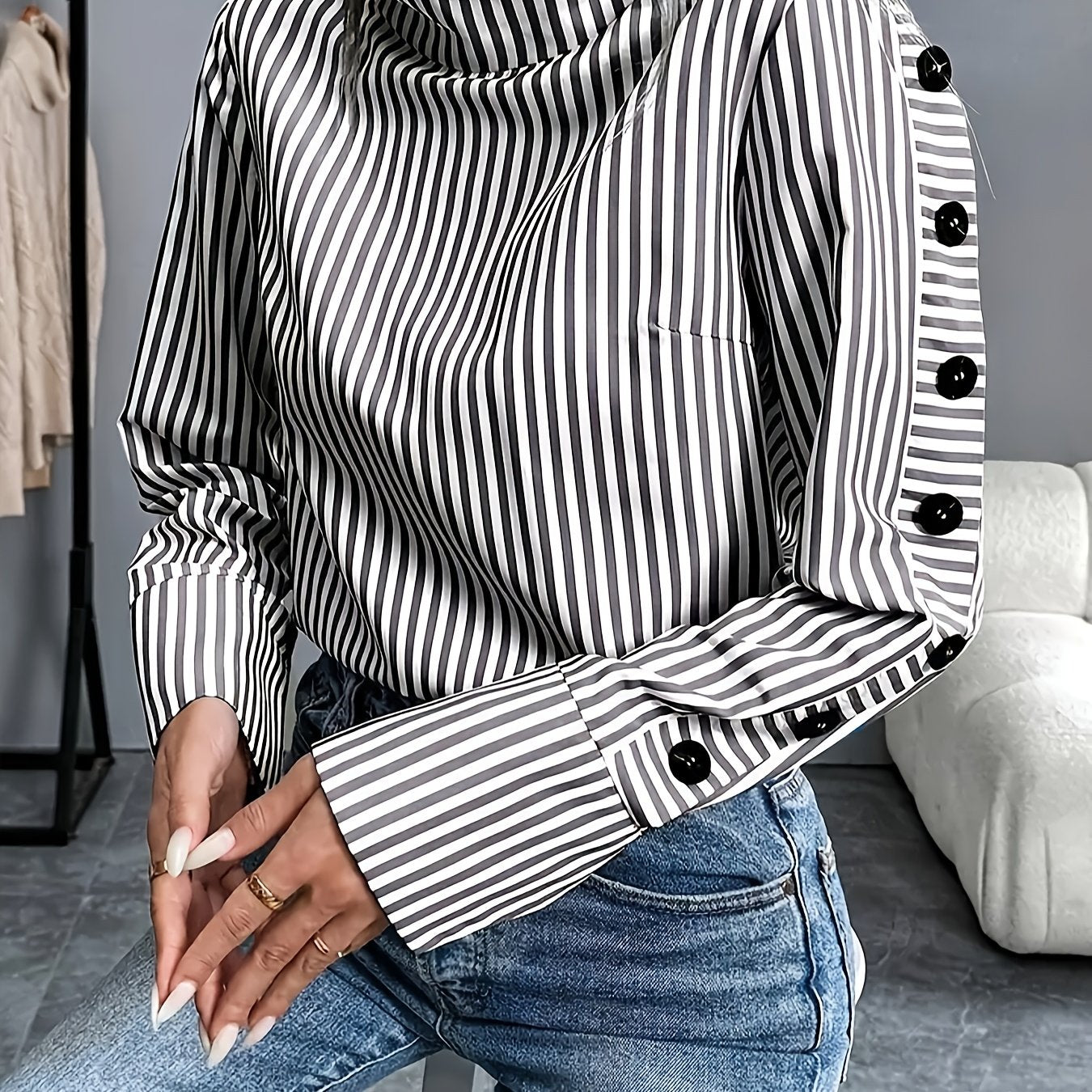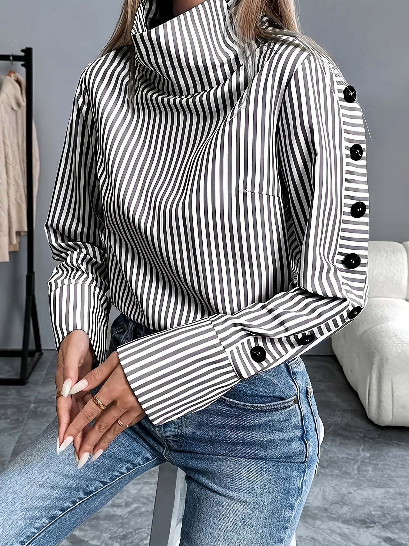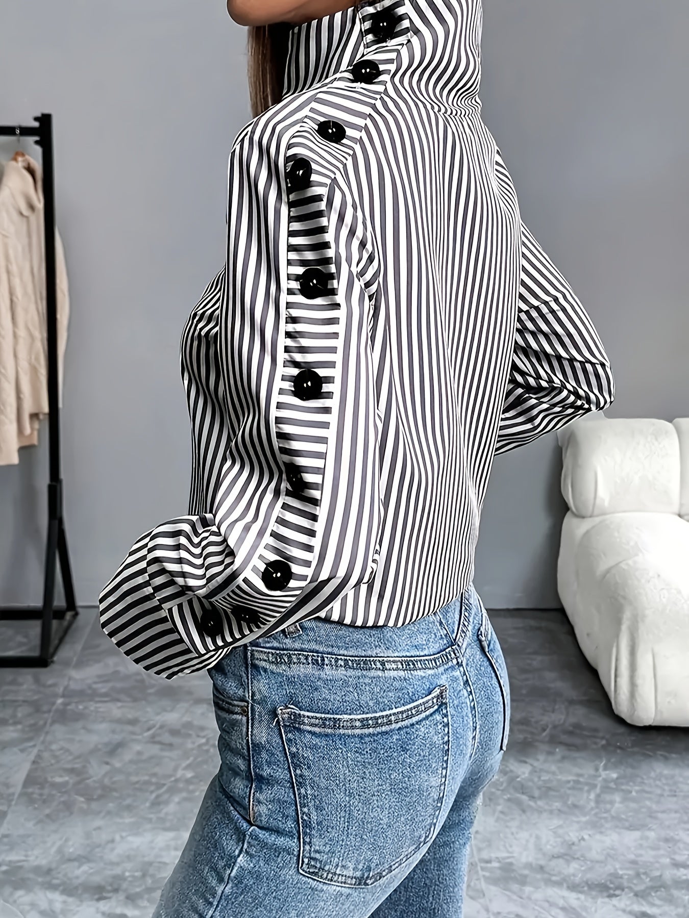 Plus o'lchamli ayollar uchun uzun qolli chiziqli kofta qora tugma oldi ko'rinmaydigan