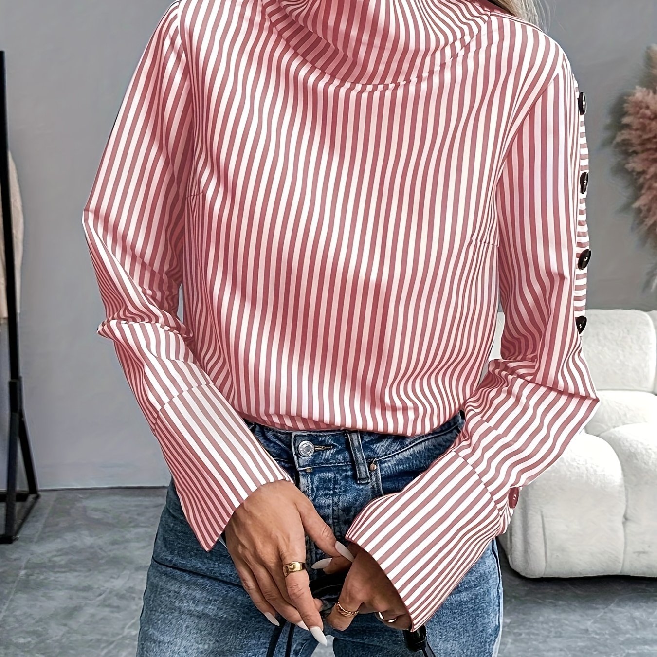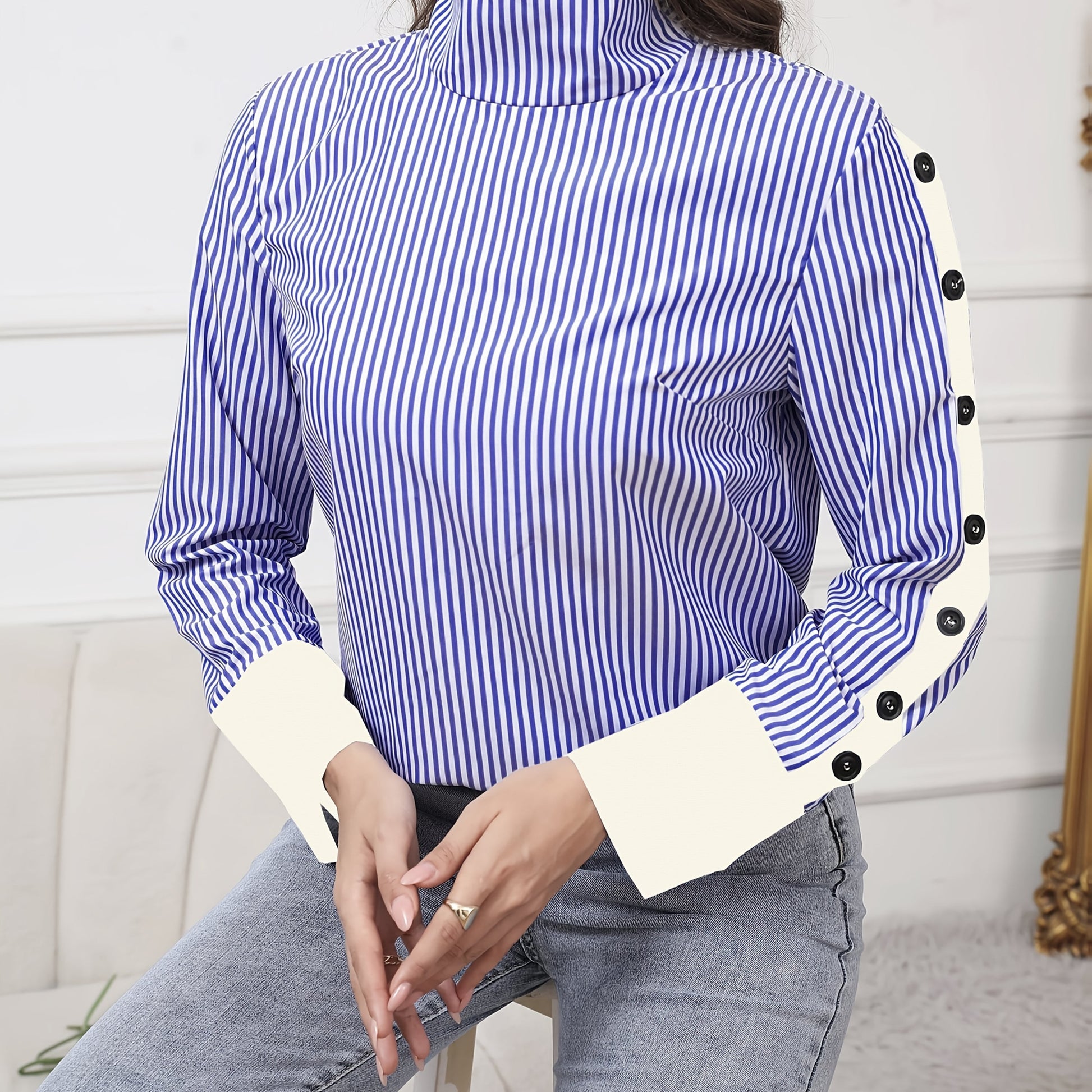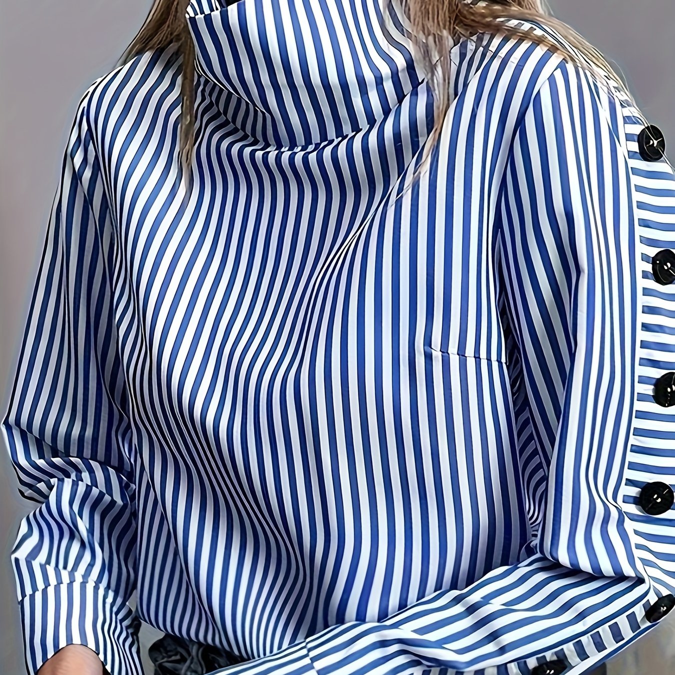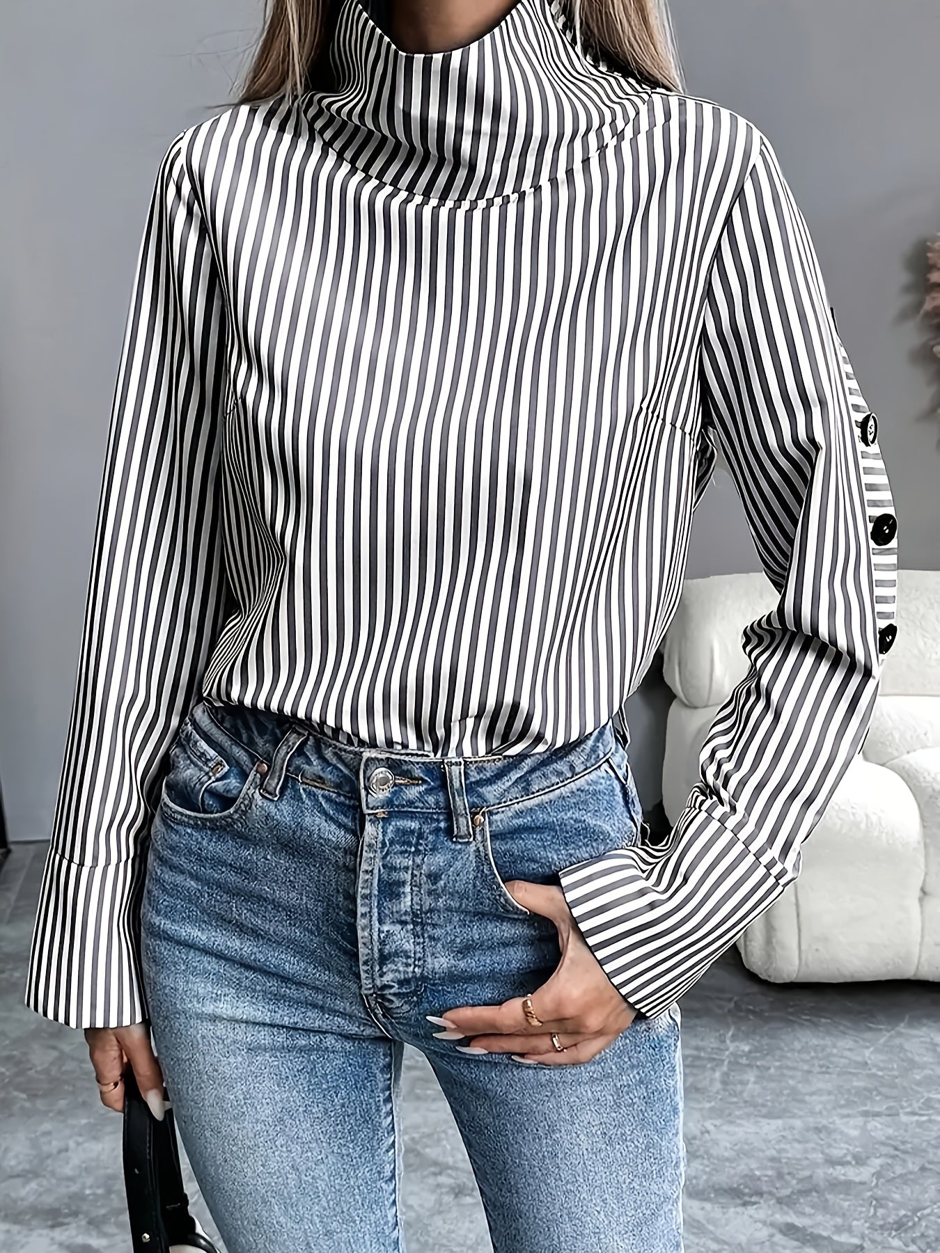 Plus o'lchamli ayollar uchun uzun qolli chiziqli kofta qora tugma oldi ko'rinmaydigan