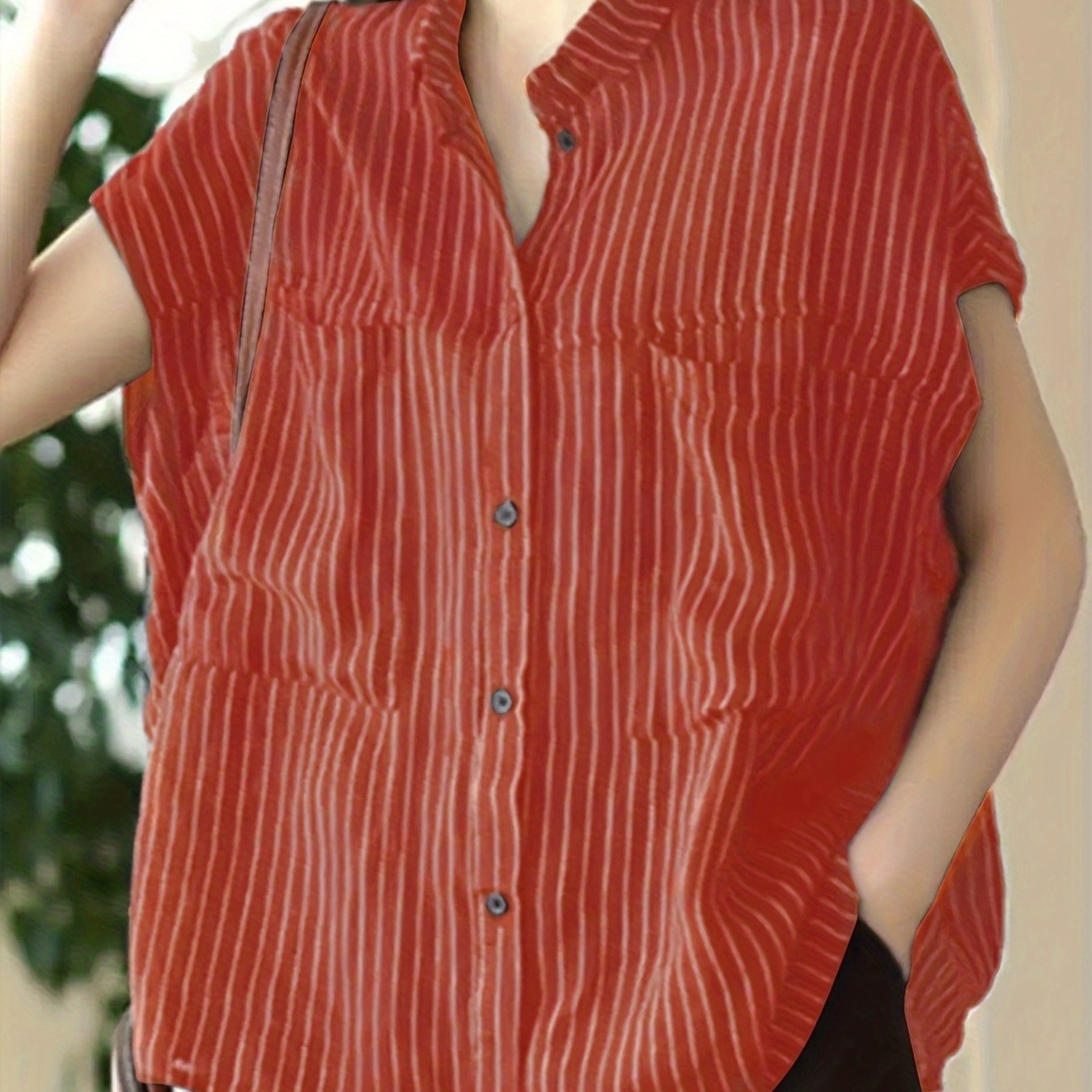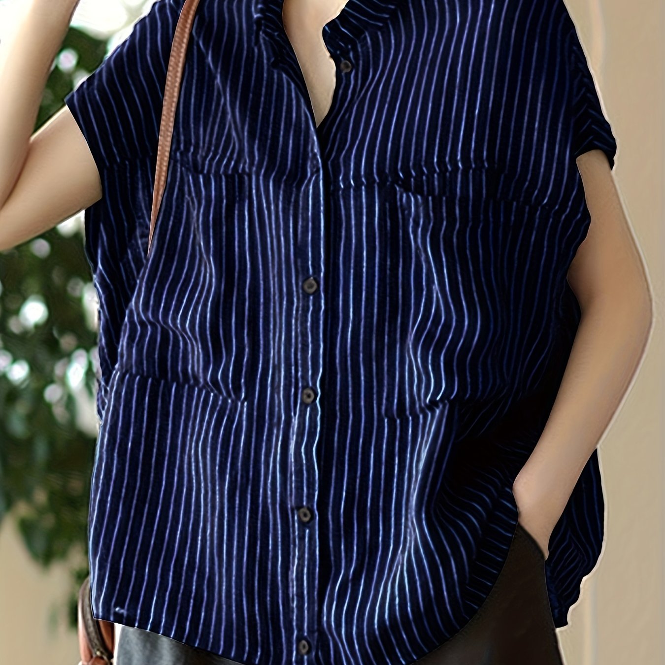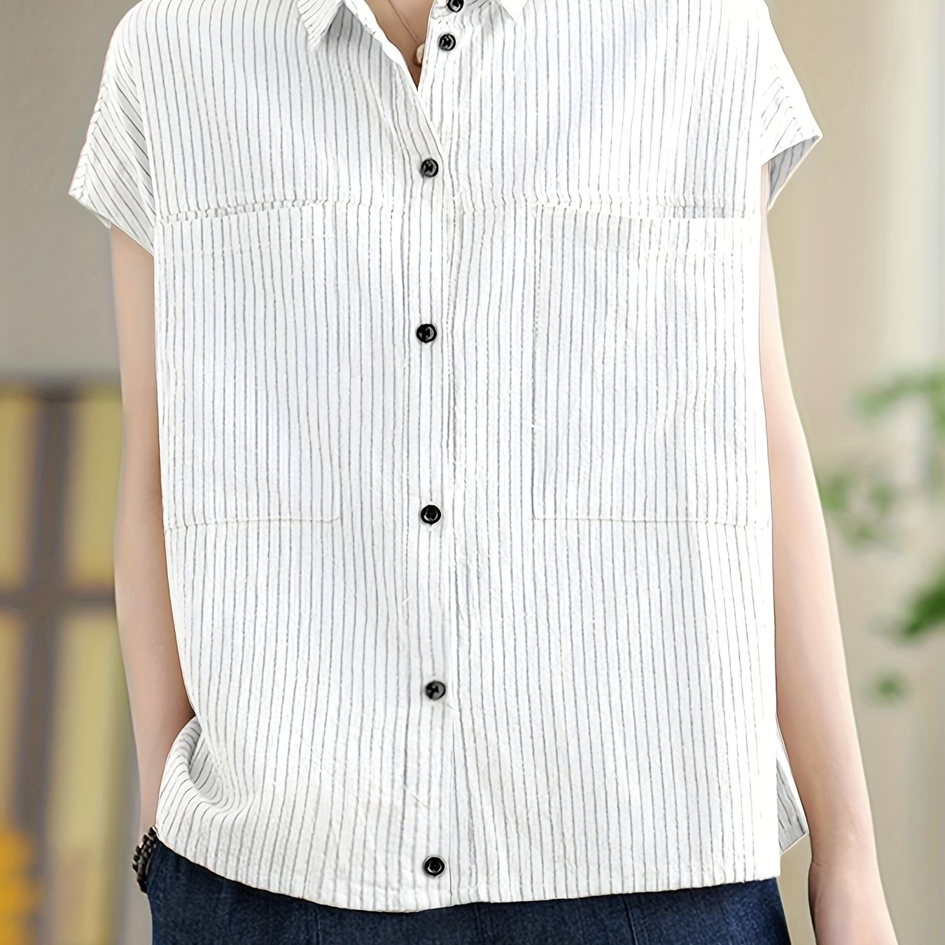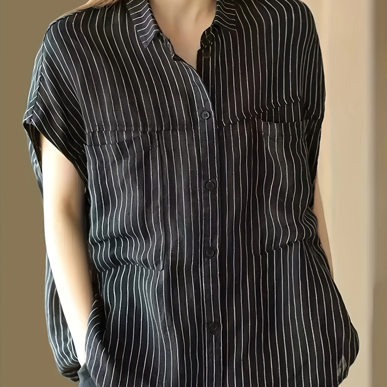 Plus o'lcham ayollar uchun erkin fit tugma bilan yopiladigan ko'ylak qora oq chiziqlar ofis kundalik