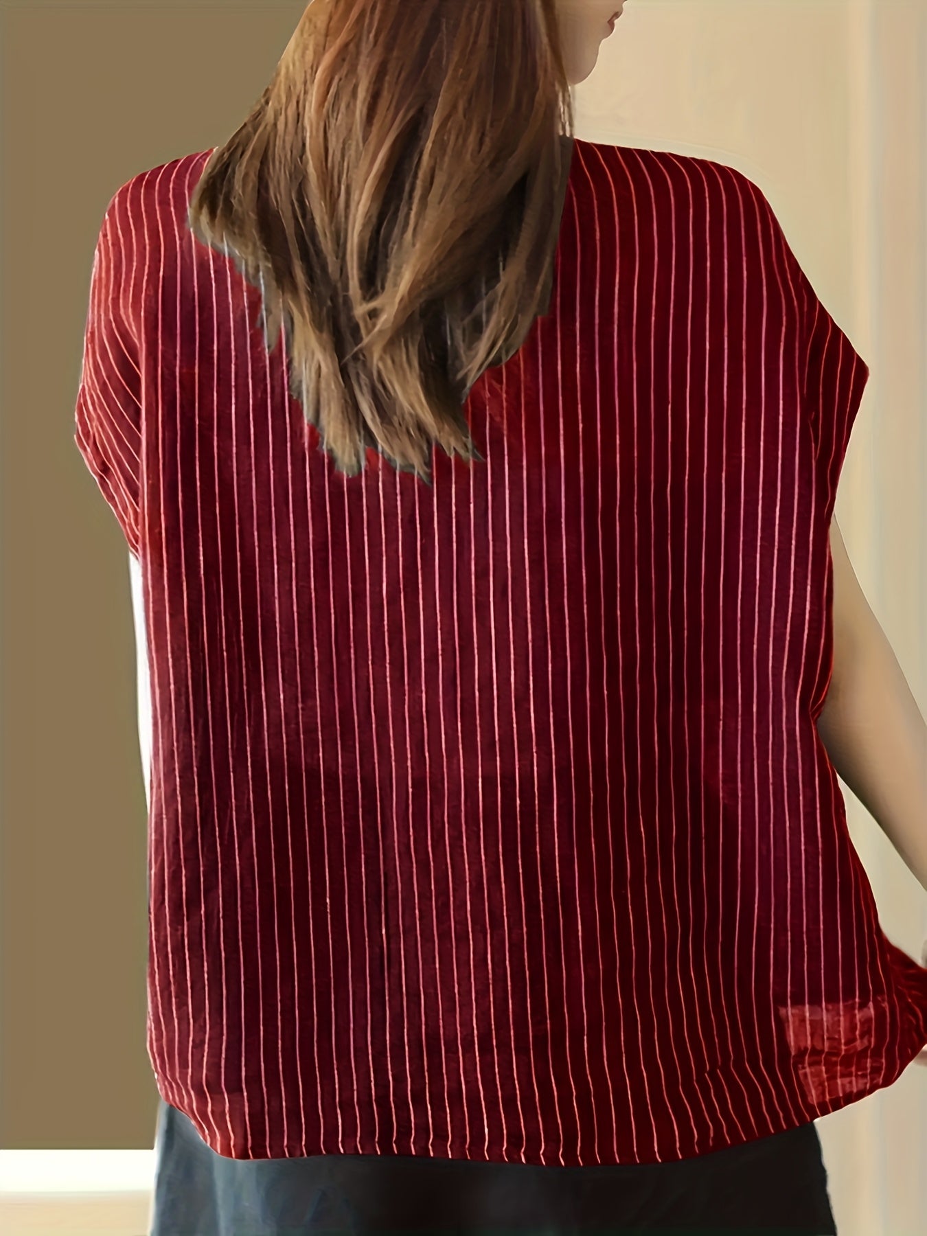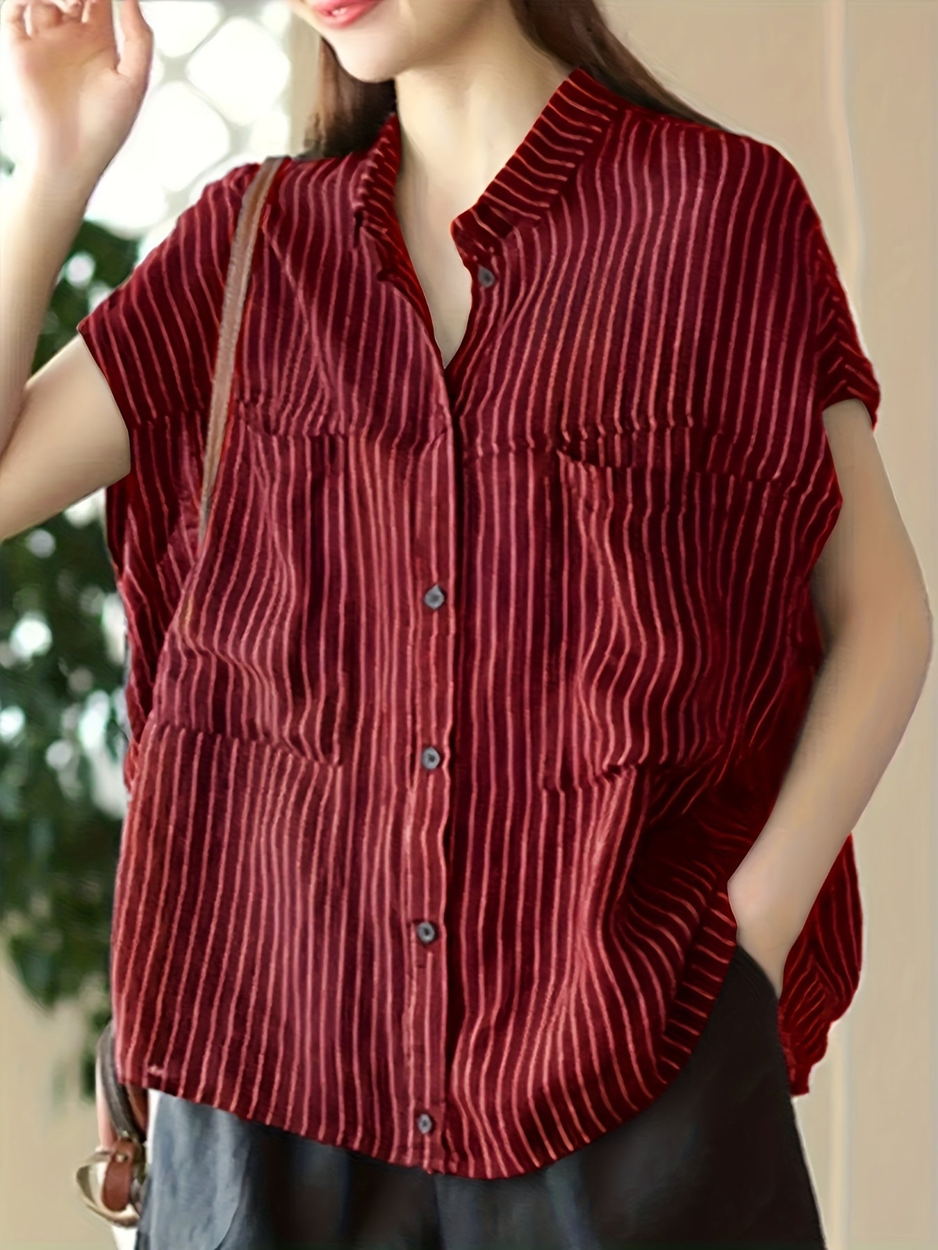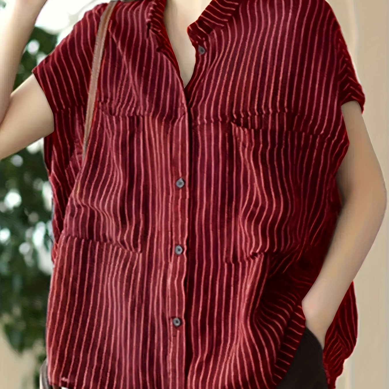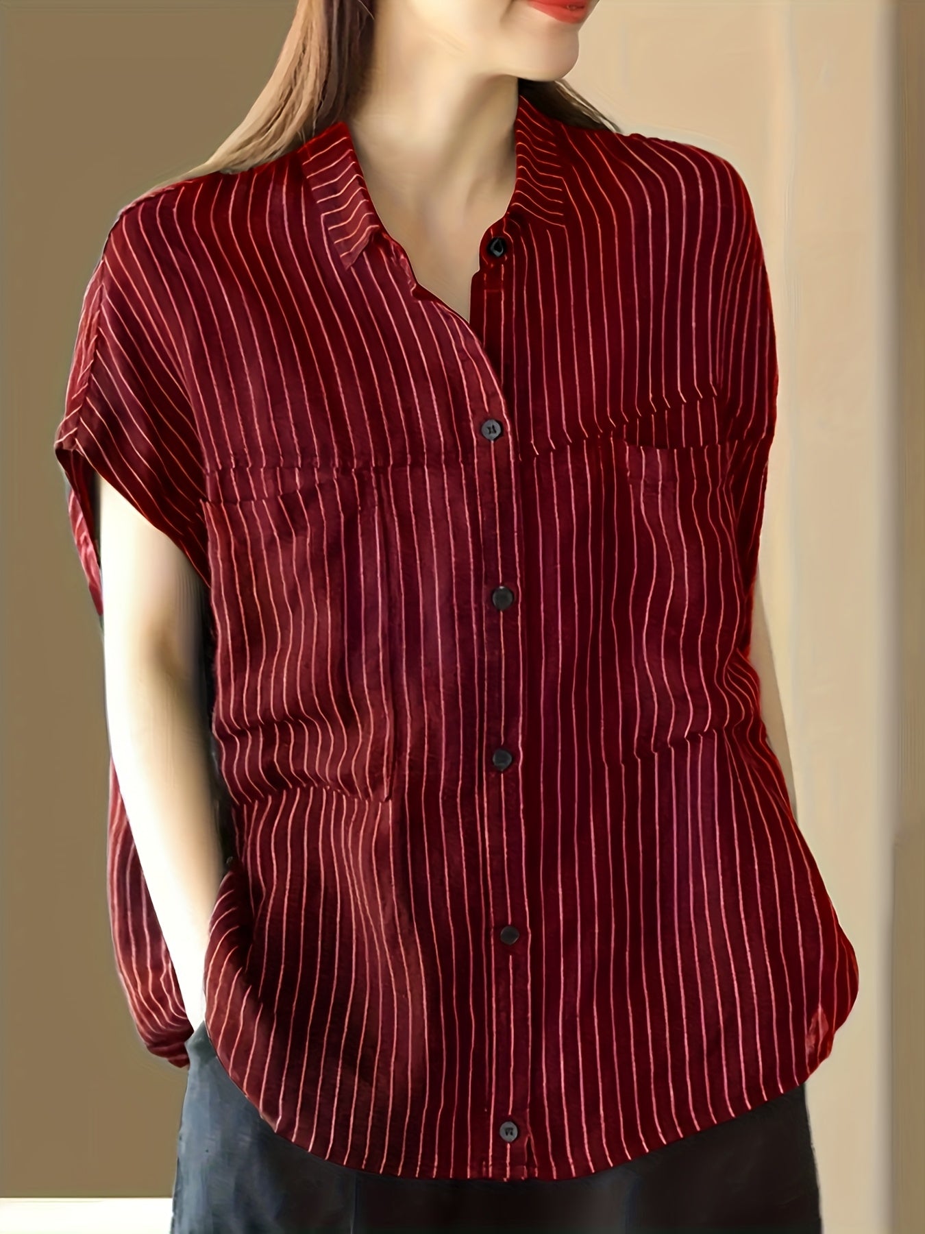 Plus o'lcham ayollar uchun erkin fit tugma bilan yopiladigan ko'ylak qora oq chiziqlar ofis kundalik