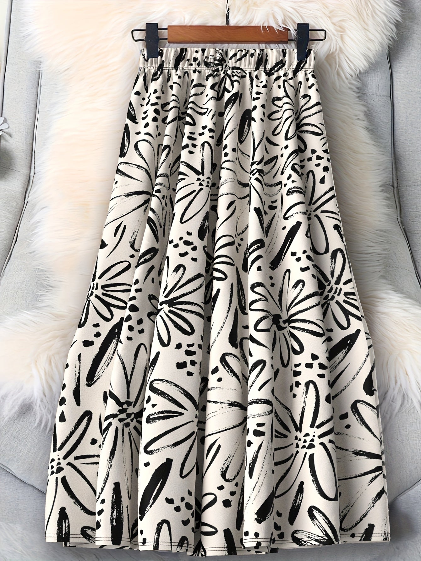 Plus Size Women's Mid-Length Skirt Elastic Waist Floral Print Summer Fashion