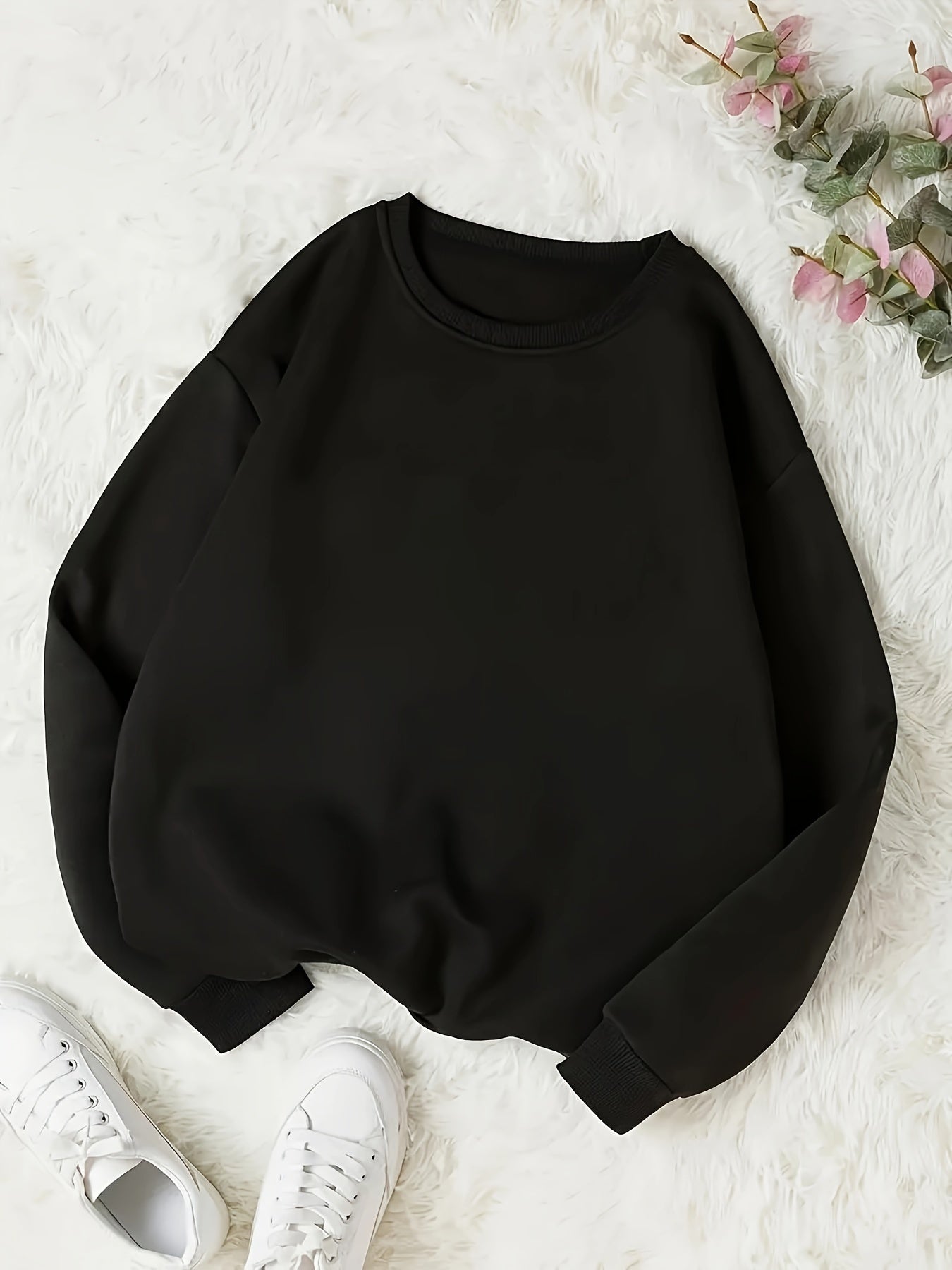 Plus o'lchamli ayollar uchun bir rangli krujka bo'yinli pulover svitshotlar, kuz va bahor uchun
