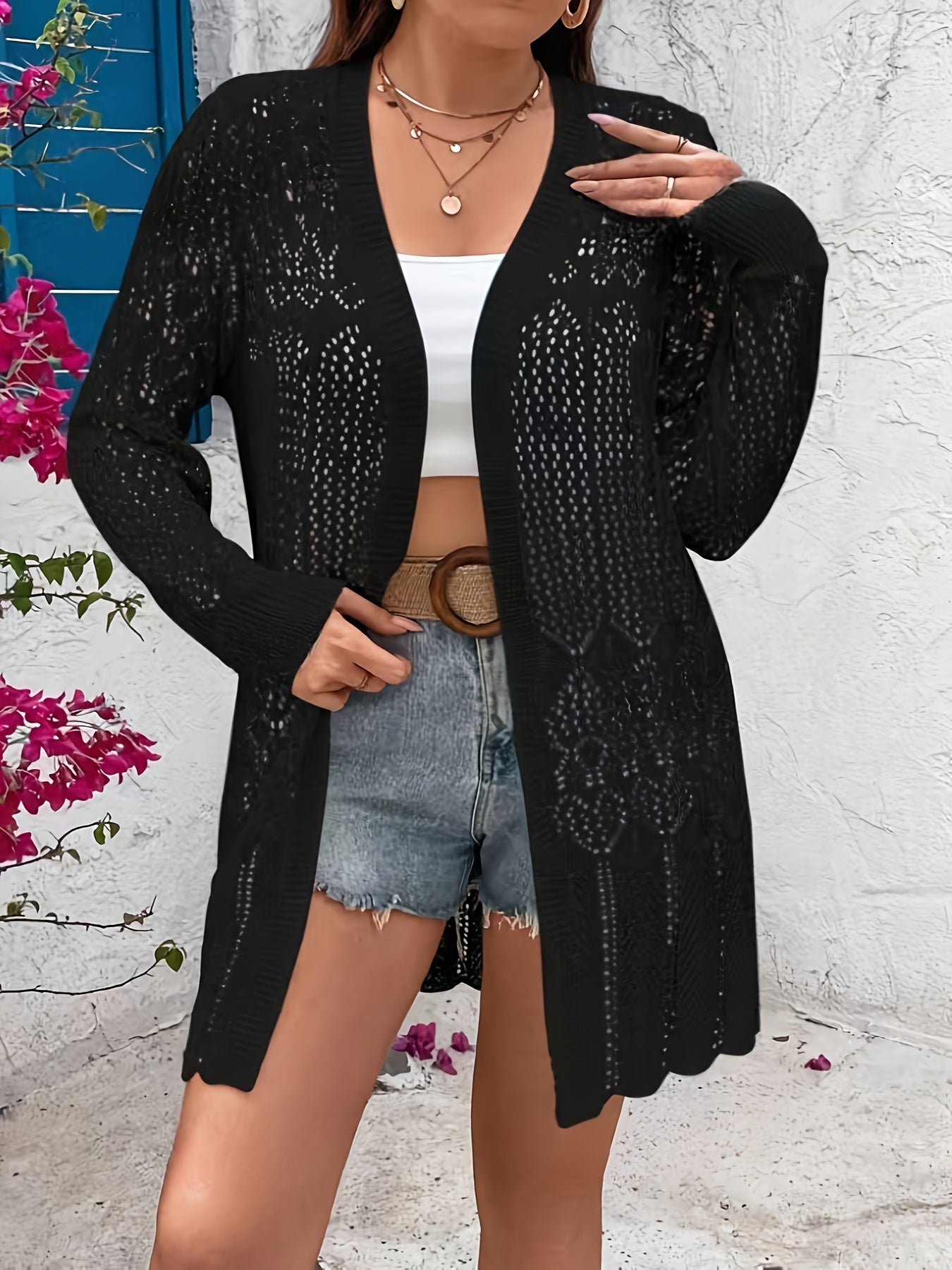 Plus o'lcham ayollar uchun to'liq rangli uzun qo'lqopli kardigan sviter, bahor va kuz uchun