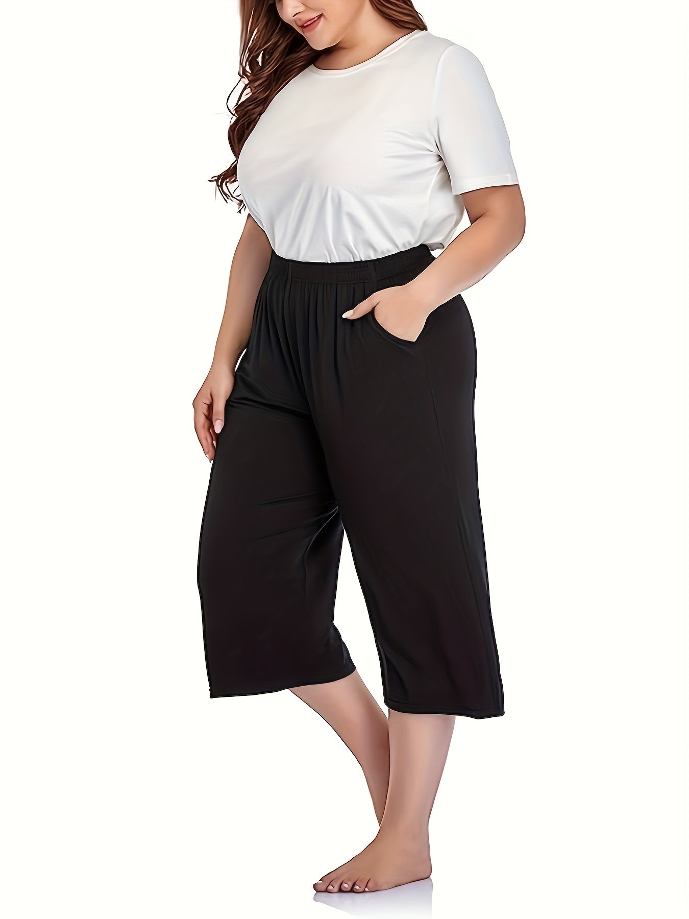 Plus o'lchamdagi ayollar uchun kengaytiriladigan polyester Capri shortlari, bir rangli, cho'ntaklar bilan